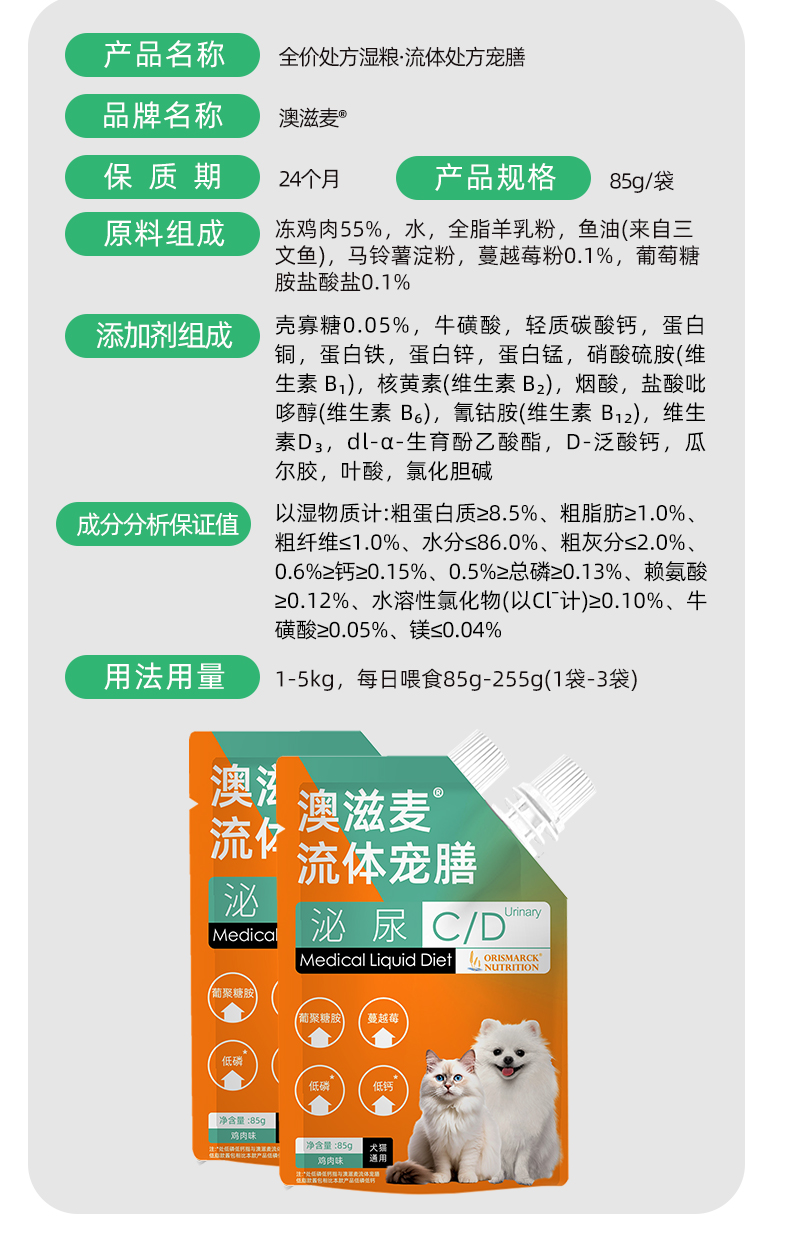 澳滋麦-流体宠膳软包-犬猫泌尿