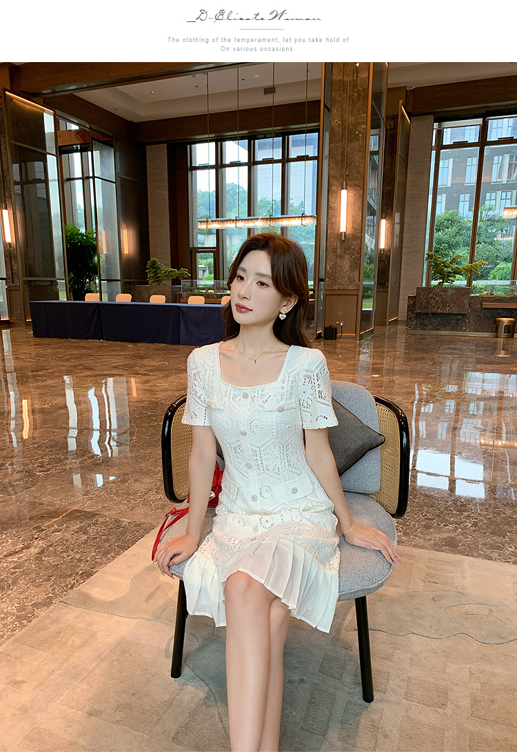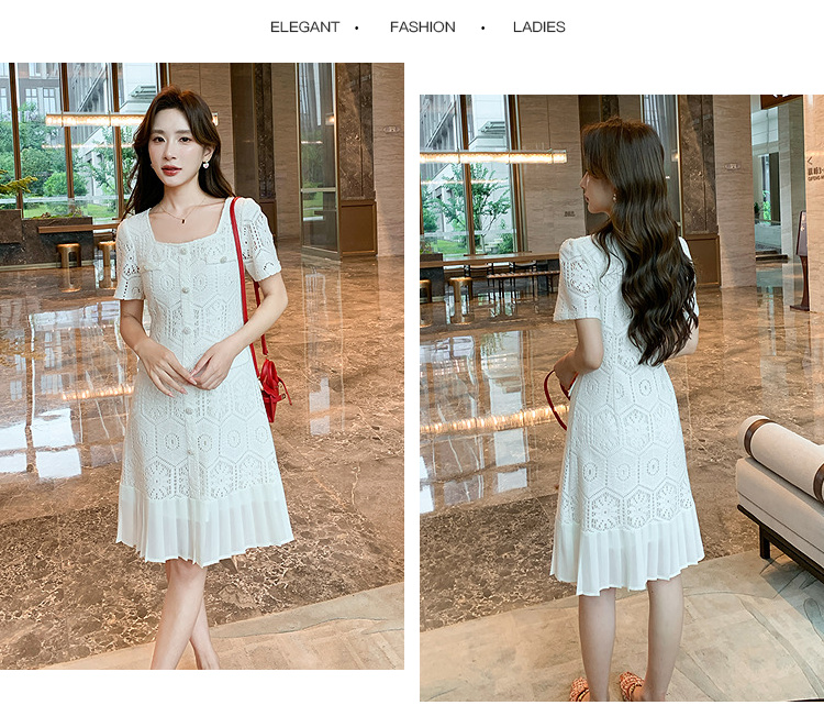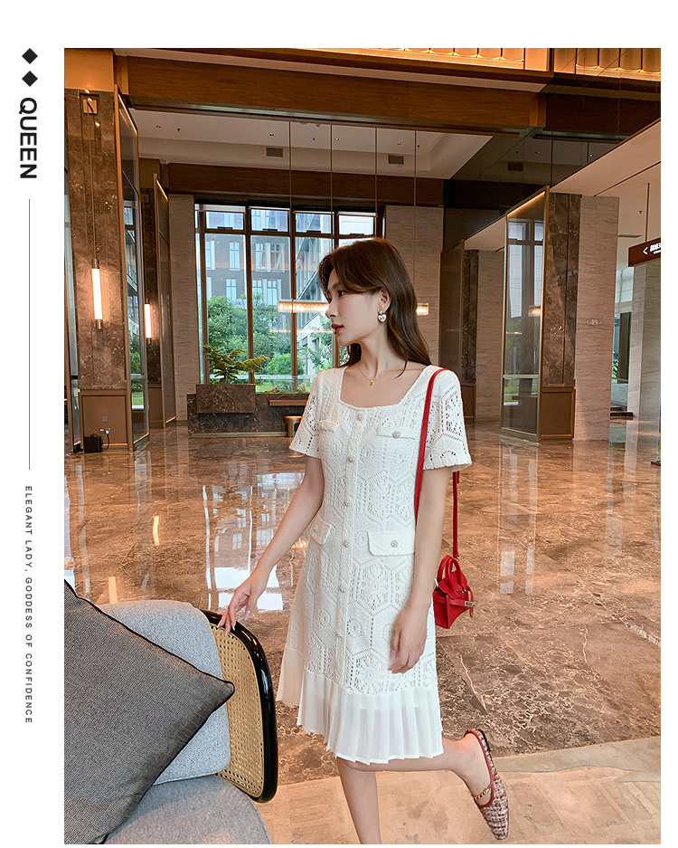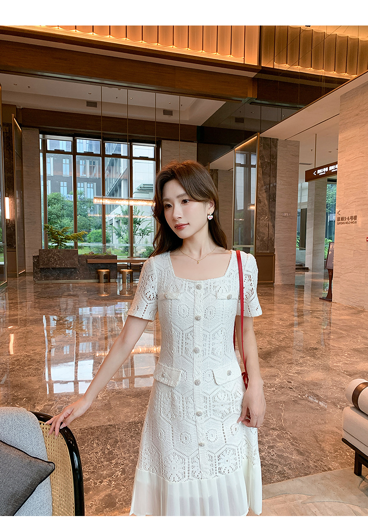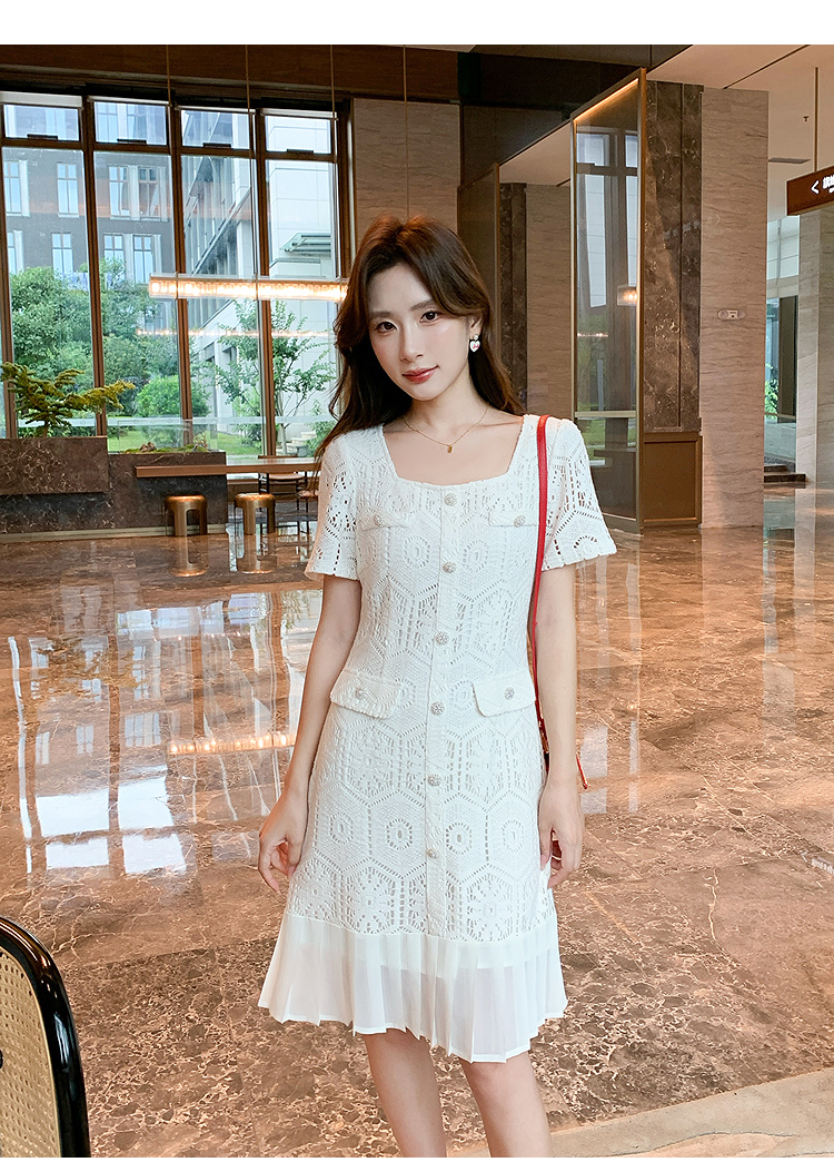 奢姿大码女装2025夏季气质方领镂空连衣裙胖妹妹小香风百褶仔裙子9952869755