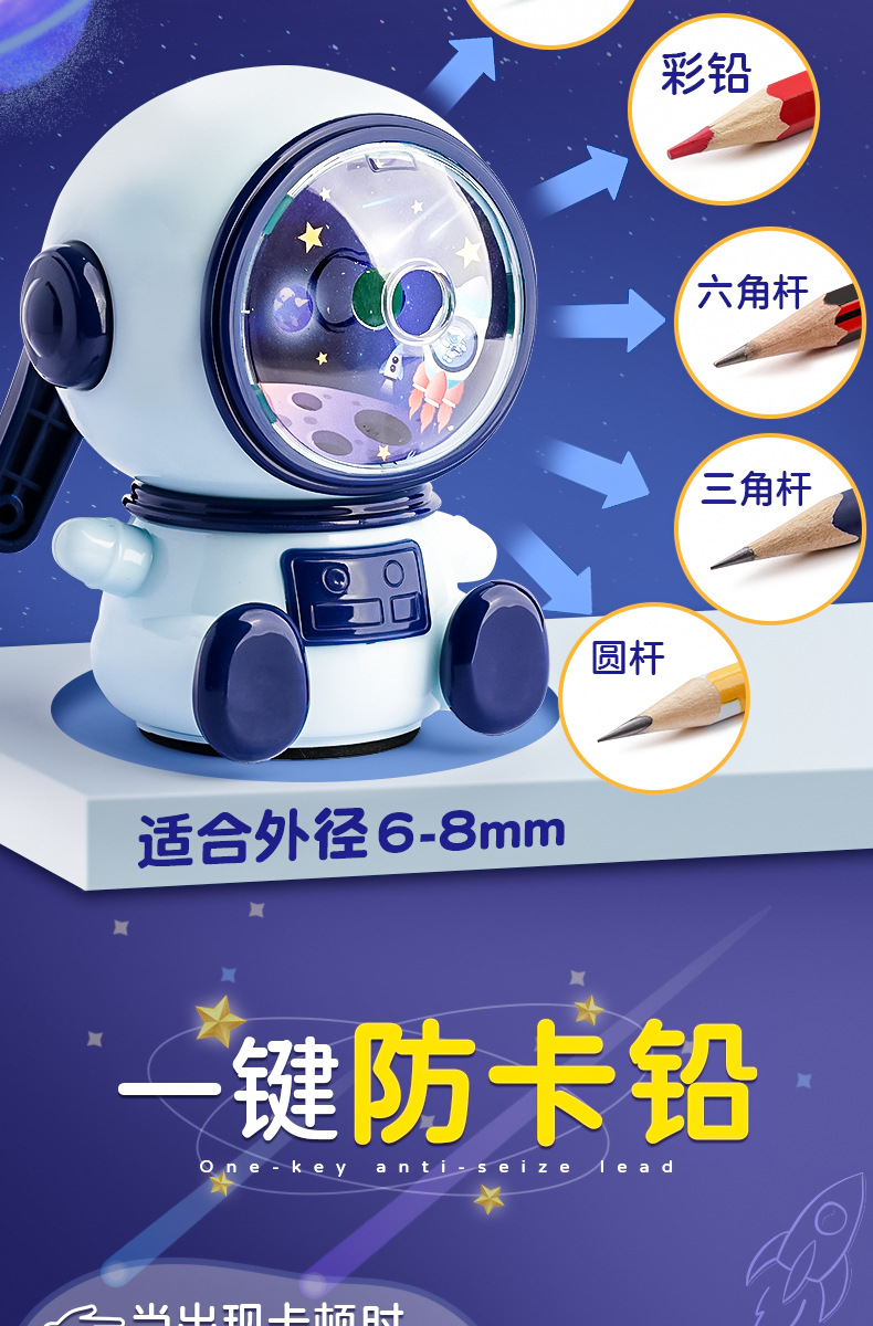 开学季宇航员削笔机自动进铅卷笔刀男孩幼儿园卡通手摇可爱小学生用品