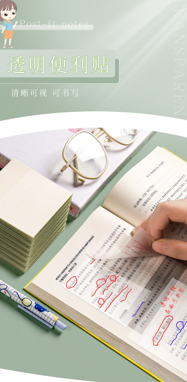 开学季福利!【透明便利贴】防水可书写便签贴纸小条ins学生用n次贴便利签标记便利贴便签本小本子标签贴可撕便签纸可爱粘性强索引贴记事贴纸