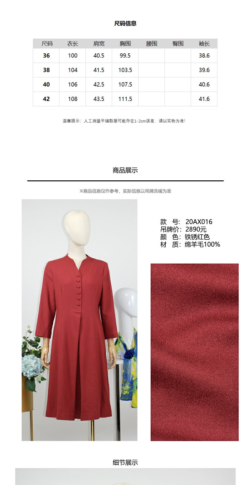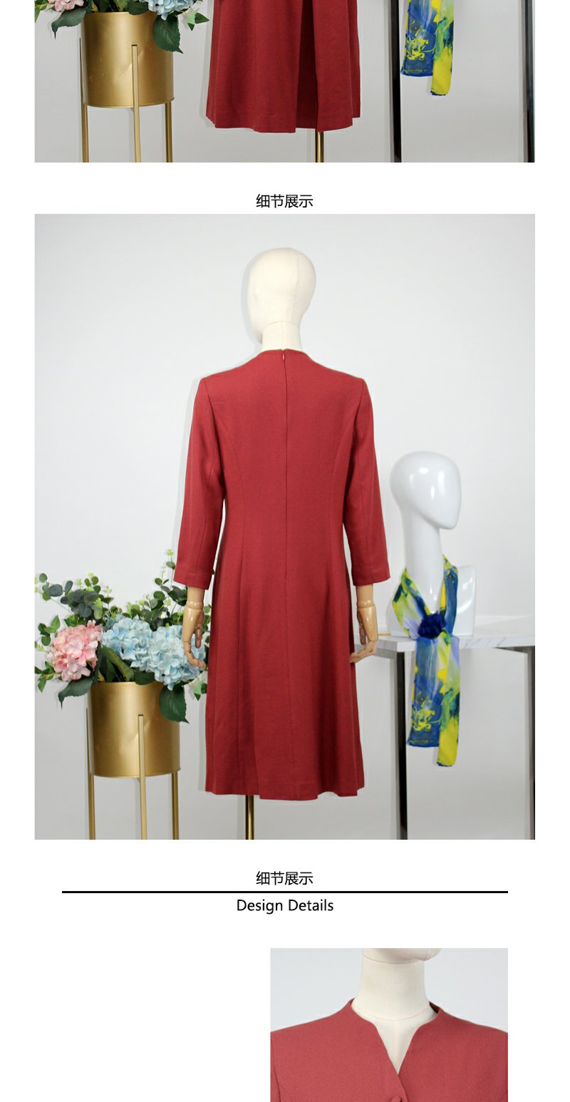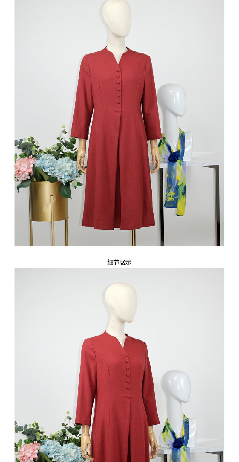 FOCALS福柯斯秋季精细羊毛七分袖修身A摆纯色连衣裙F20AX016R8