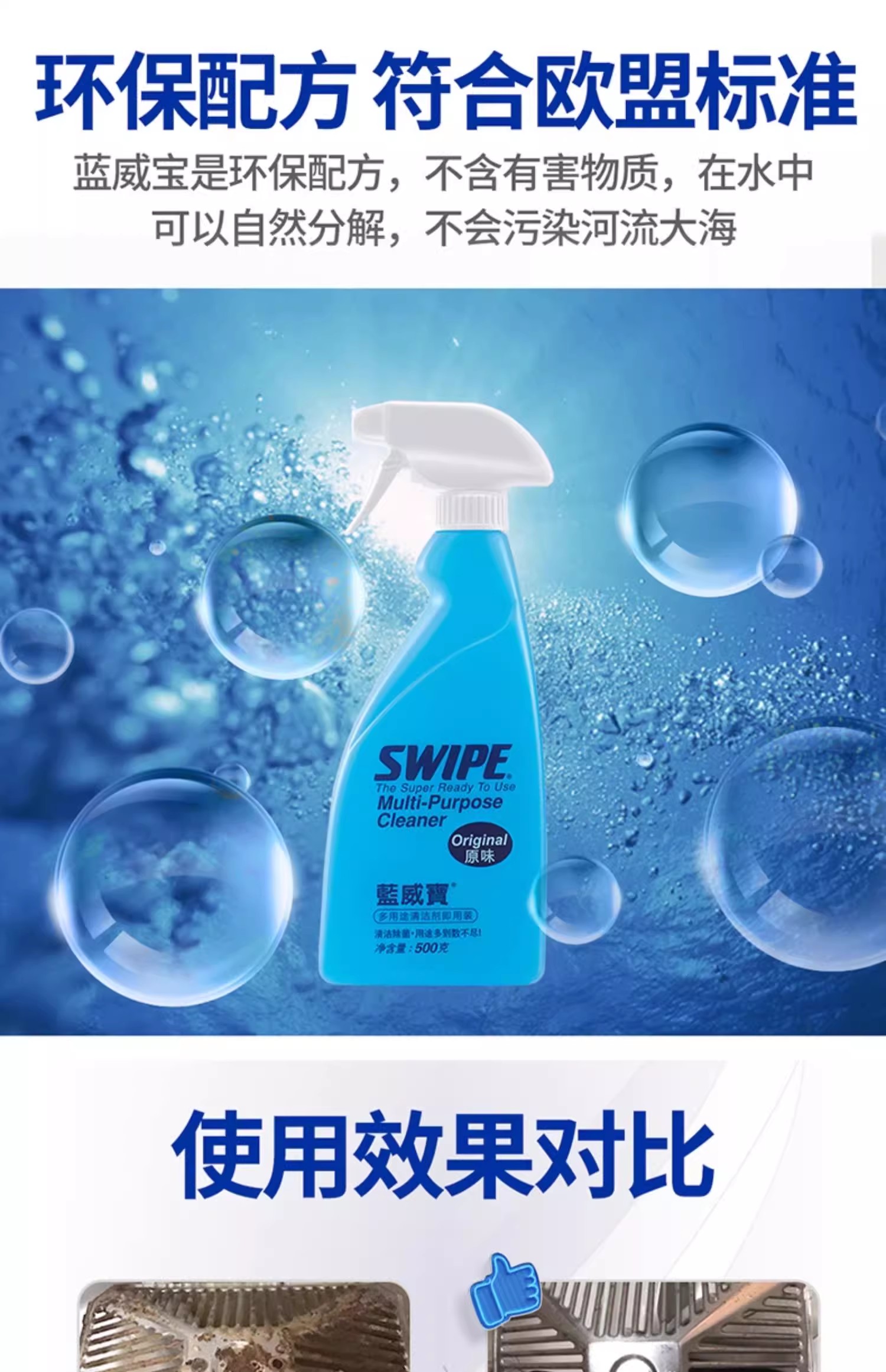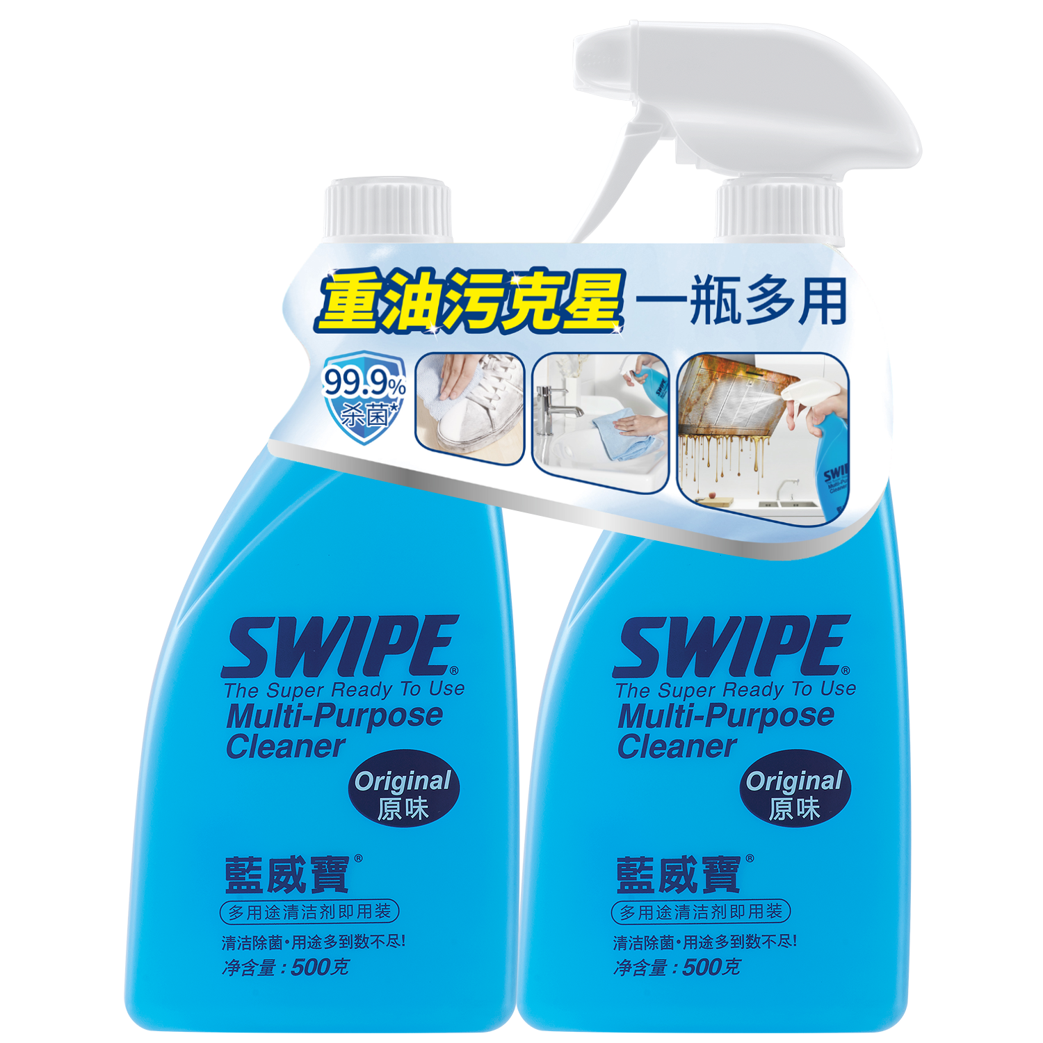 【2装装】(蓝)威宝原味多用途清洁剂即用装 500克+补充装500克
