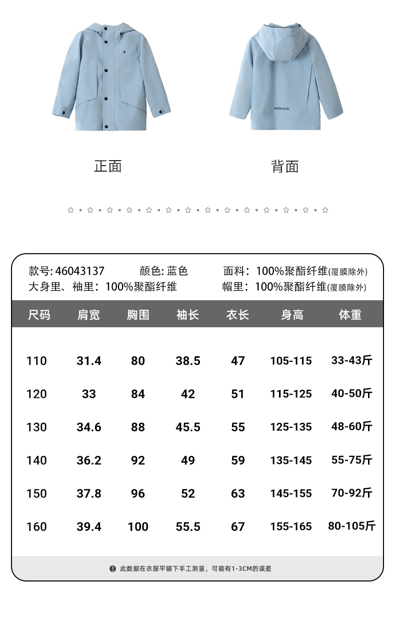 【防水防油】mettekids男童外套2024秋新款风衣时尚百搭儿童外套