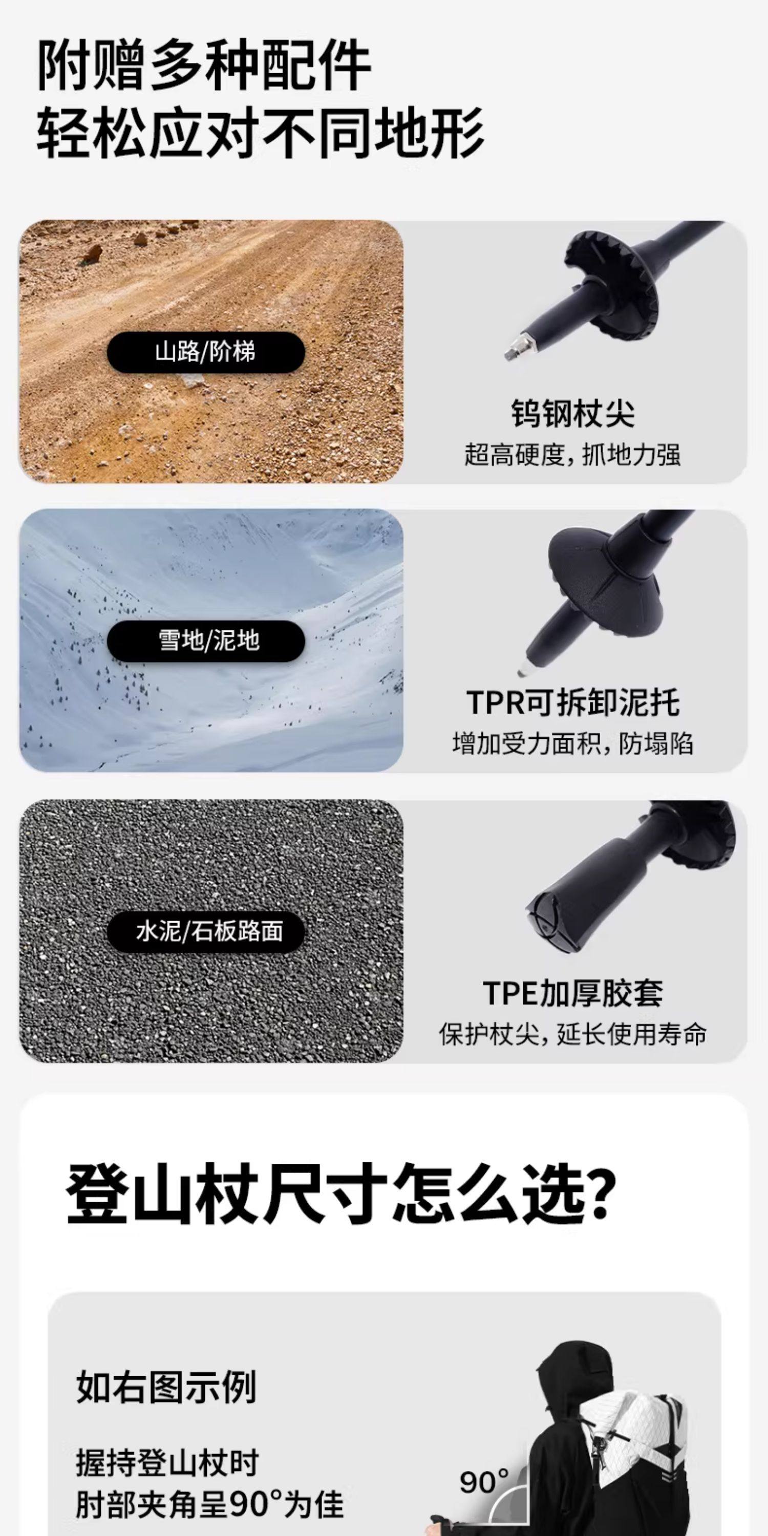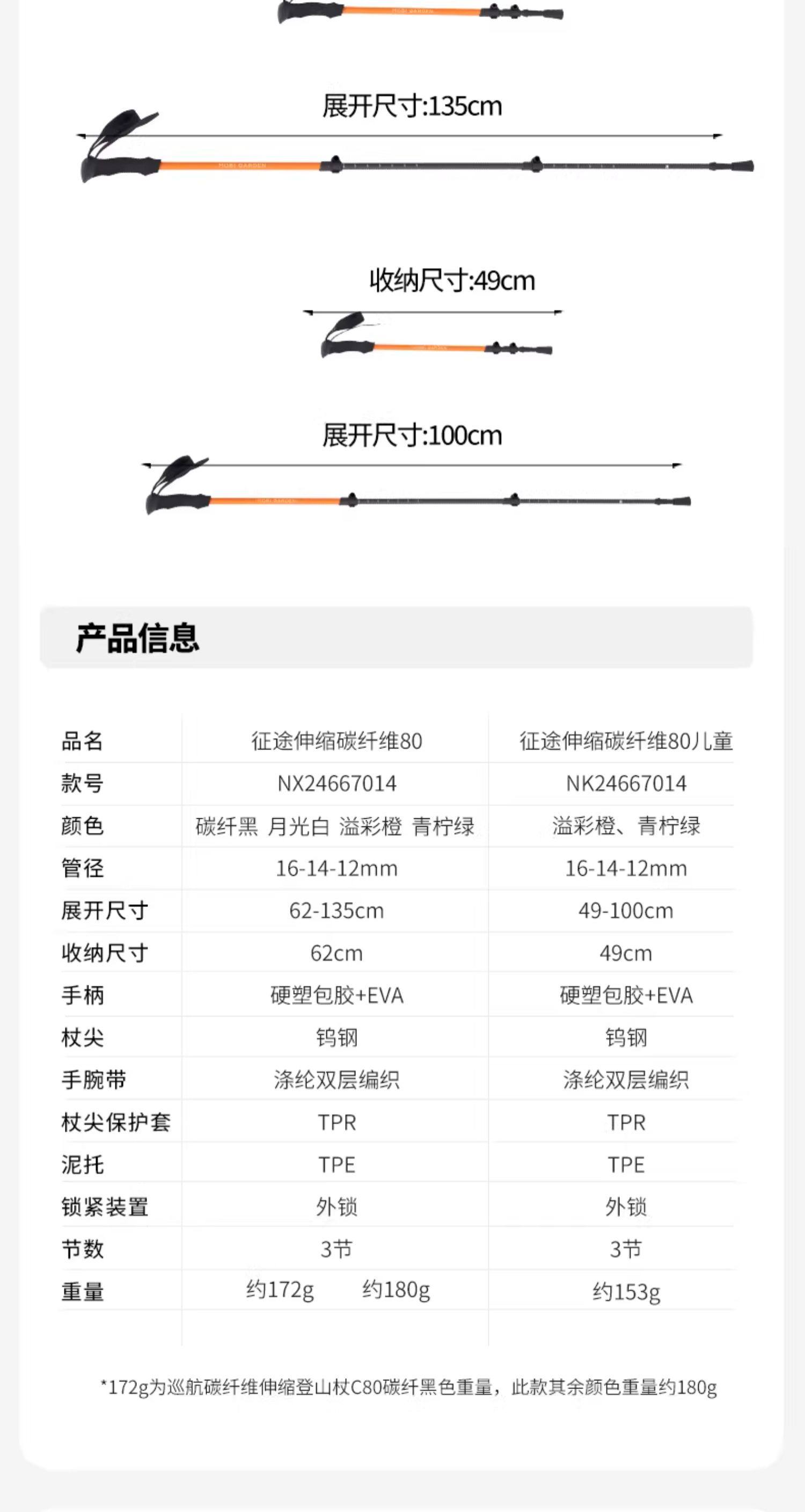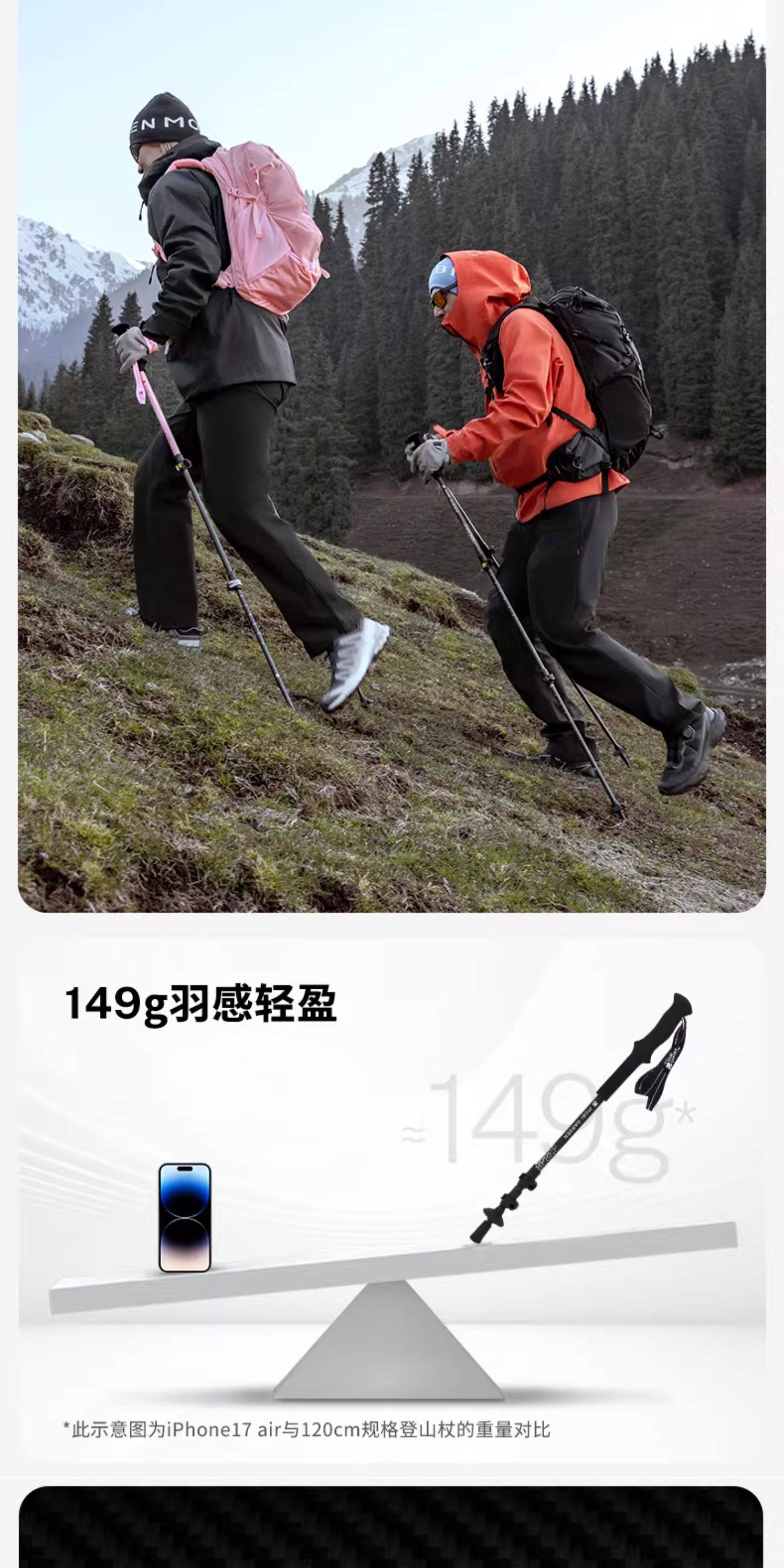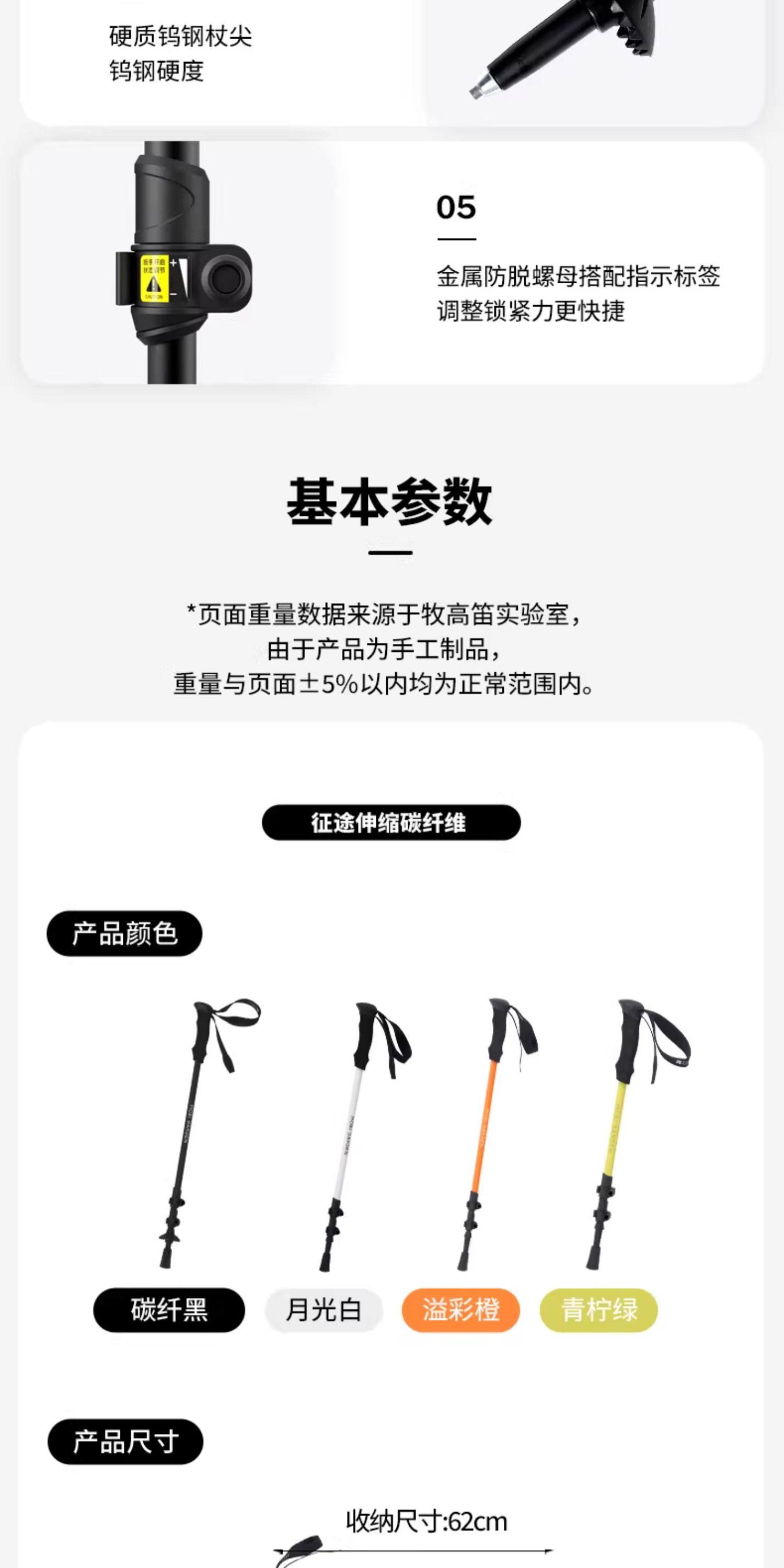 牧高笛征途碳纤维碳素超轻伸缩成人儿童女专业户外徒步登山杖手杖