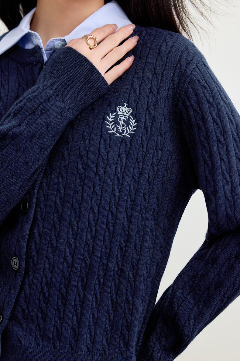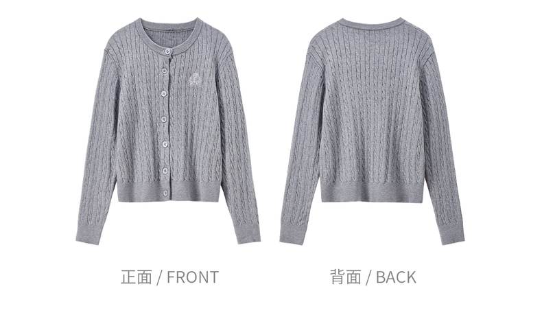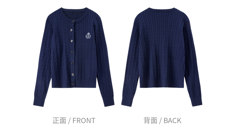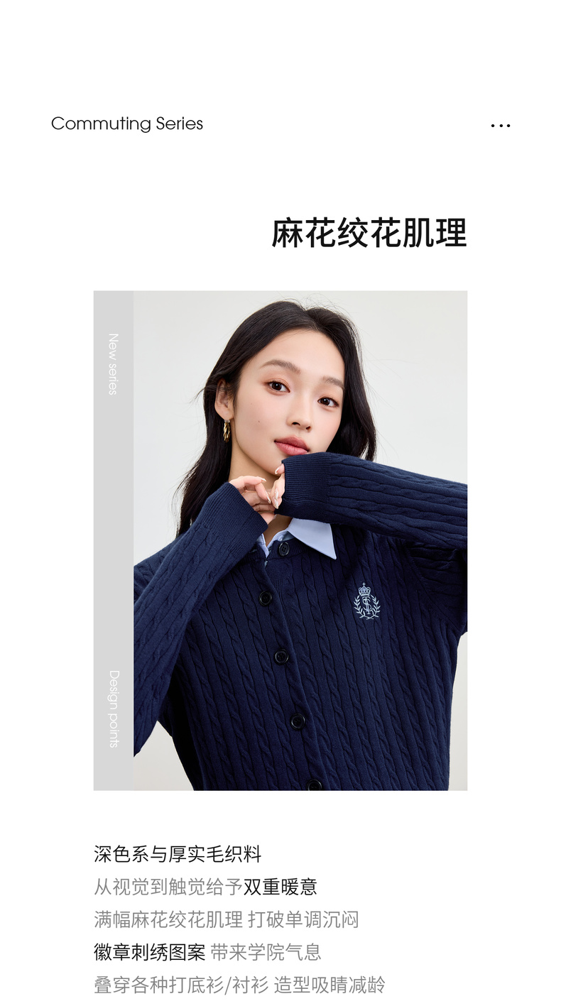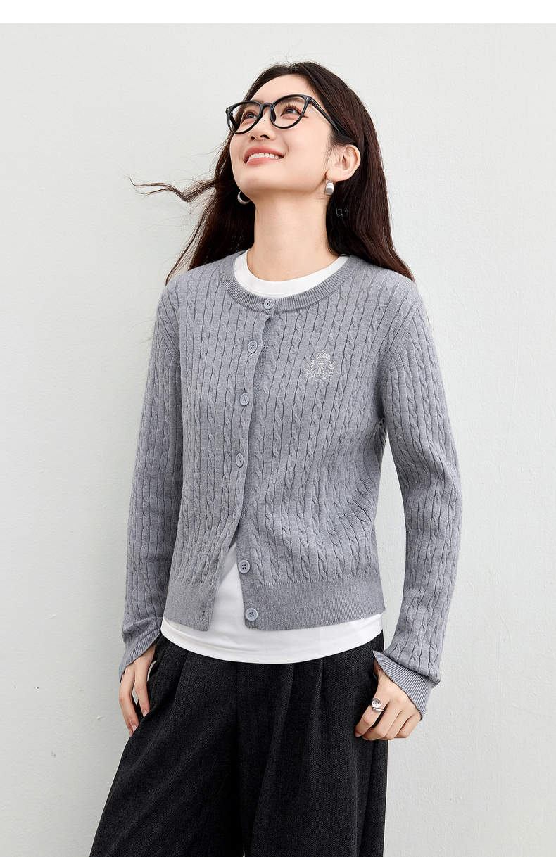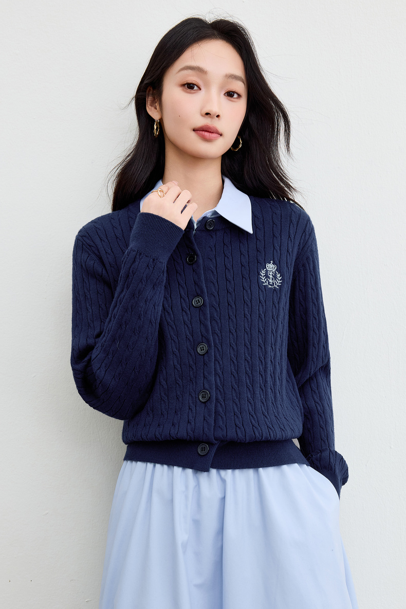 【内购】【厚实保暖】知识分子学院风圆领徽章刺绣麻花肌理弹力开衫毛衣-W53EB2689