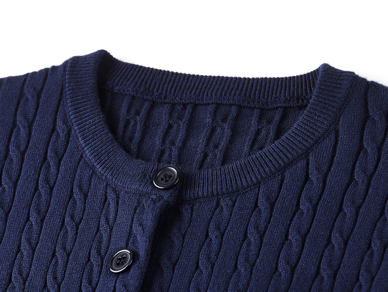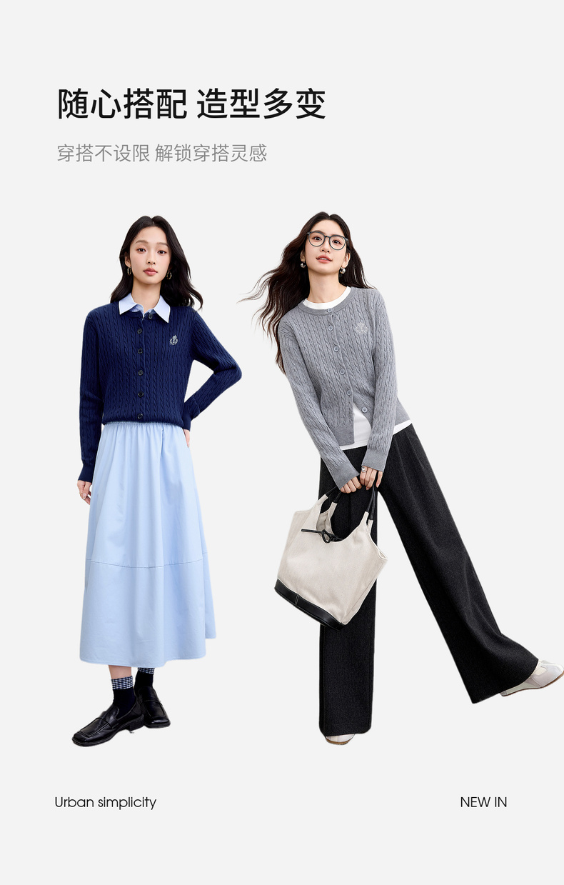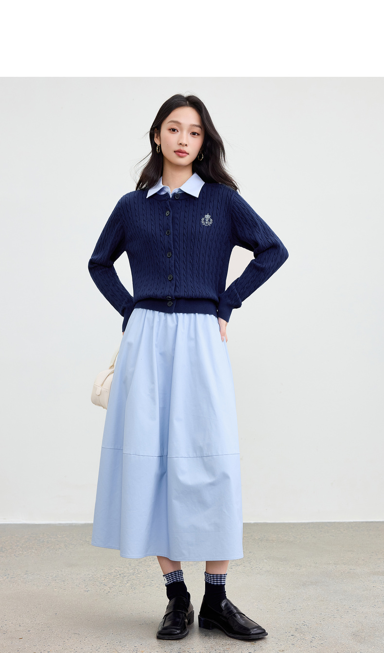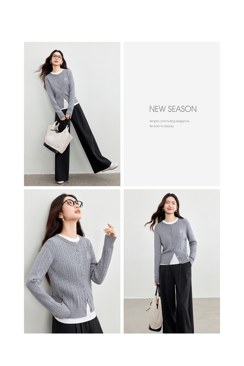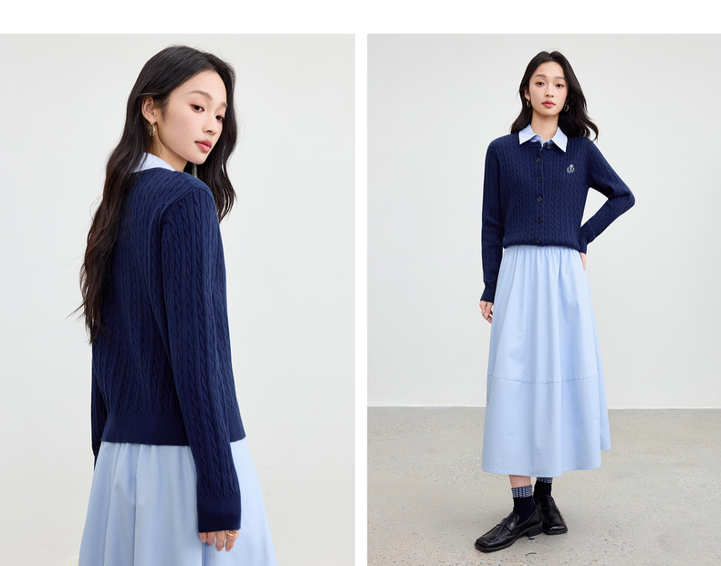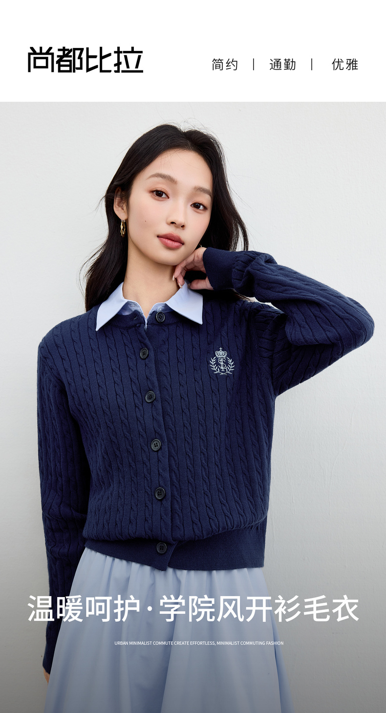 【内购】【厚实保暖】知识分子学院风圆领徽章刺绣麻花肌理弹力开衫毛衣-W53EB2689
