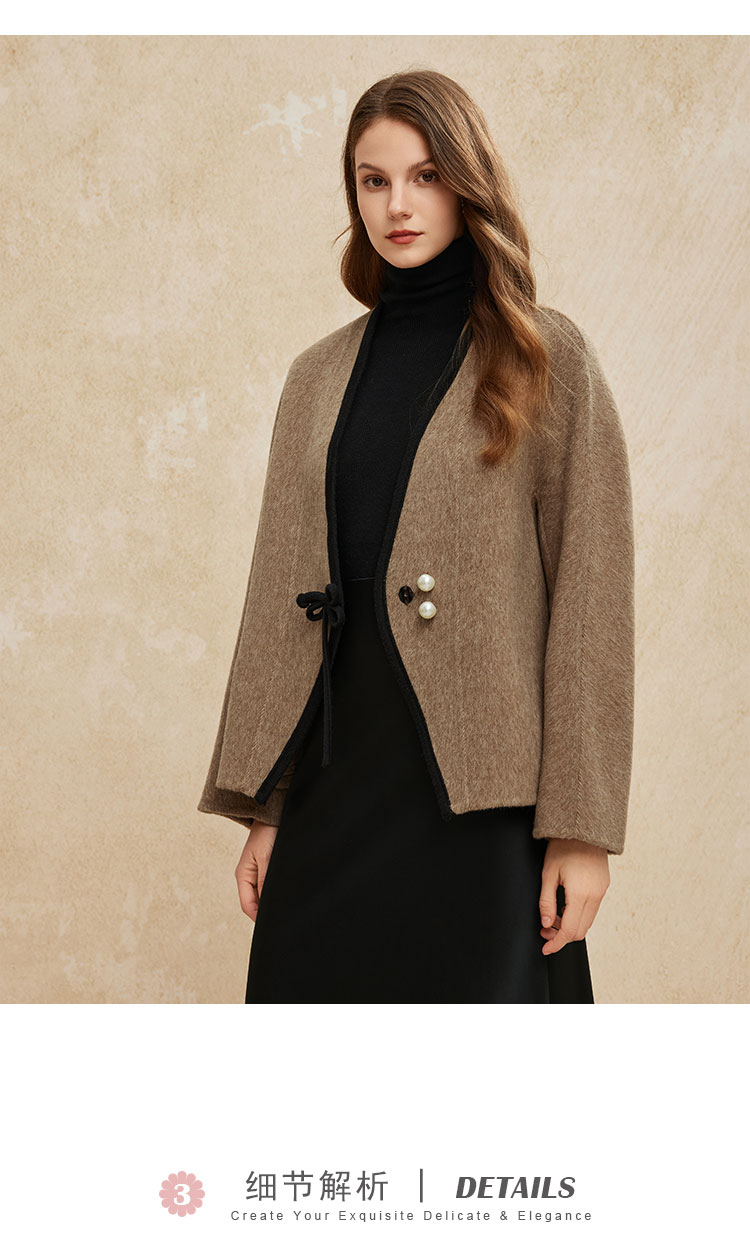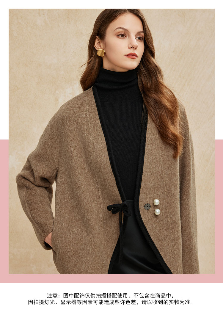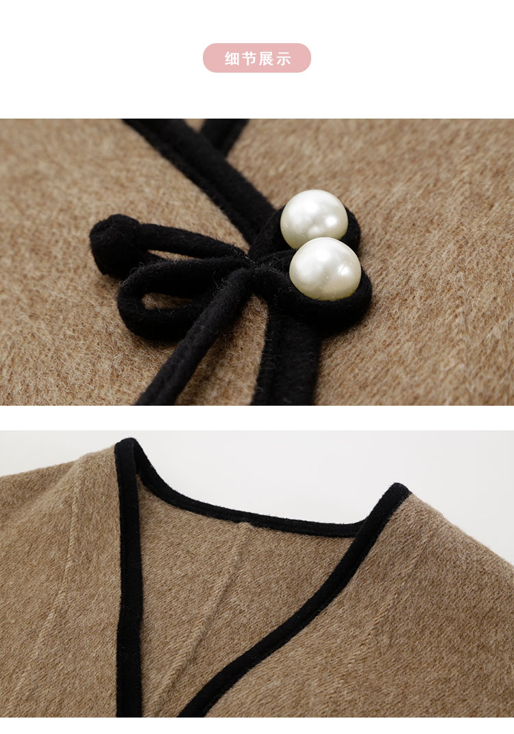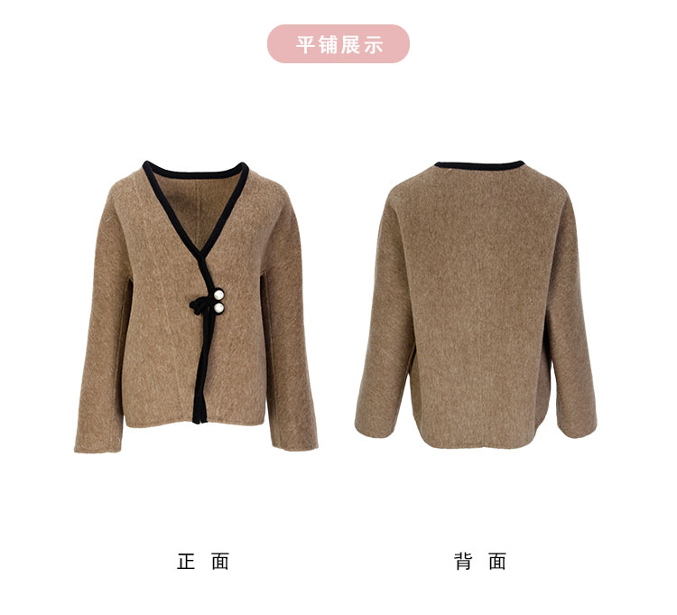 PH958斯尔丽24新款轻国风撞色滚边精致盘扣V领小个子双面呢羊毛大衣