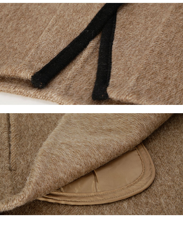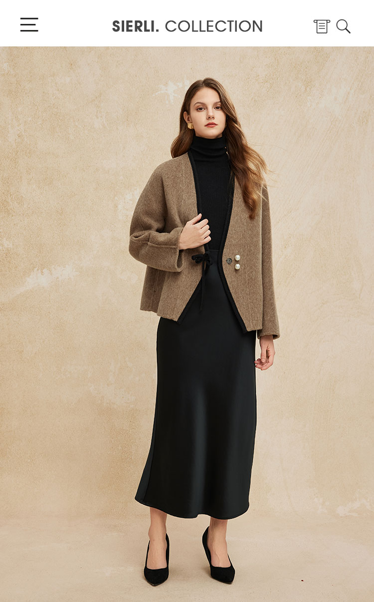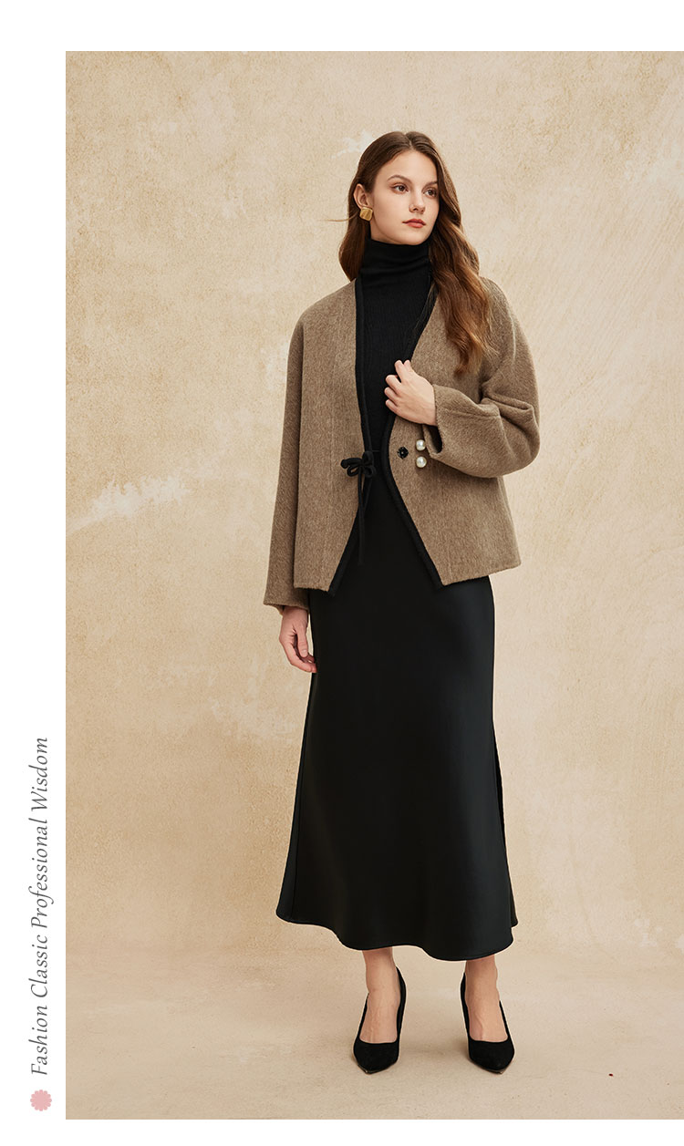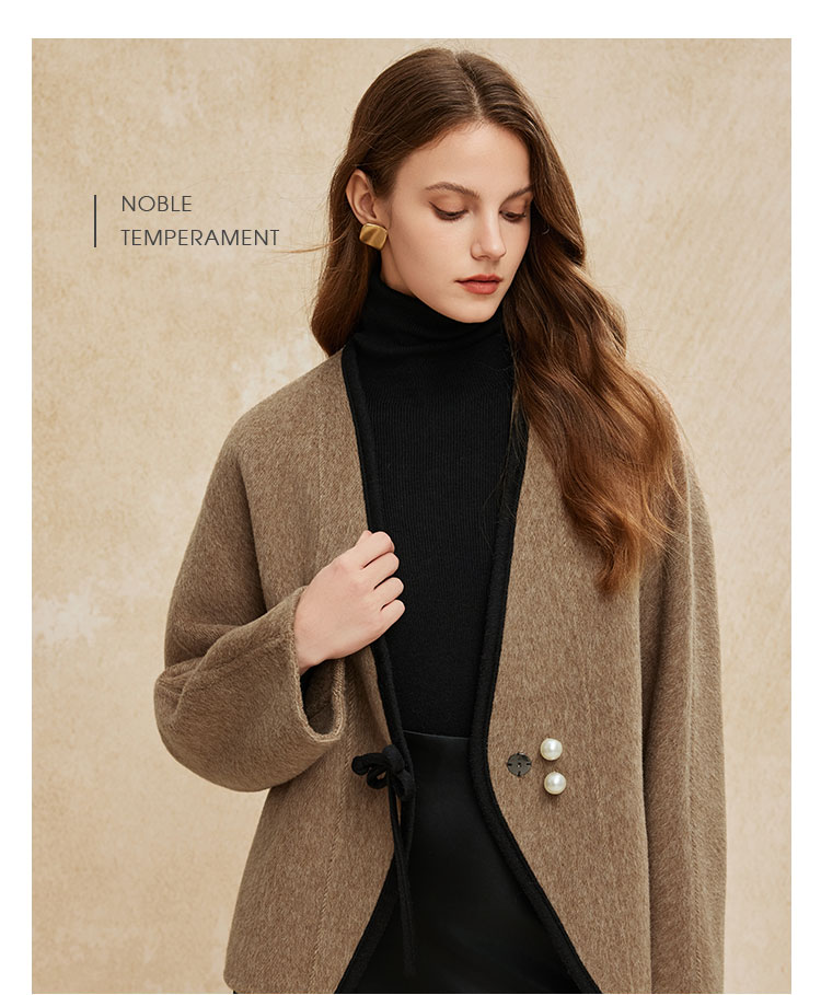 PH958斯尔丽24新款轻国风撞色滚边精致盘扣V领小个子双面呢羊毛大衣