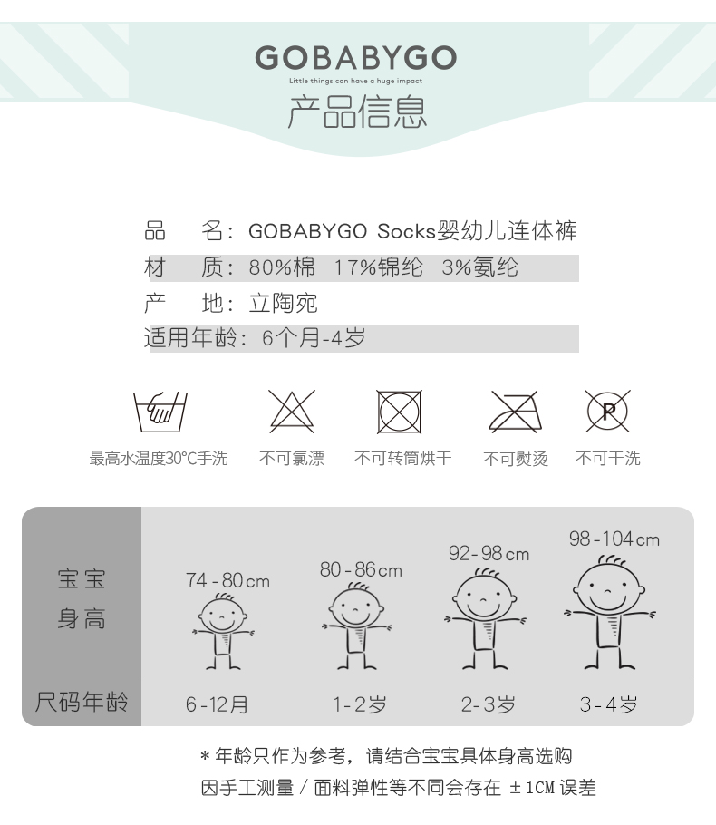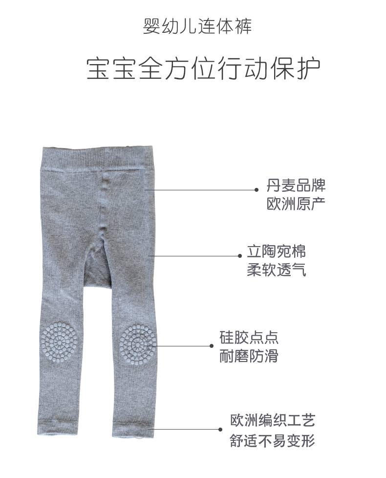 丹麦Gobabygo1-2岁婴儿护膝长连体裤男女宝宝学步爬行儿童打底裤