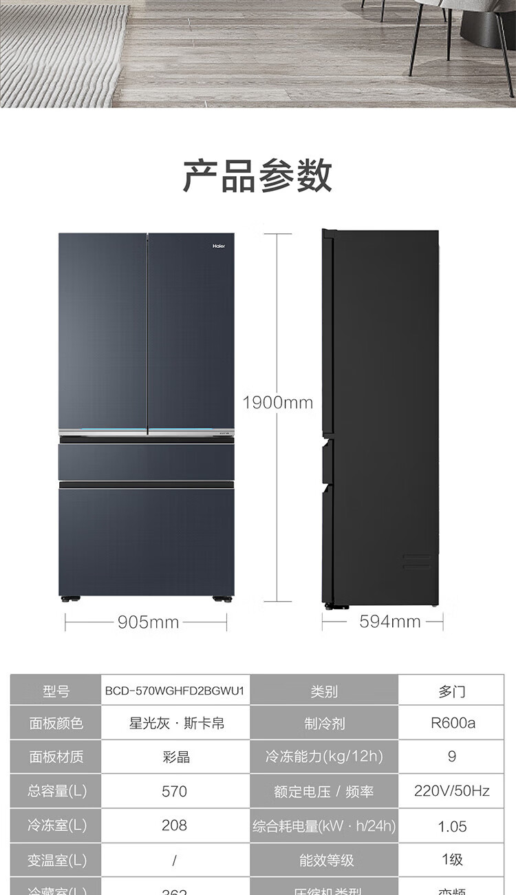 海尔法式冰箱 BCD-570WGHFD2BGWU1