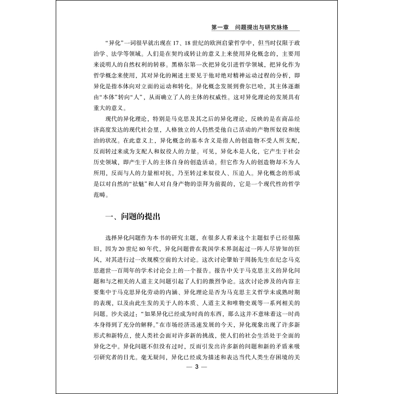 本书一是在研究视角上,从哲学的基本研究对象和现代人面临的生存矛盾出发,深刻分析异化已经成为现代生存论哲学的基本研究问题;二是在理论基础上,以马克思异化理论为基础,综合现有的异化研究的理论成果,对异化问题进行深入完整的哲学分析。