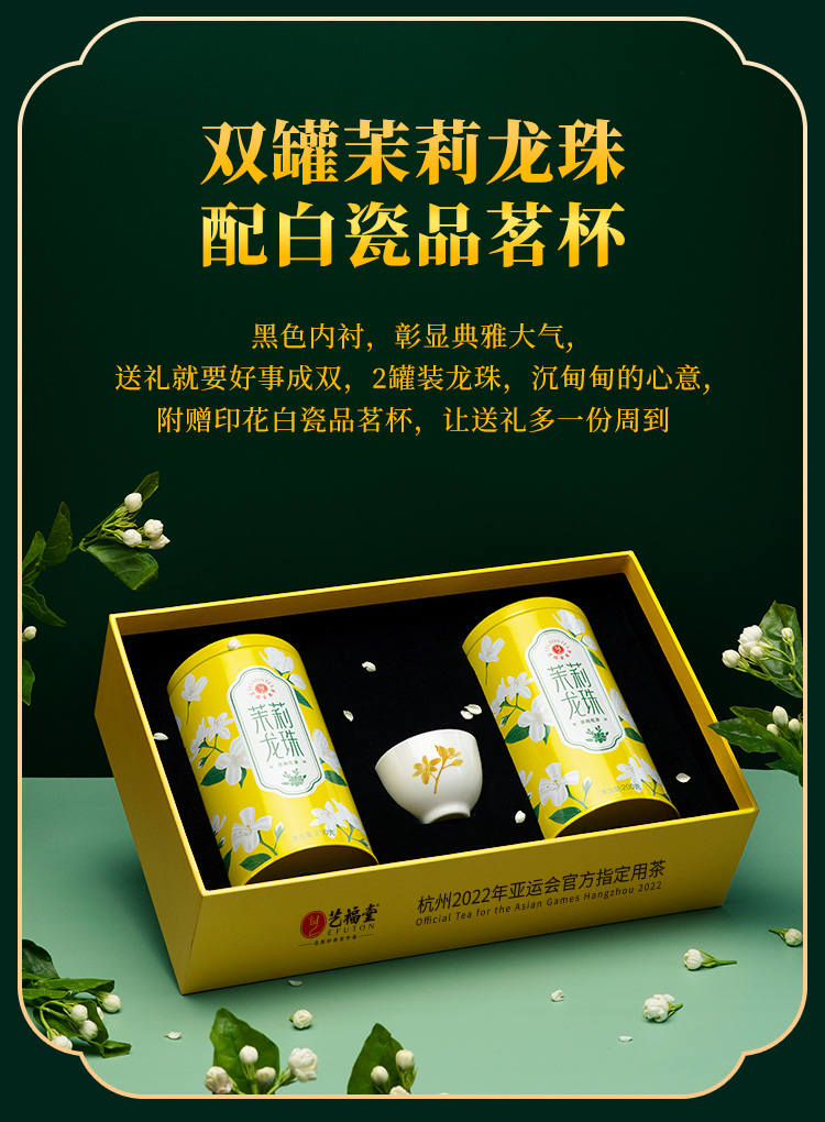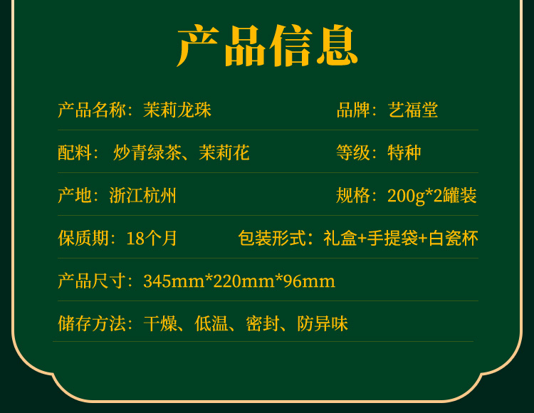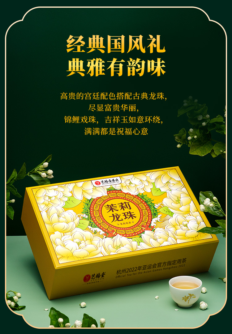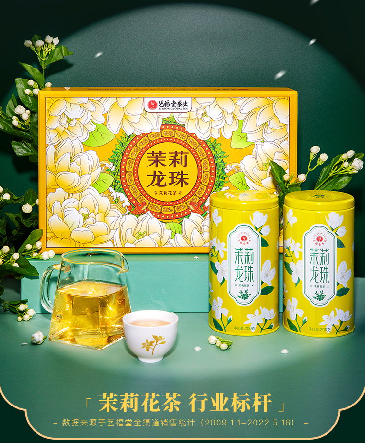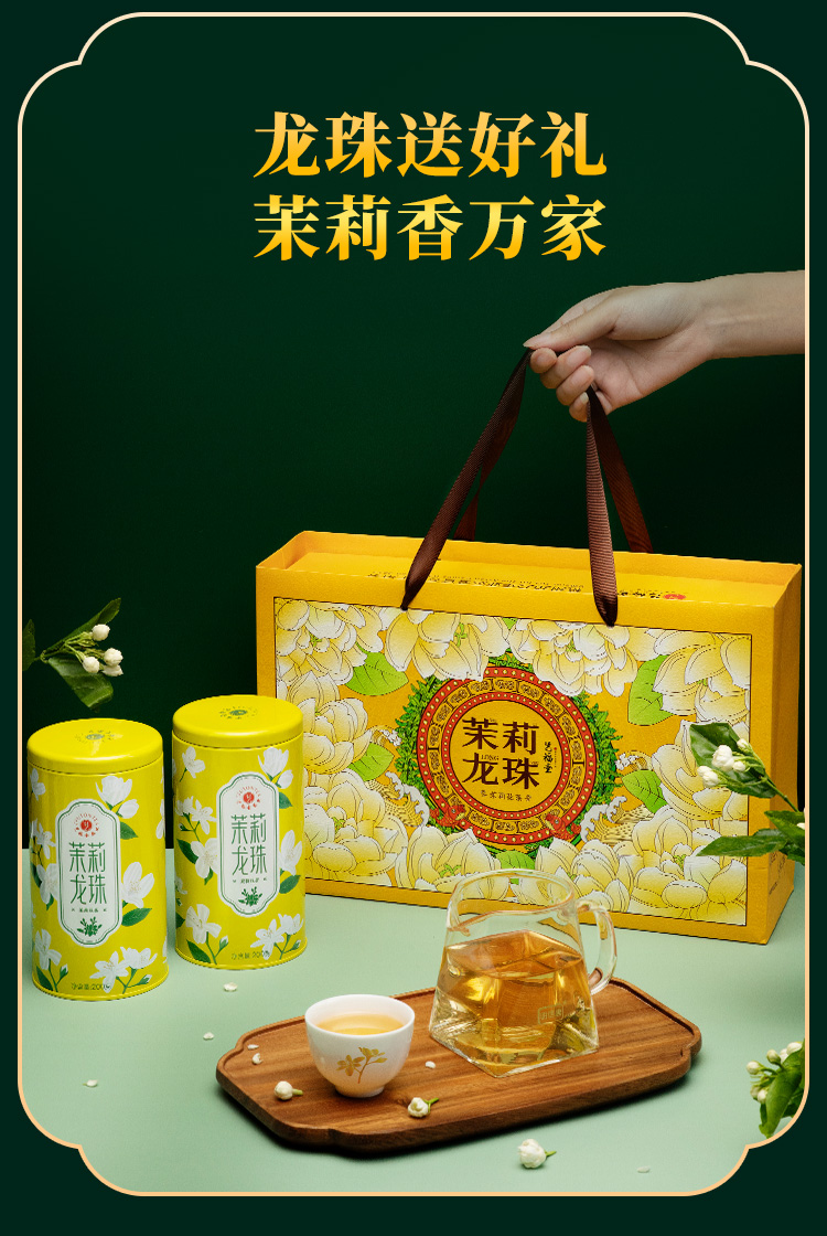 艺福堂茉莉龙珠高档礼盒400g 送礼送长辈新茶浓香型特级茉莉花茶