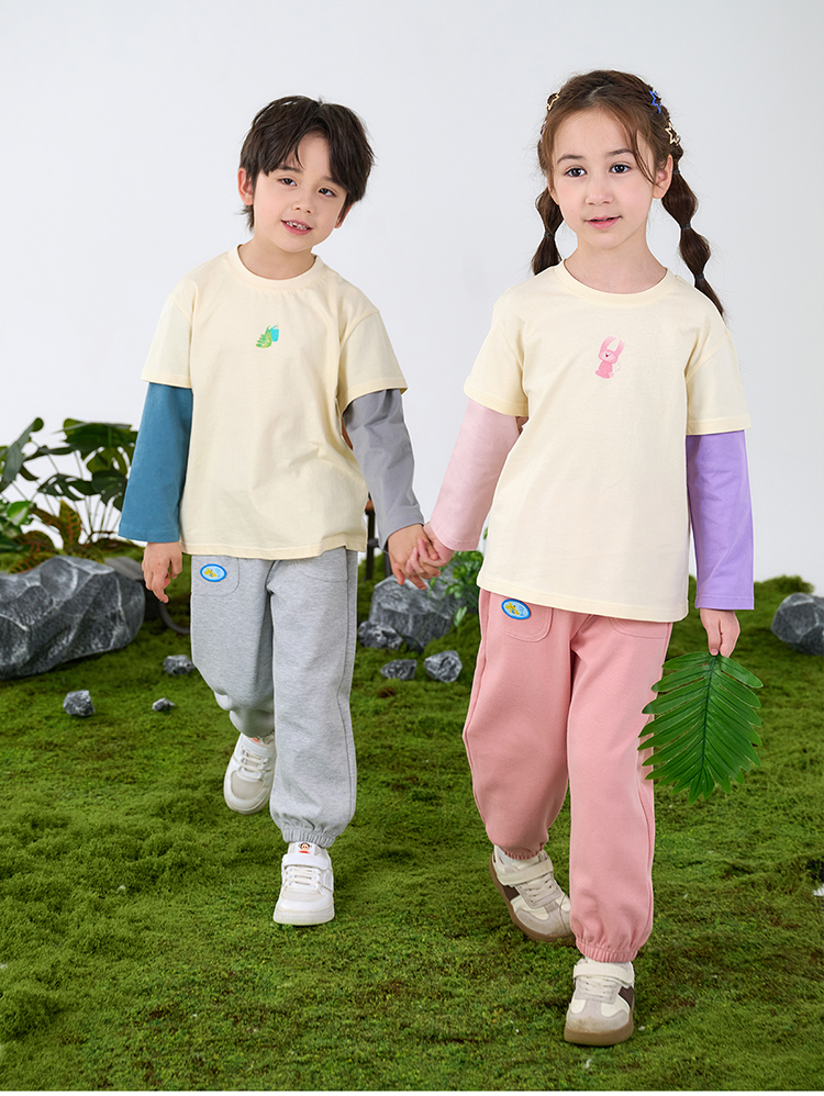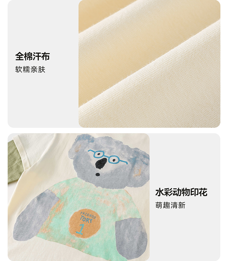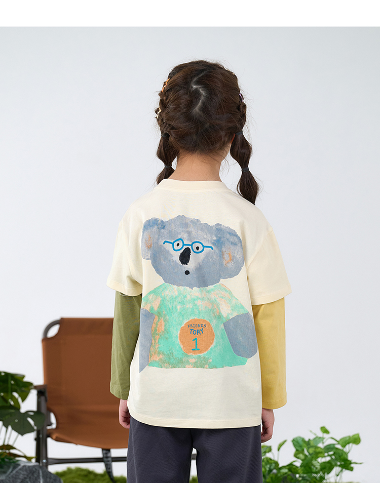 【纯棉10A抗菌】棉花堂水彩动物假两件长袖童装 -FA61005