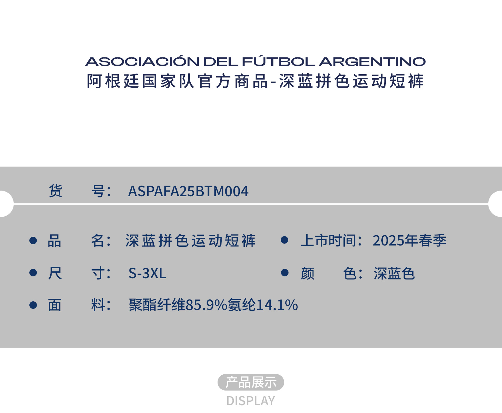 【官方正版】阿根廷国家队 | 夏季深蓝拼色透气休闲运动短裤球迷