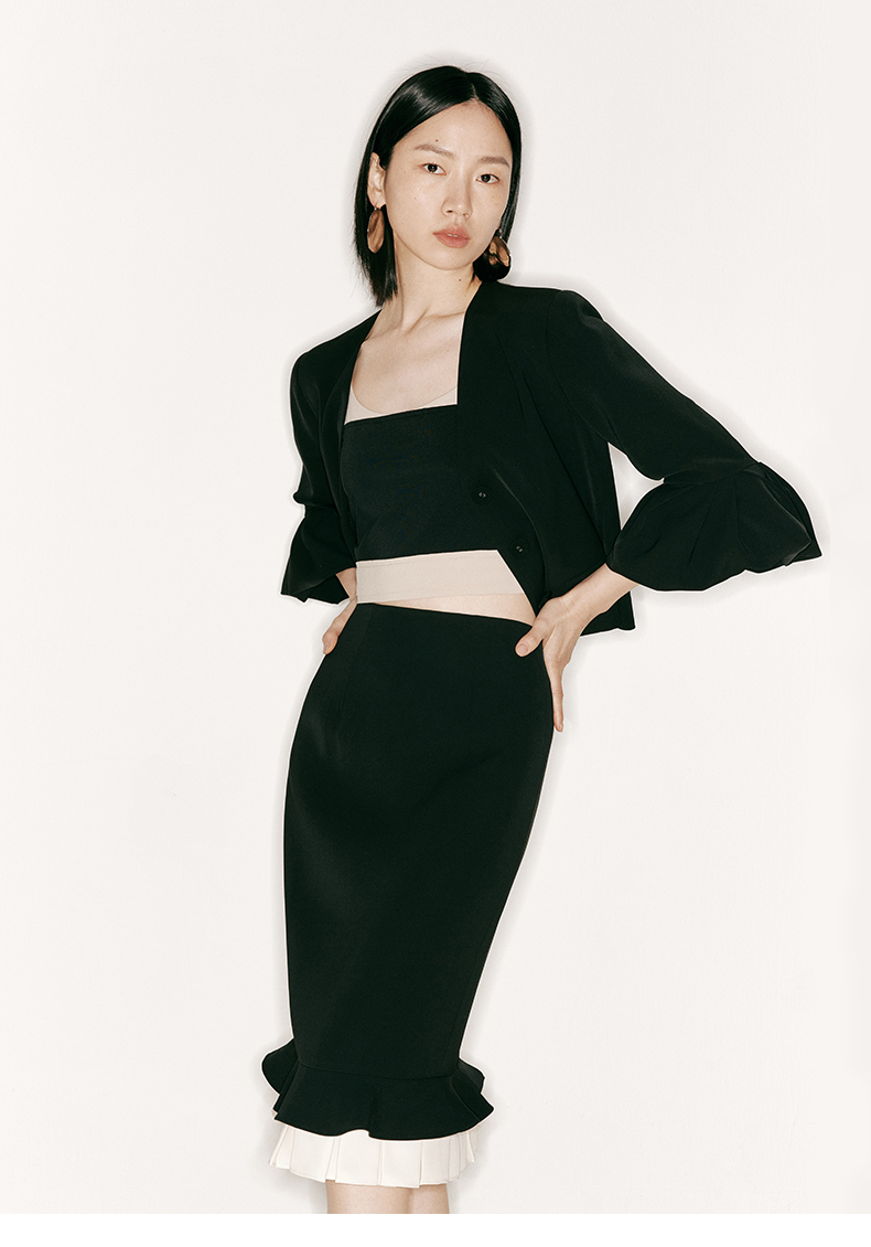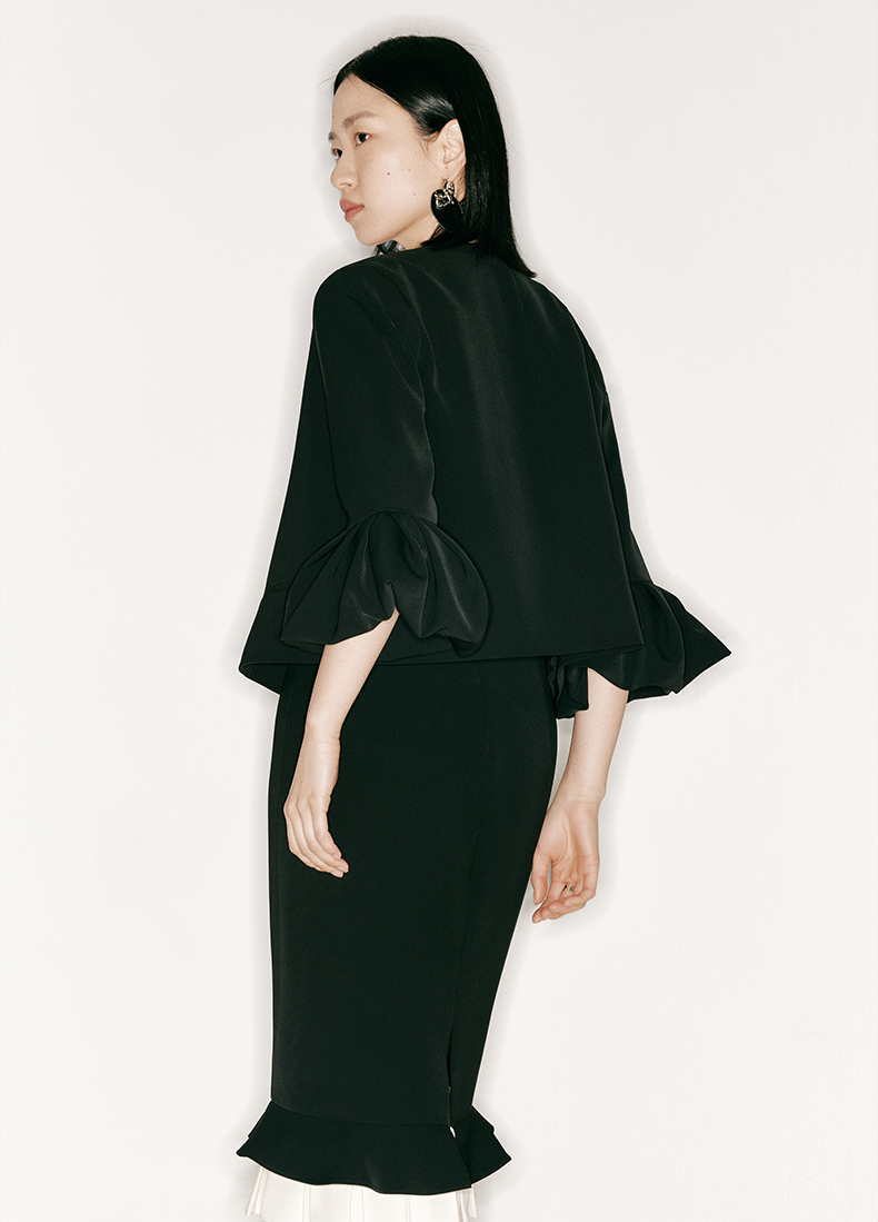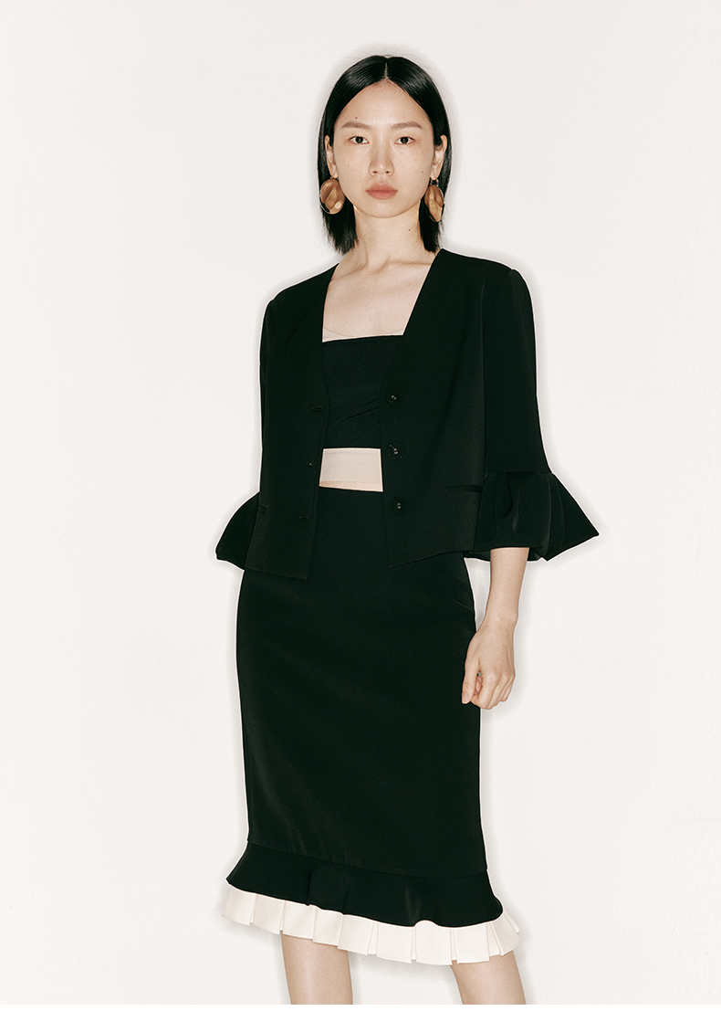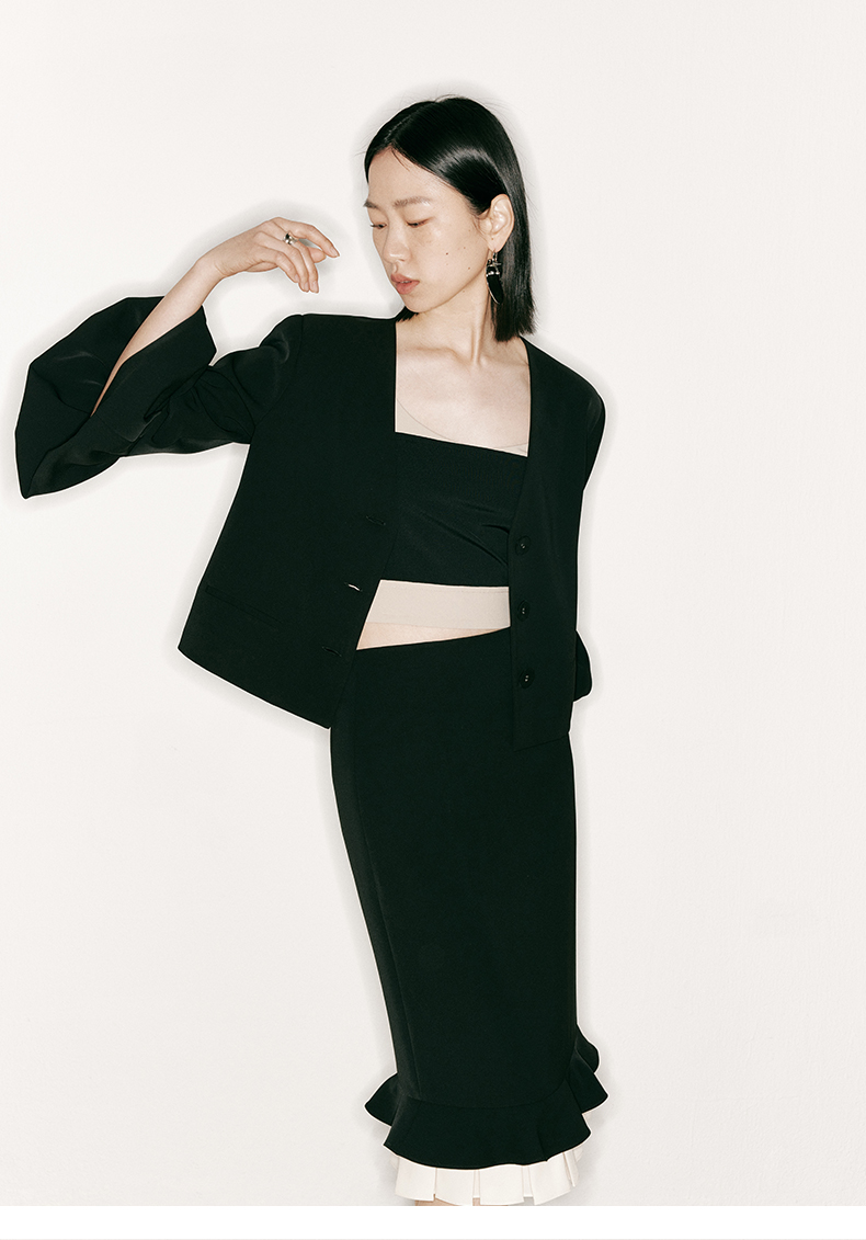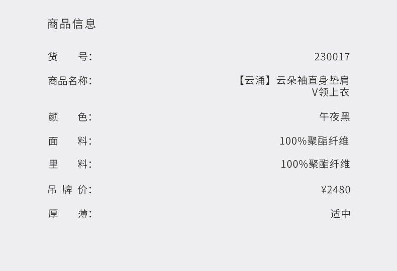 【云涌】云朵袖直身垫肩V领上衣/230017