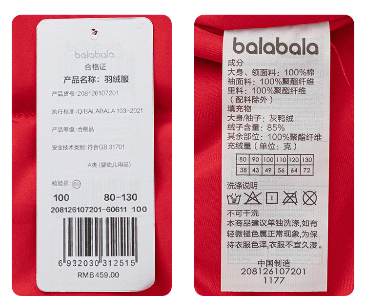 【balaOne】巴拉巴拉童装儿童羽绒服男童女童春装2025新款棒球服