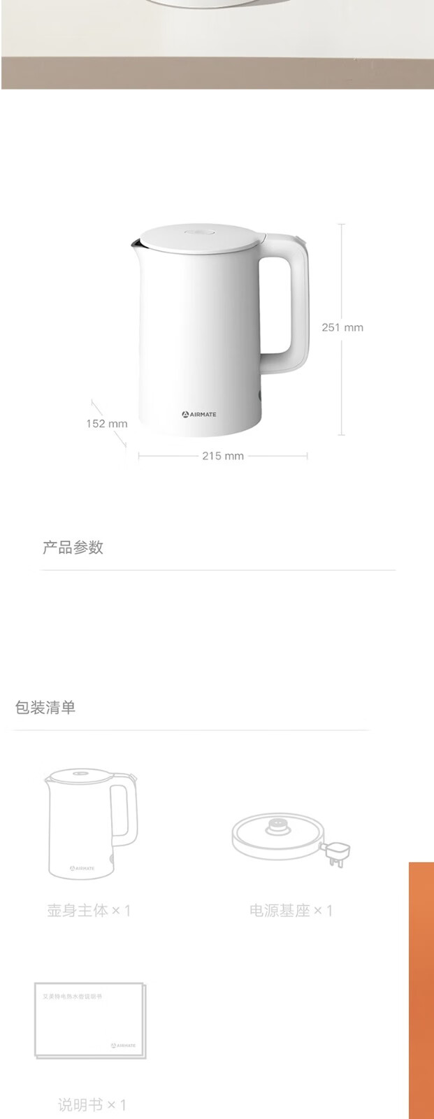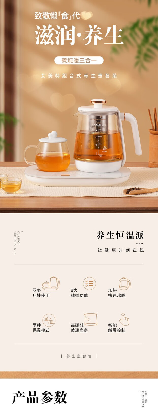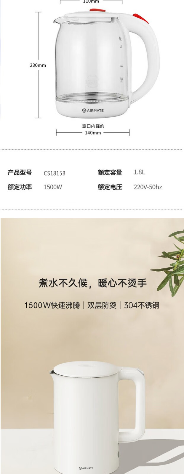 艾美特(AIRMATE)简约派养生壶电水壶办公室便携水壶 1.5L CS0915