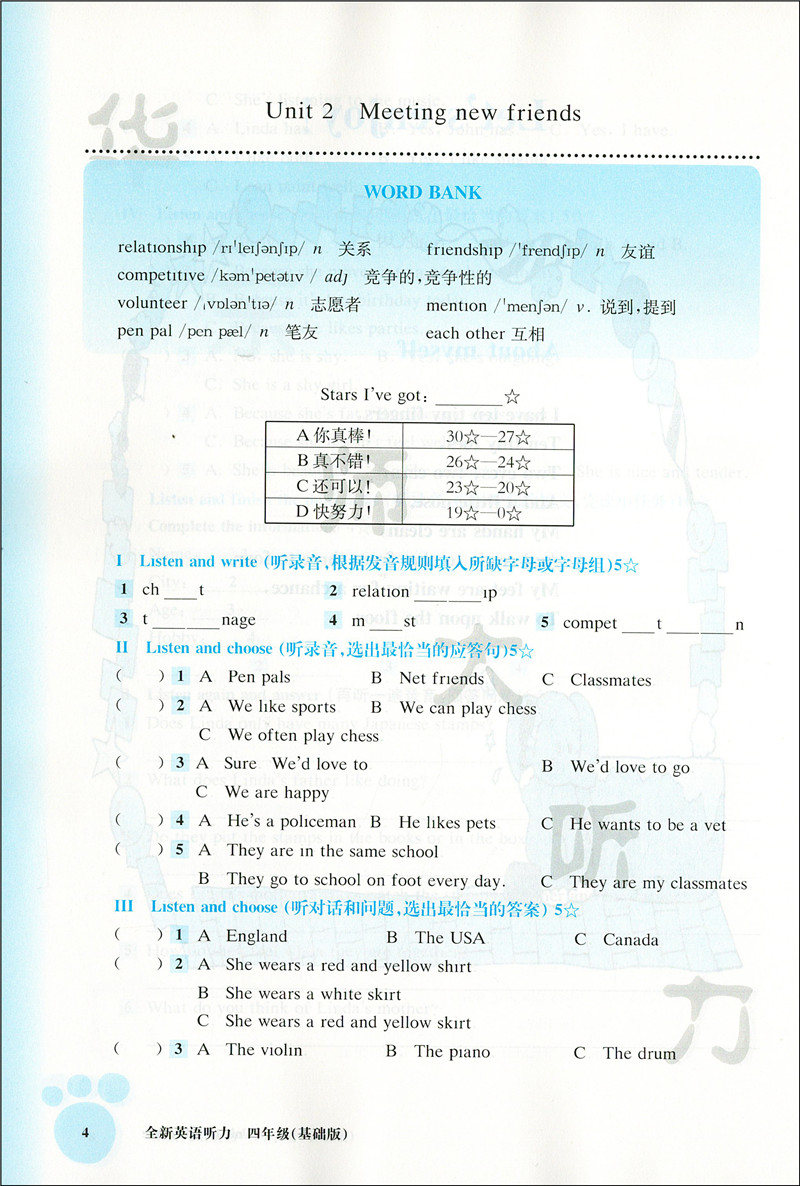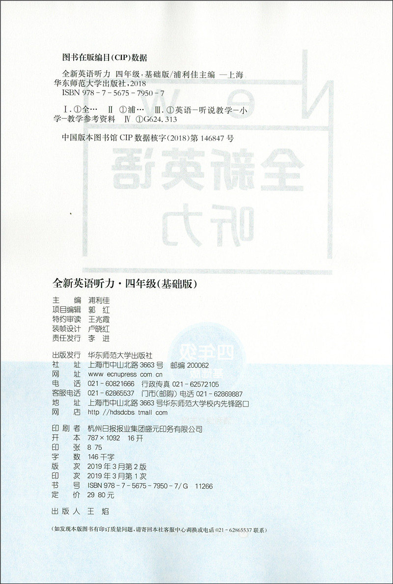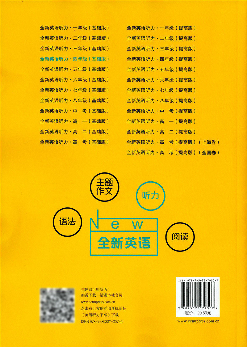 2020新版 全新英语听力四年级基础版 小学4年级英语听力 扫码听录音 小学生英语听力练习 英语听力强化训练 华东师范大学出版社