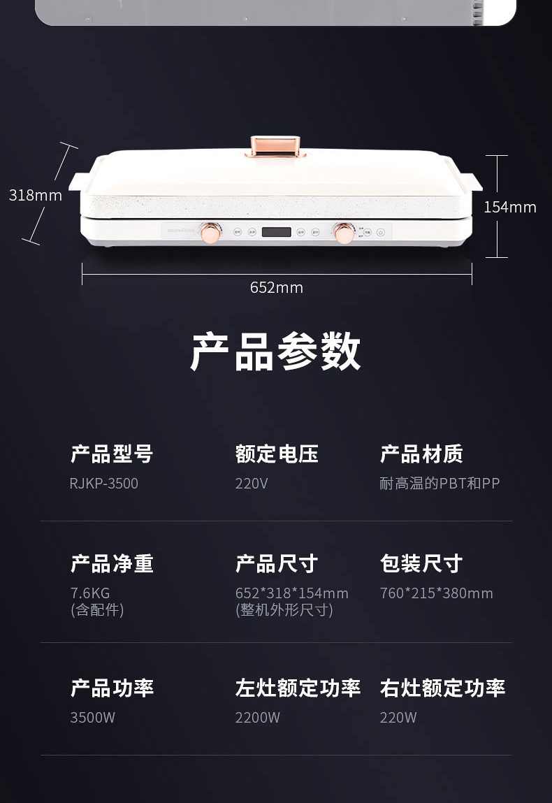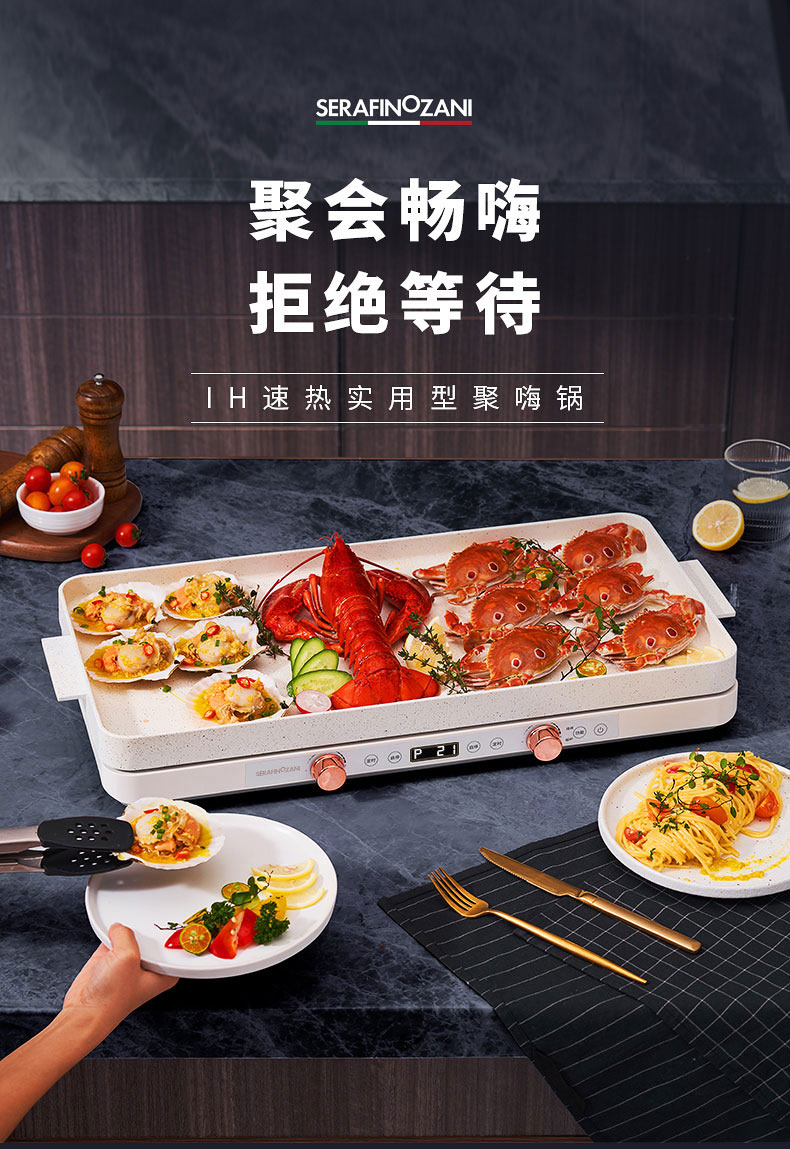 意大利 尚尼|聚嗨盘家用电烤盘烤肉火锅一体网红烤肉盘 RJKP-3500