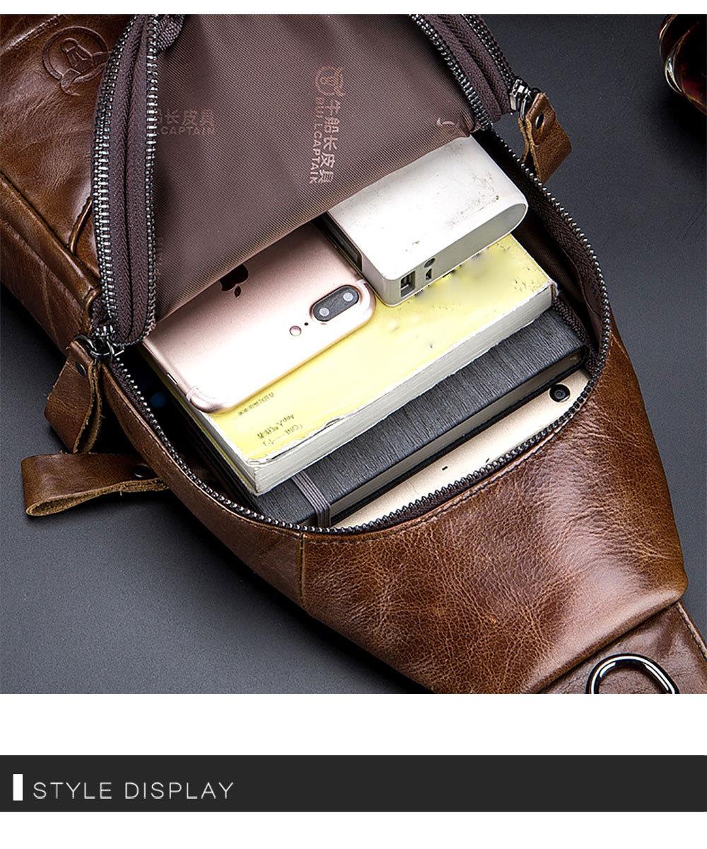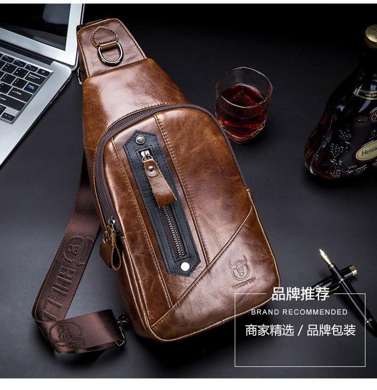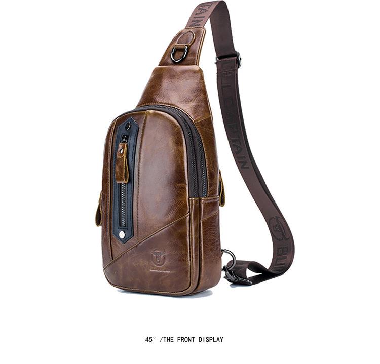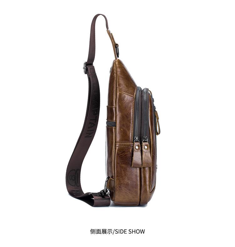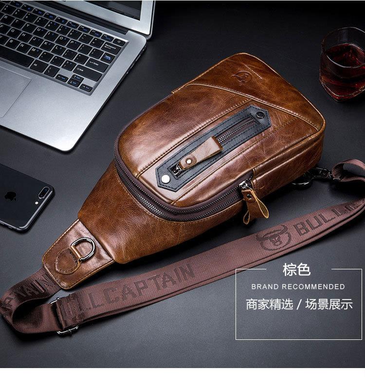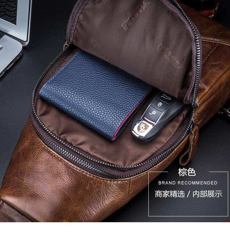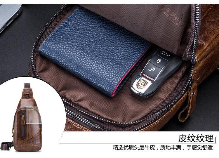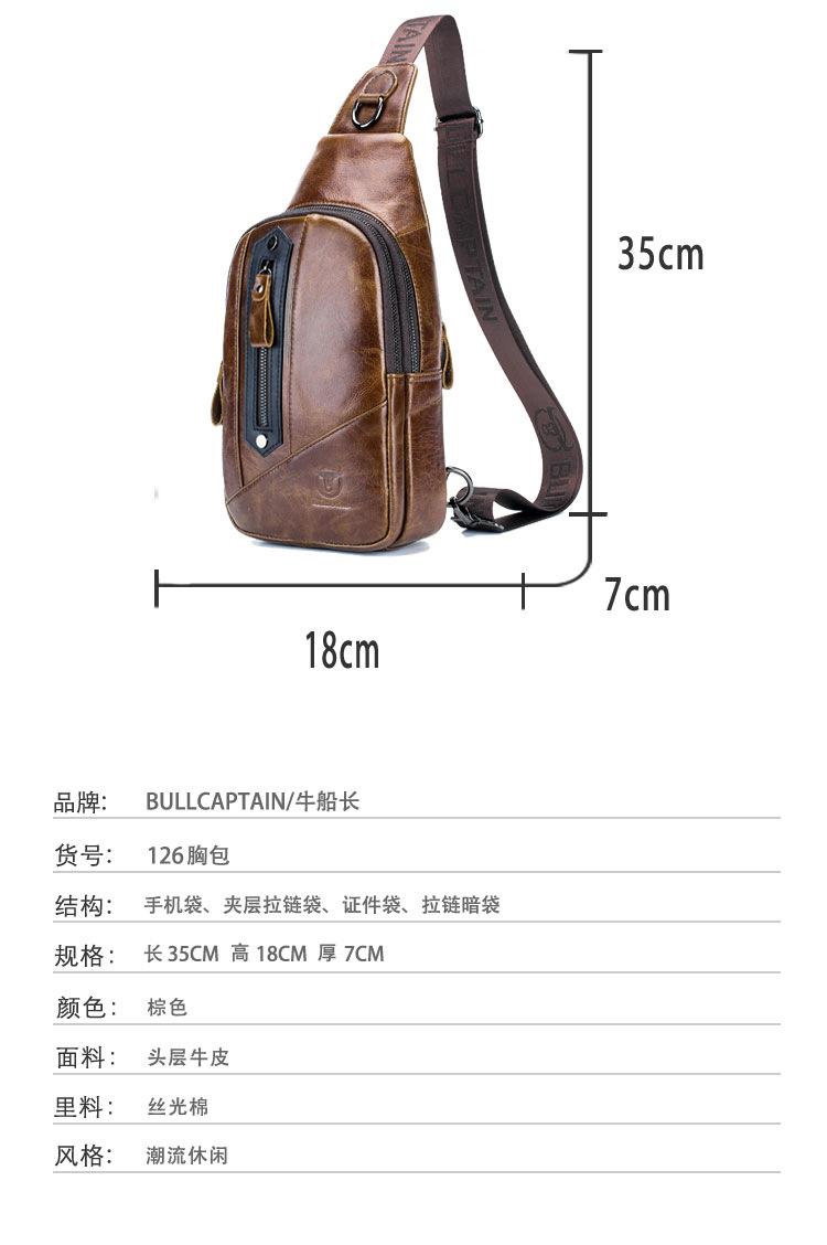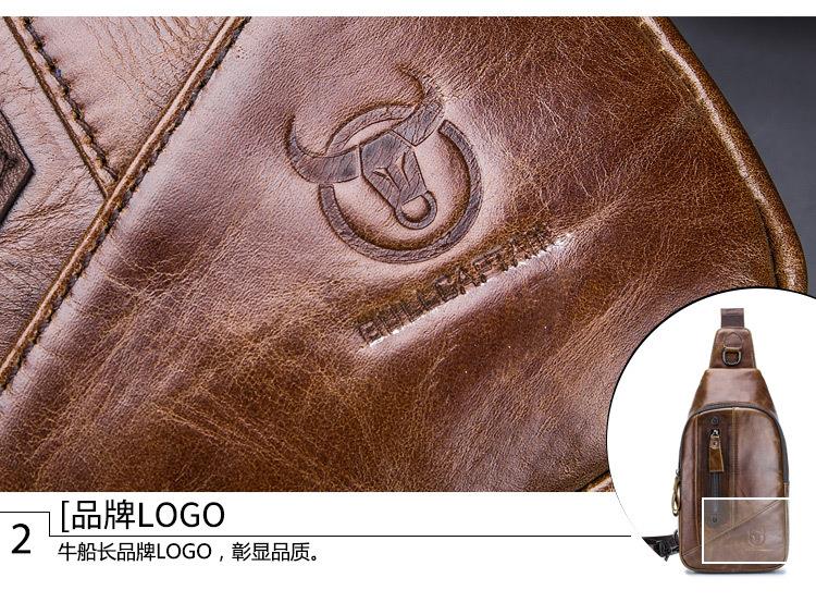 牛船长皮具真皮男单肩斜挎胸包头层牛皮潮流软皮修身多功能胸前包