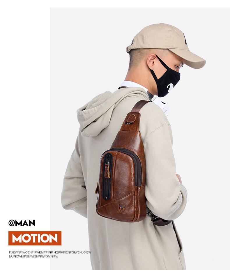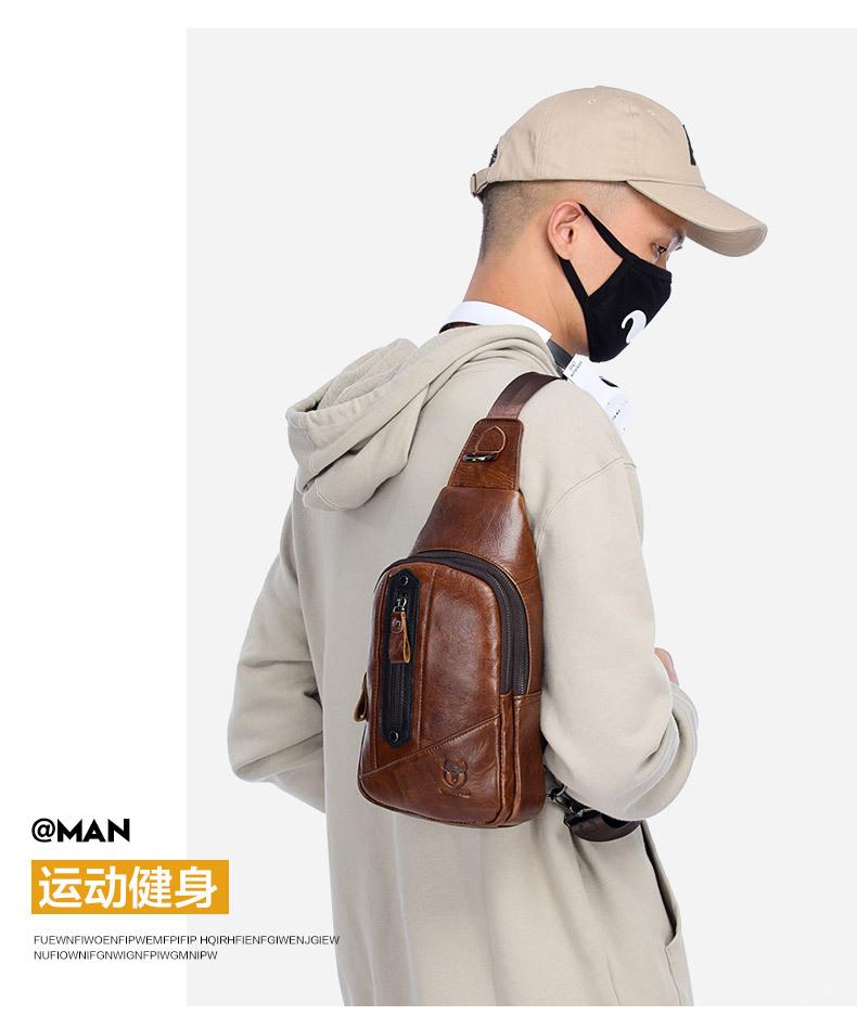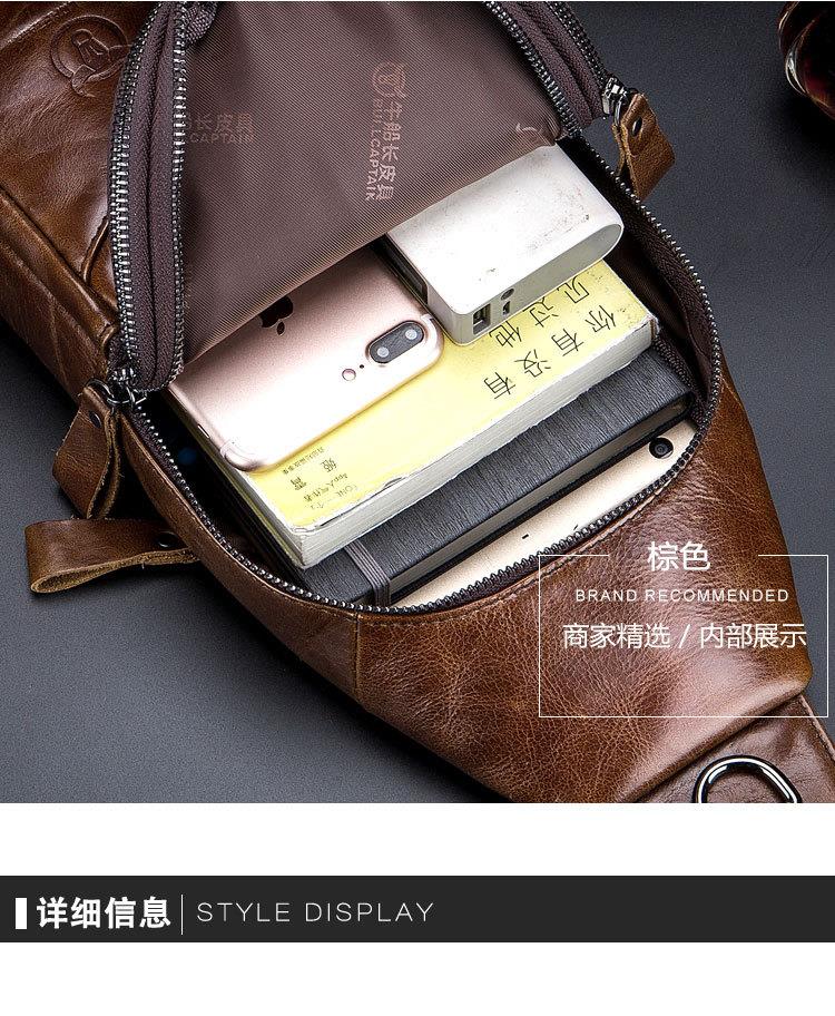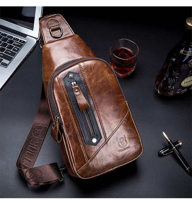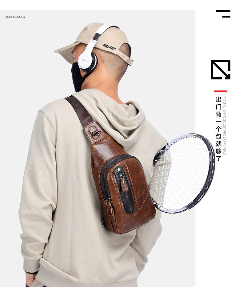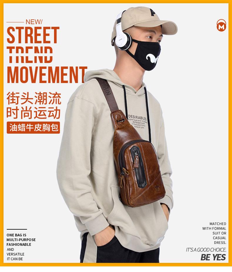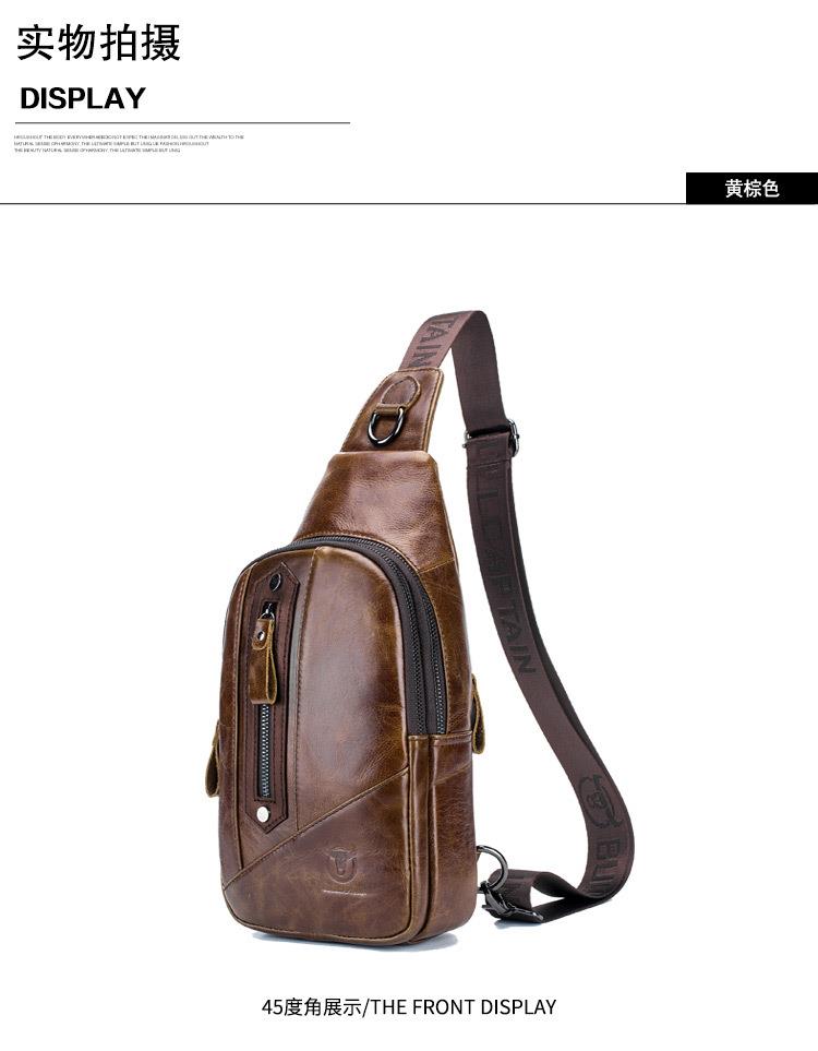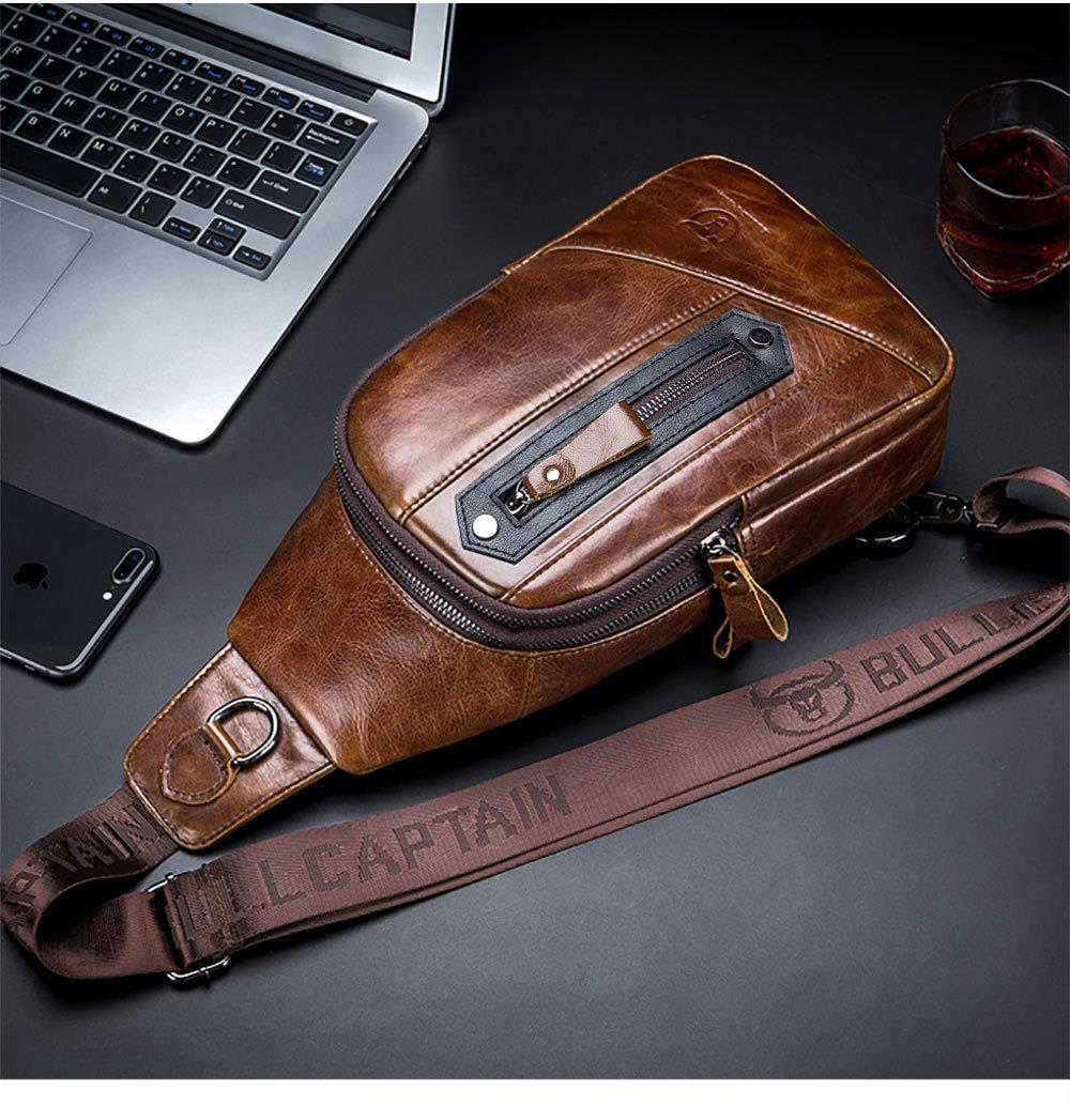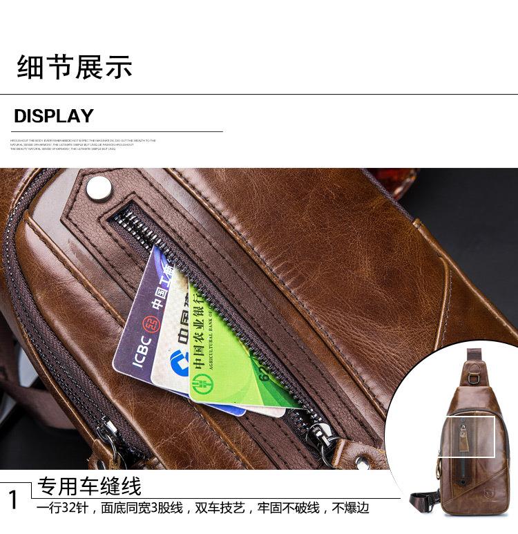 牛船长皮具真皮男单肩斜挎胸包头层牛皮潮流软皮修身多功能胸前包