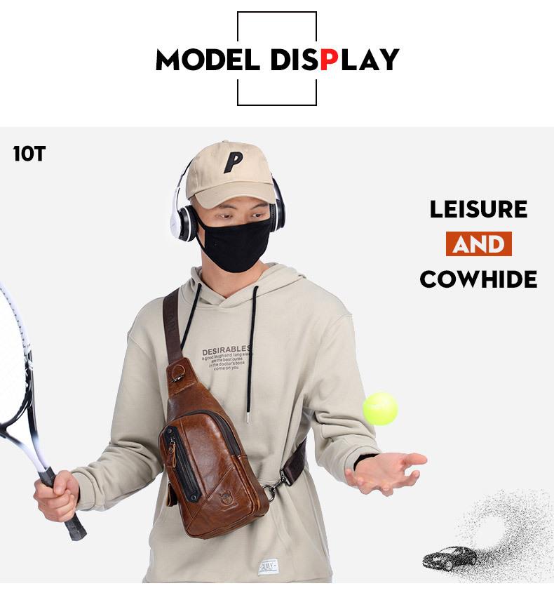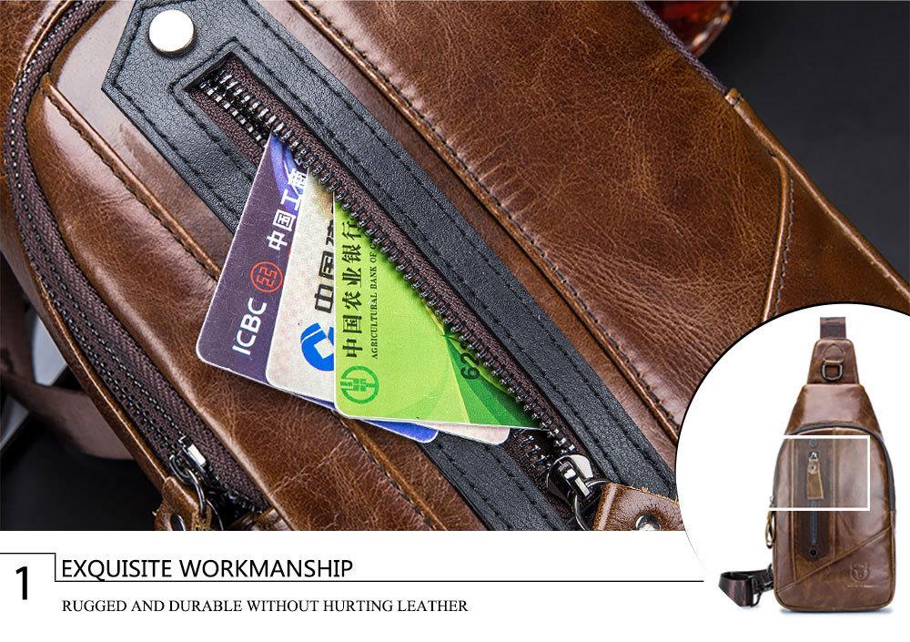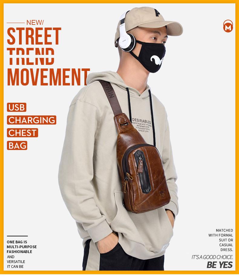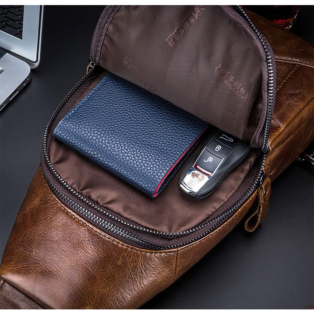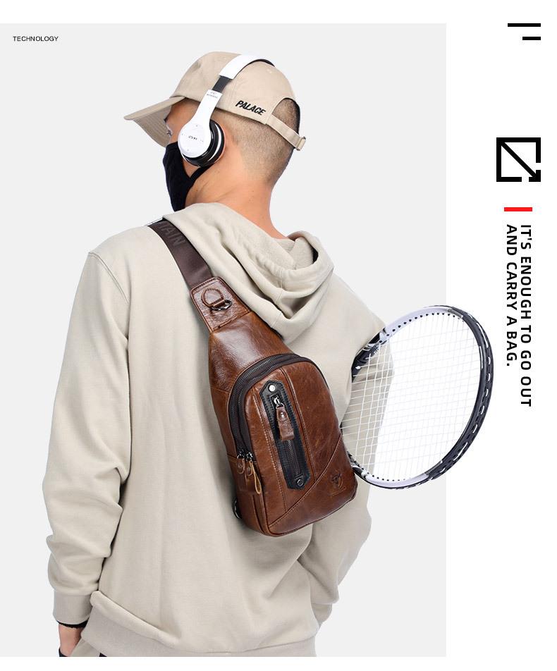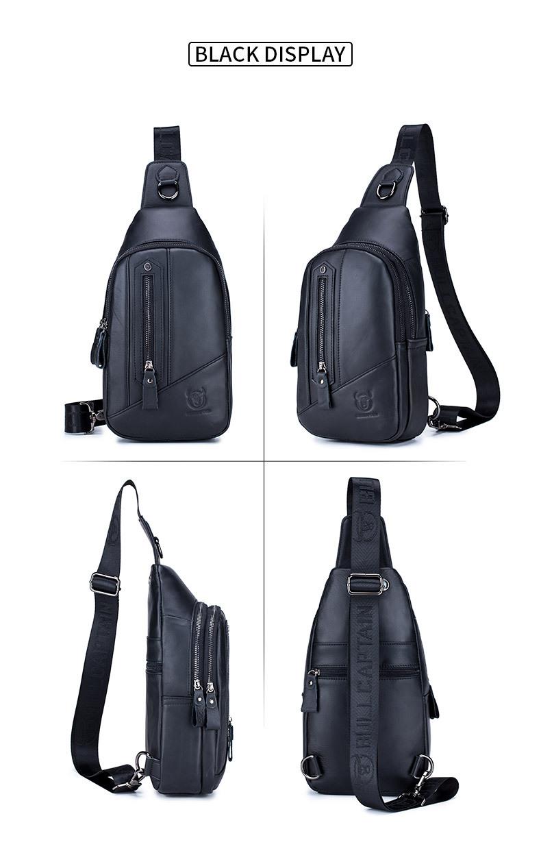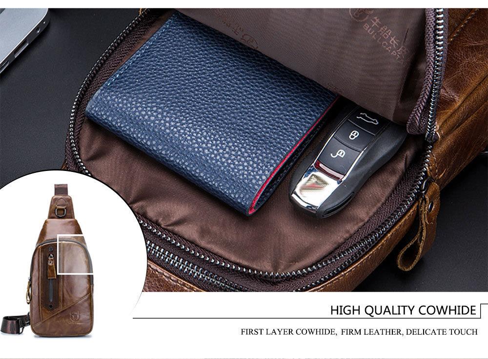 牛船长皮具真皮男单肩斜挎胸包头层牛皮潮流软皮修身多功能胸前包
