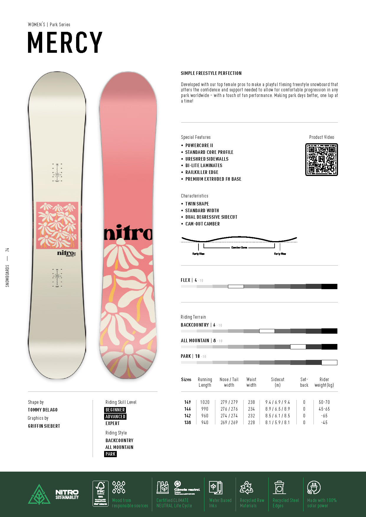 Nitro 23-24 【MERCY】 女款雪板 PARK 138 142 146 149