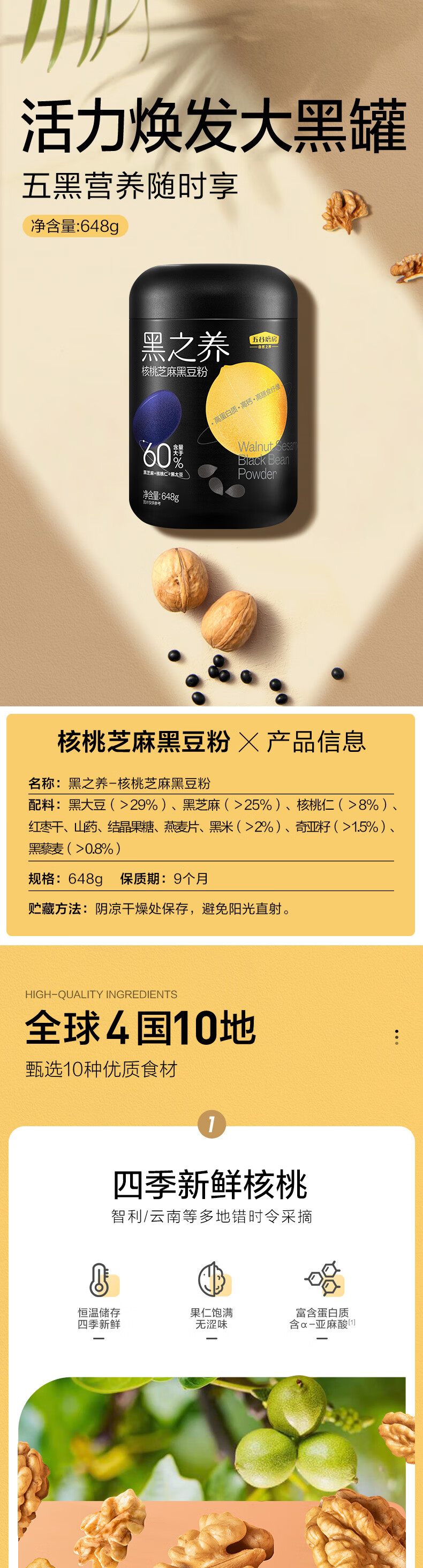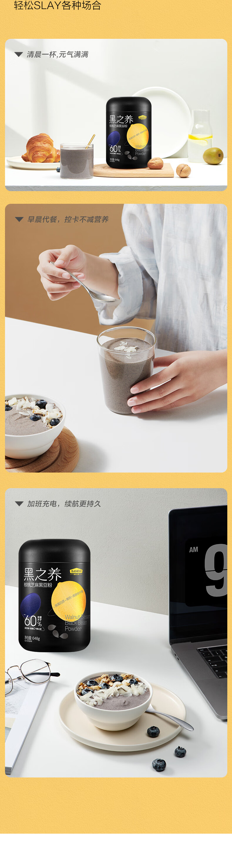 五谷磨房 黑之养核桃芝麻黑豆粉 648g