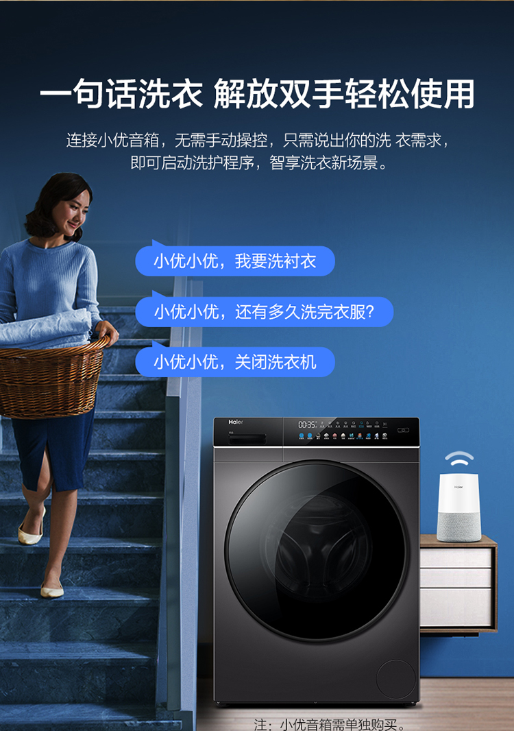 海尔10KG 滚筒洗烘一体洗衣机 直驱变频 全自动智能投放 玉墨银EG100HPRO8SU1