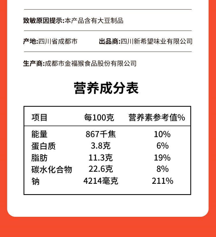 【注意事项】致敏原提示:本产品中含有大豆制品