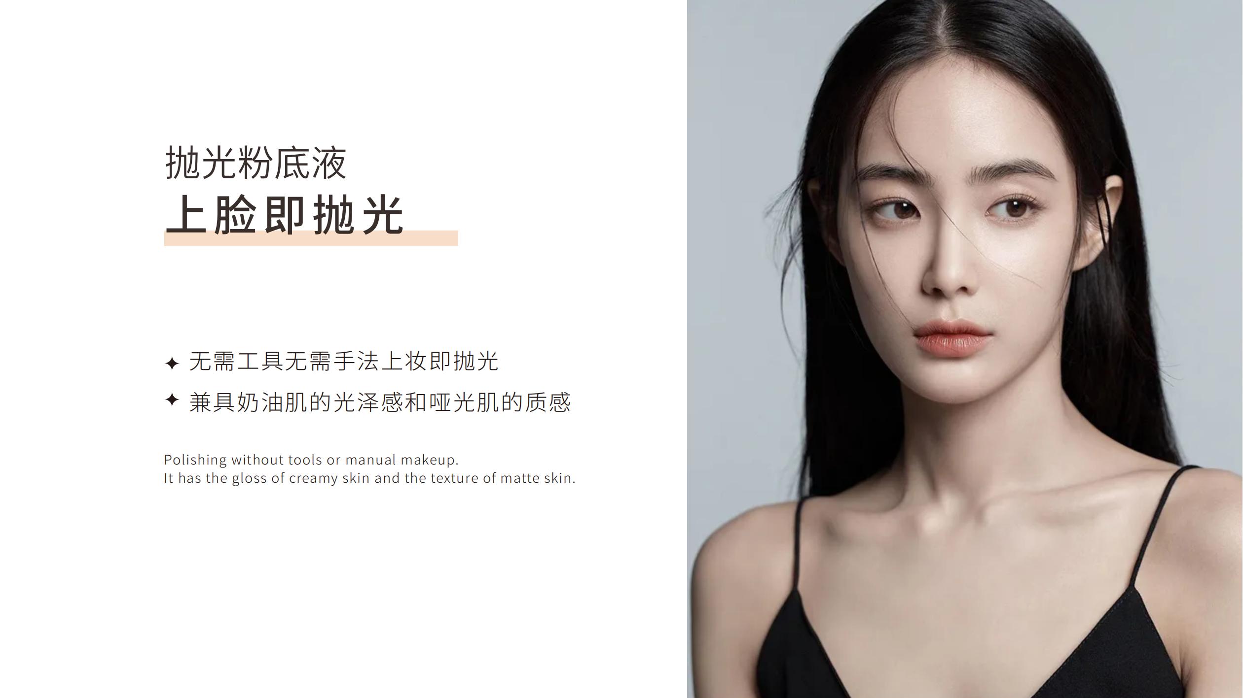 4.30秒快速上妆,无需粉刷黄色工具,奶油质地延展性强,一抹犹如“抛光底妆质感”;不搓泥不掉皮不卡粉,妆效细腻透亮、高级雾面妆感。