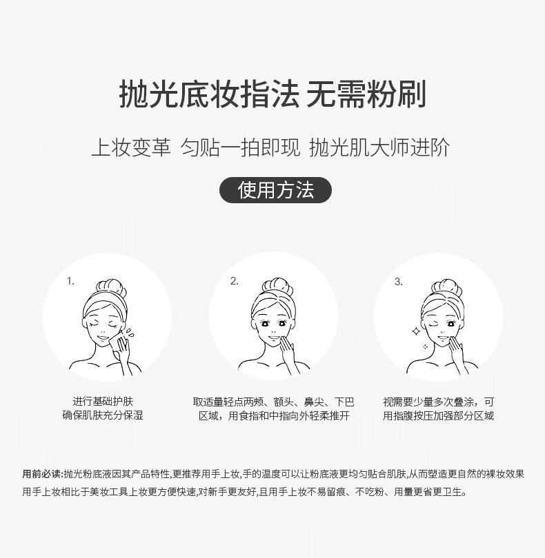2.“亚洲全能色”,黄皮白皮上脸无色差,选购入手颜色不会踩坑,上妆均衡肤色打造清透妈生好肌,妥妥的磨皮神器;毛孔抛光大师: