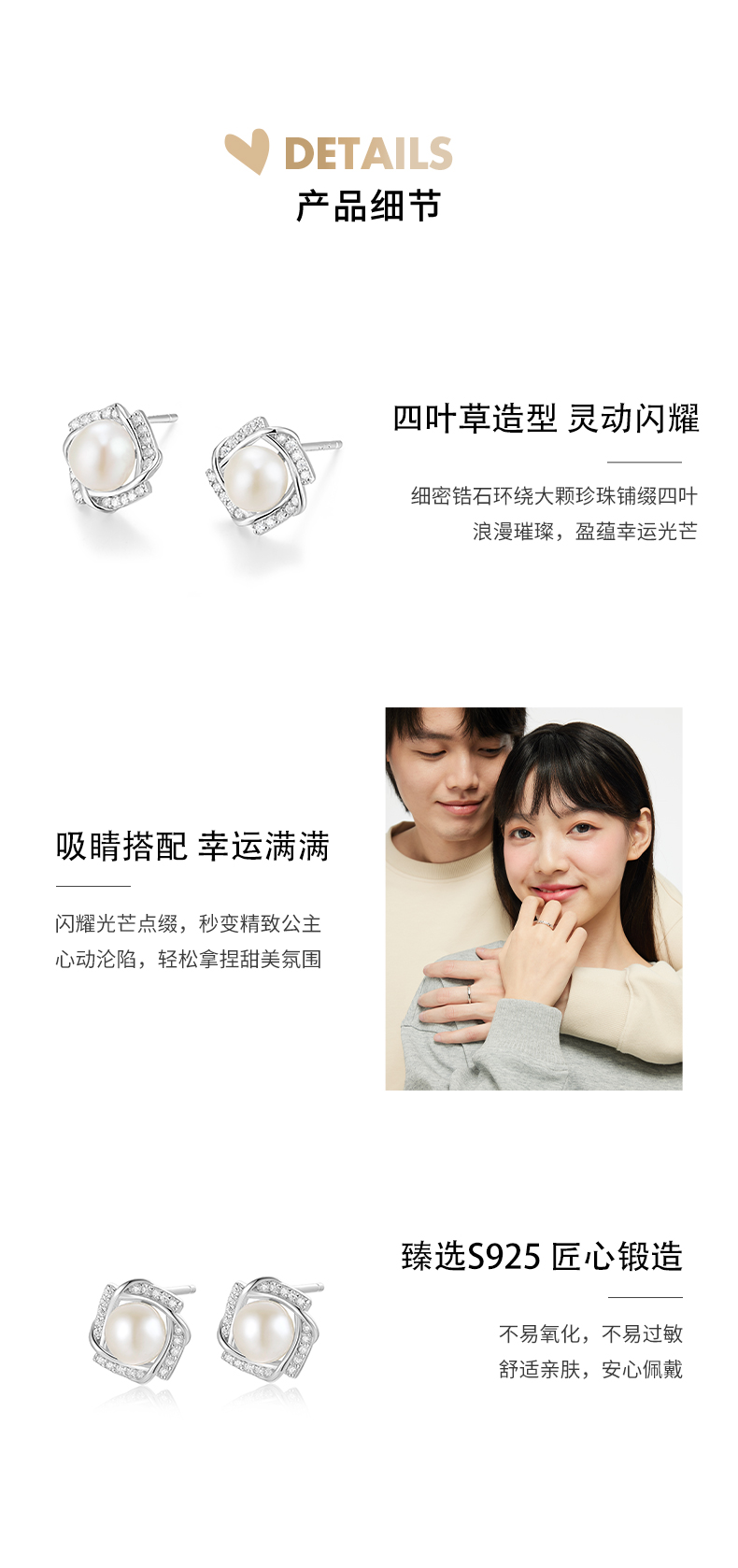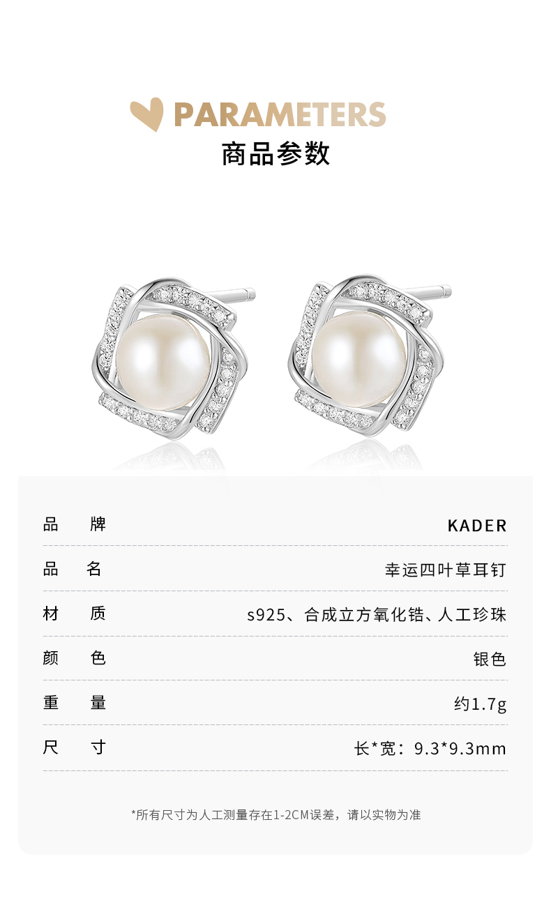 卡蒂罗KADER 幸运四叶草耳钉 森系四叶草造型设计 优雅气质吸睛幸运闪耀 S925银 耳饰 女款 银白色 送礼 礼盒款