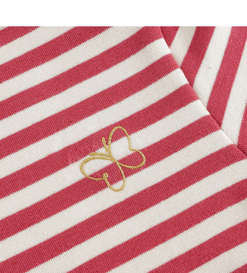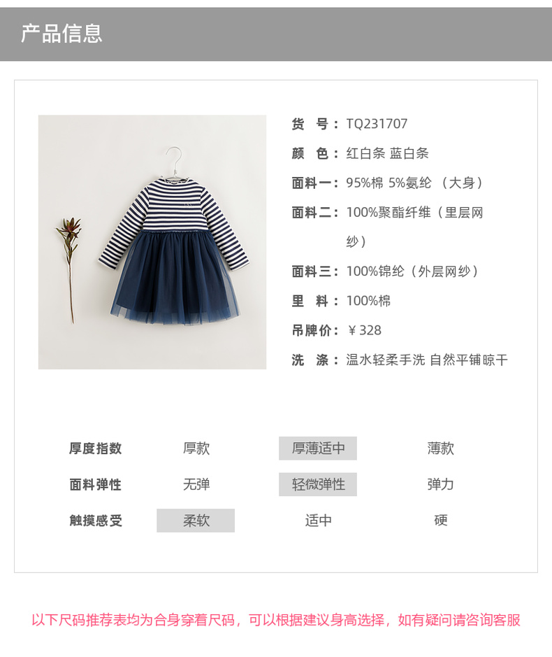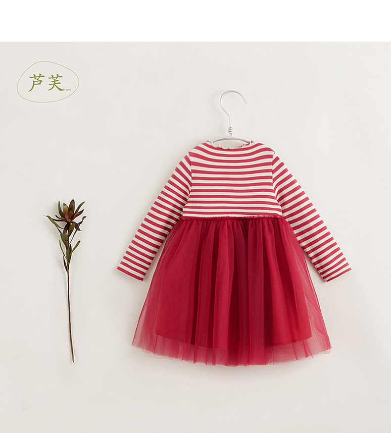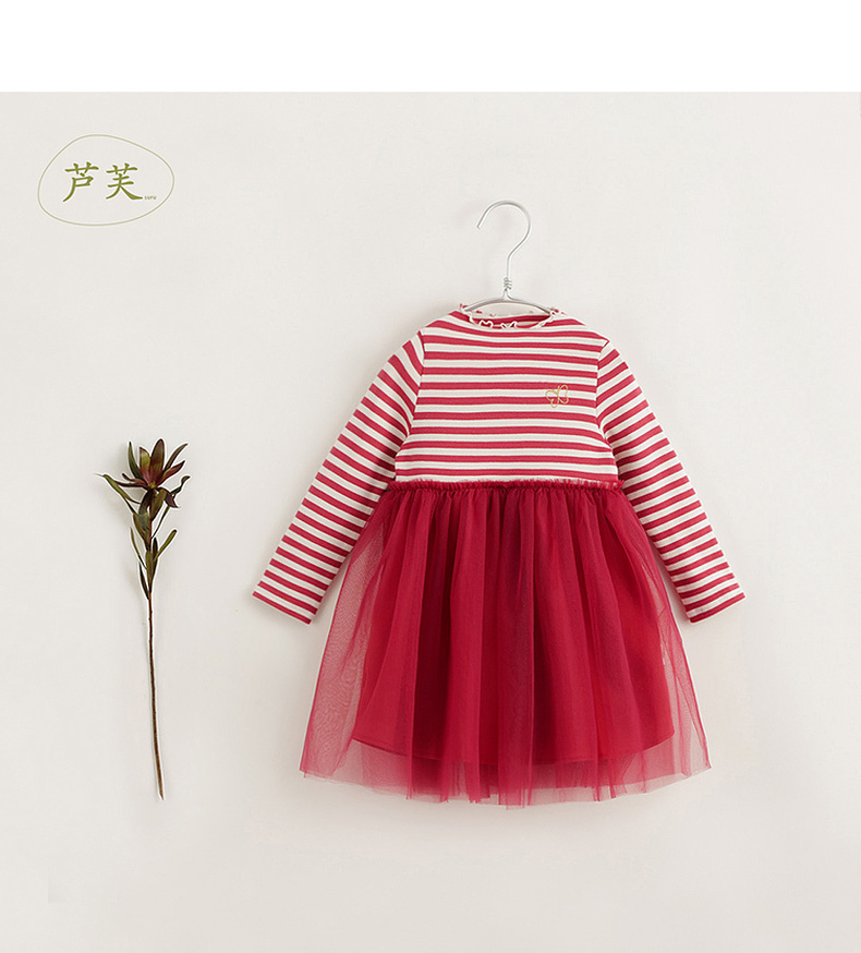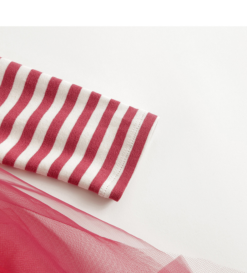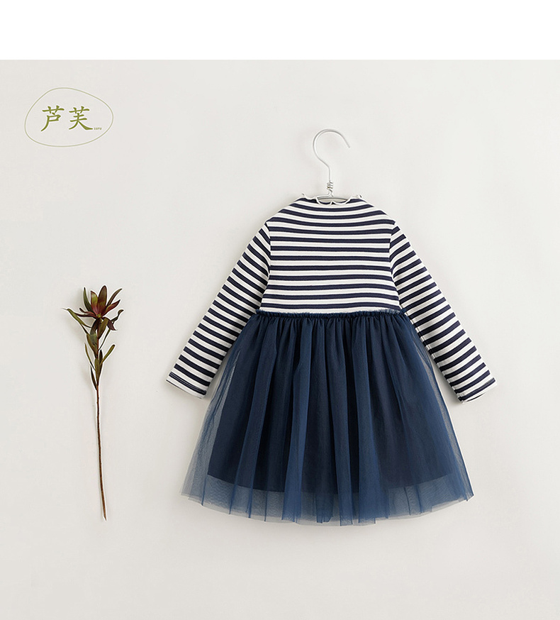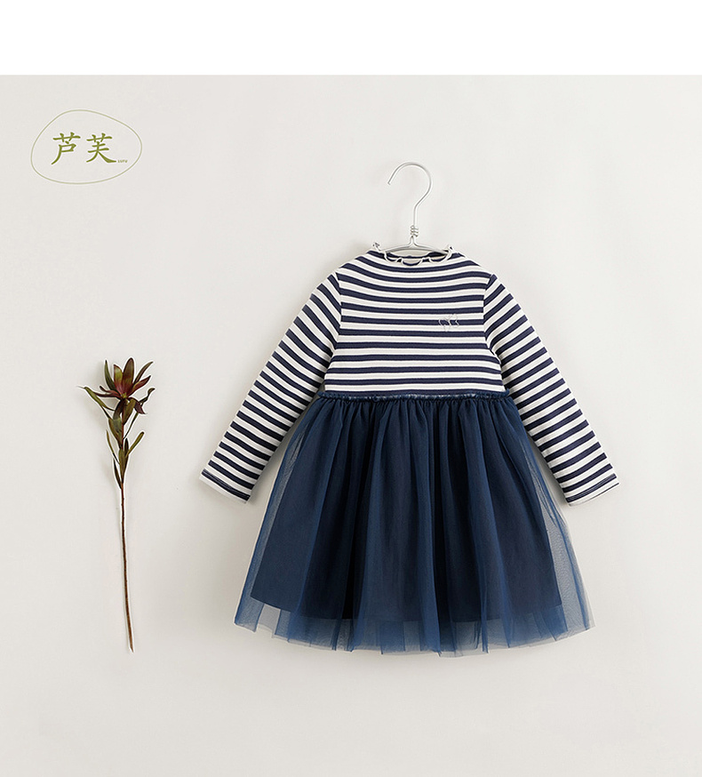 【马克珍妮 芦芙】秋装新款 女童条纹弹力网纱拼接连衣裙231707