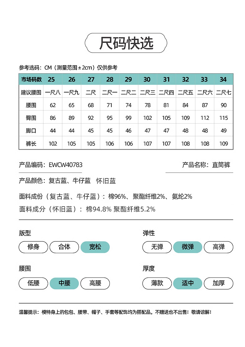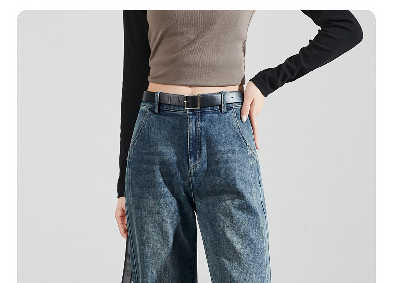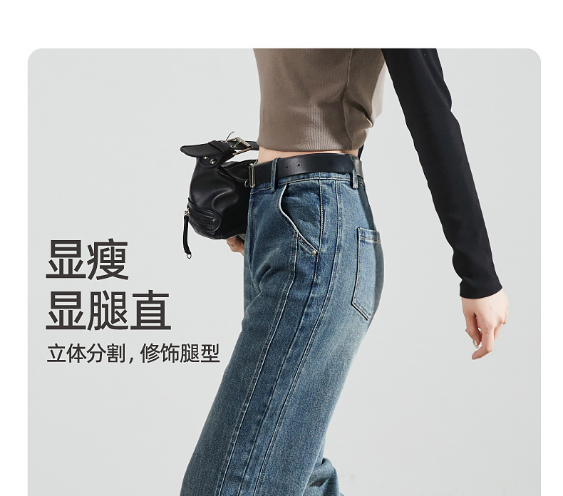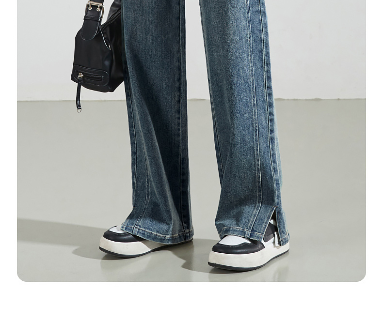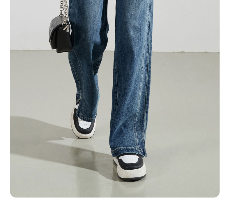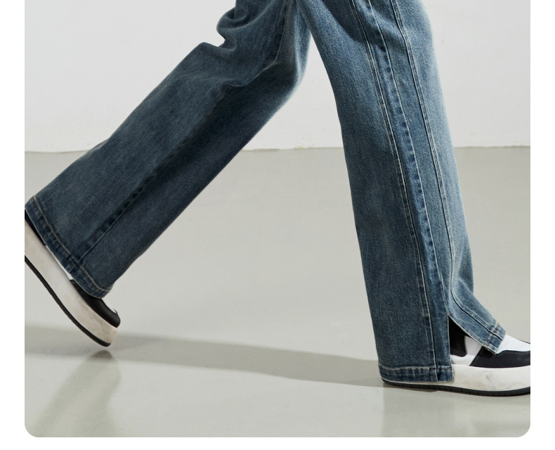 【断码亏本售!直筒牛仔】逸阳春秋款开叉显瘦窄版阔腿长裤子0783