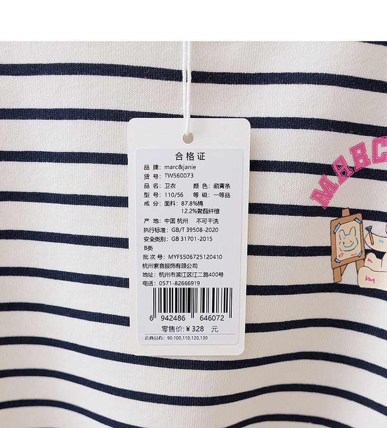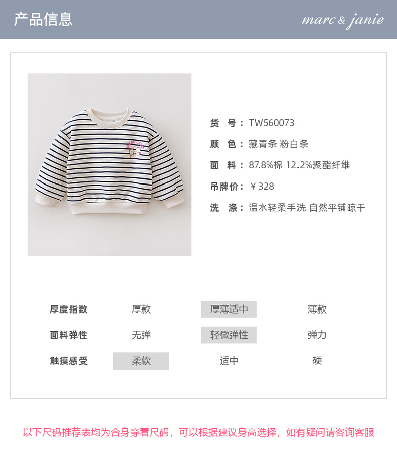 马克珍妮卡通小熊女童条纹卫衣 宝宝运动衫2026年春装新款560073