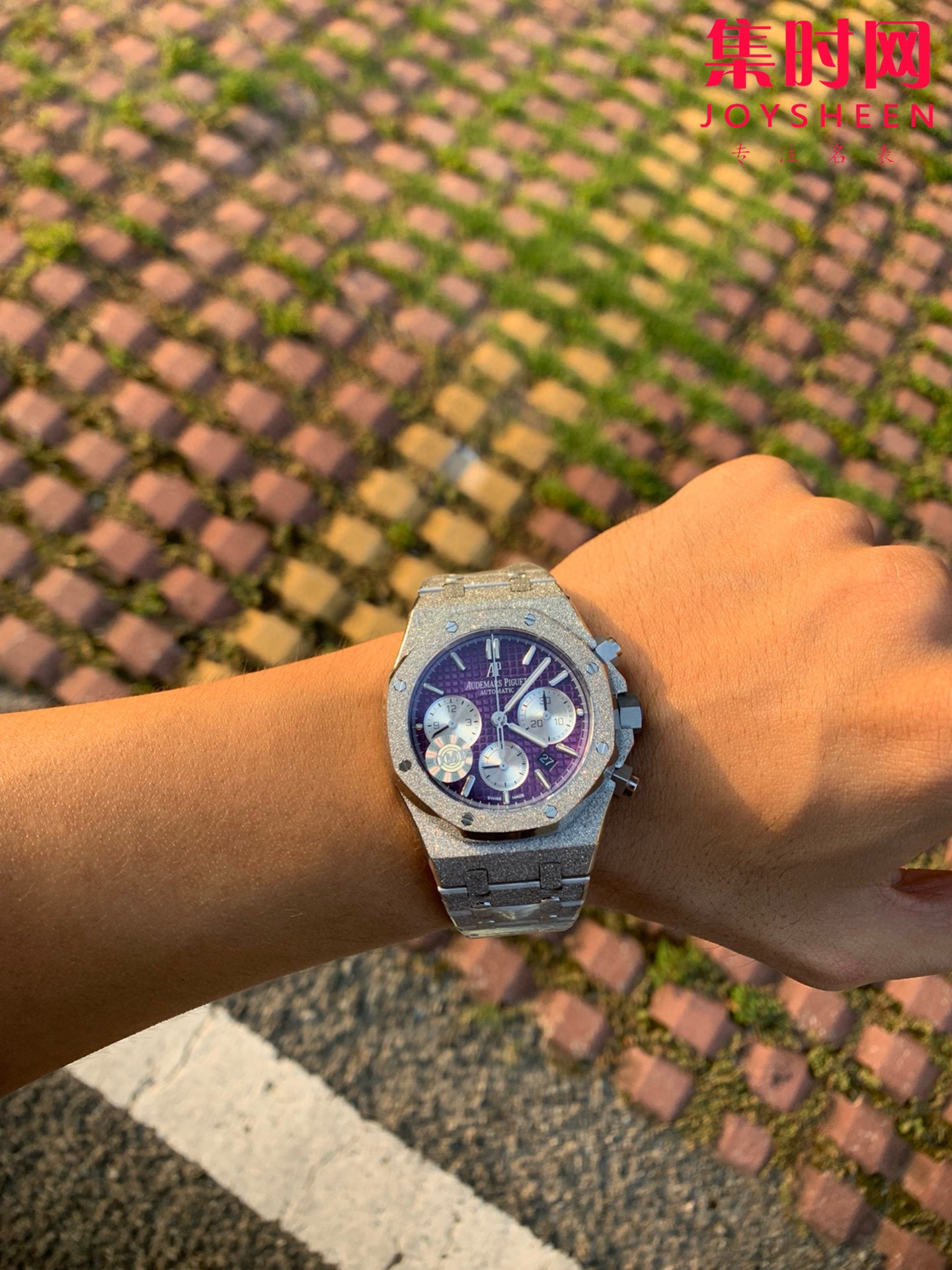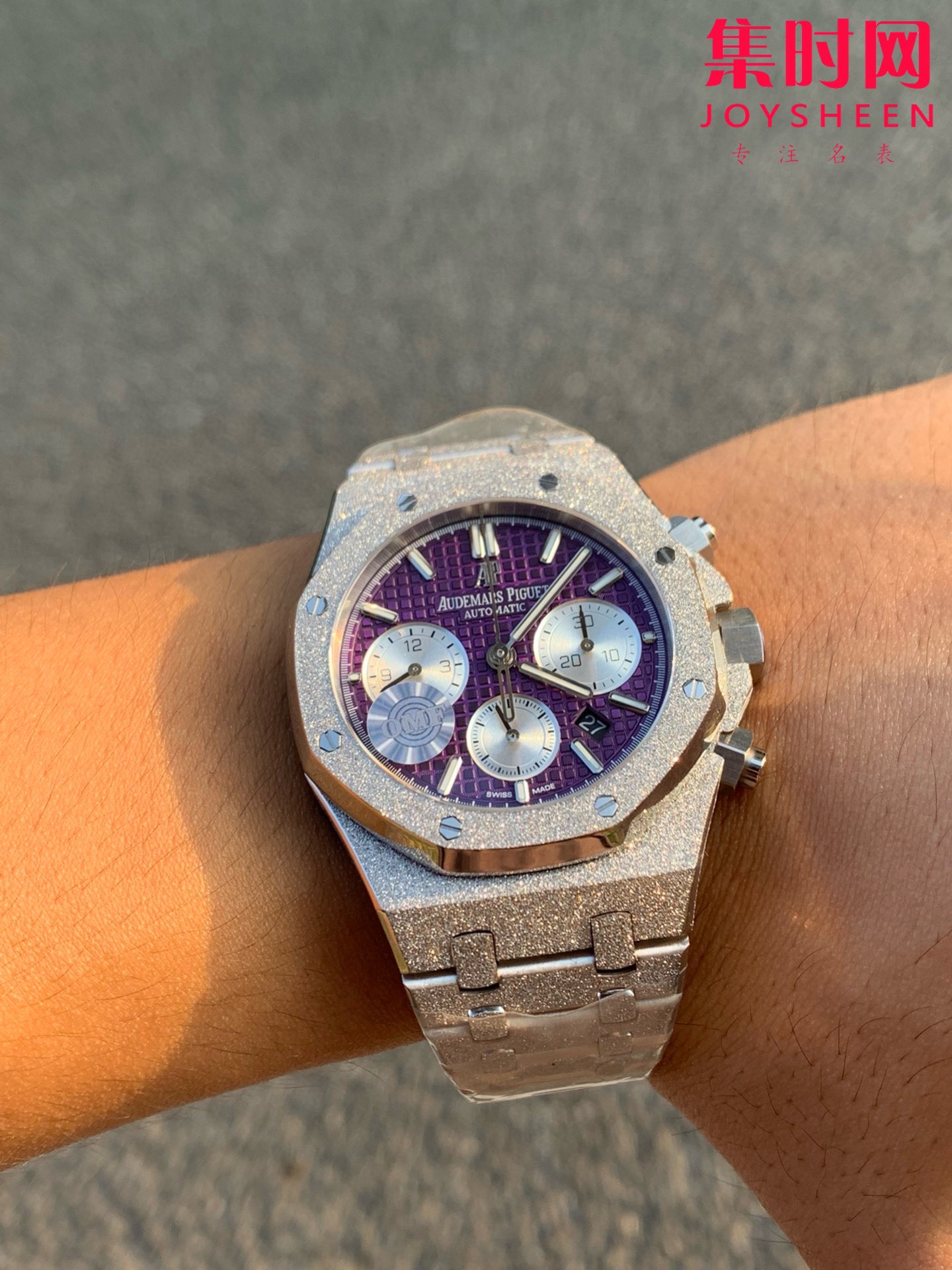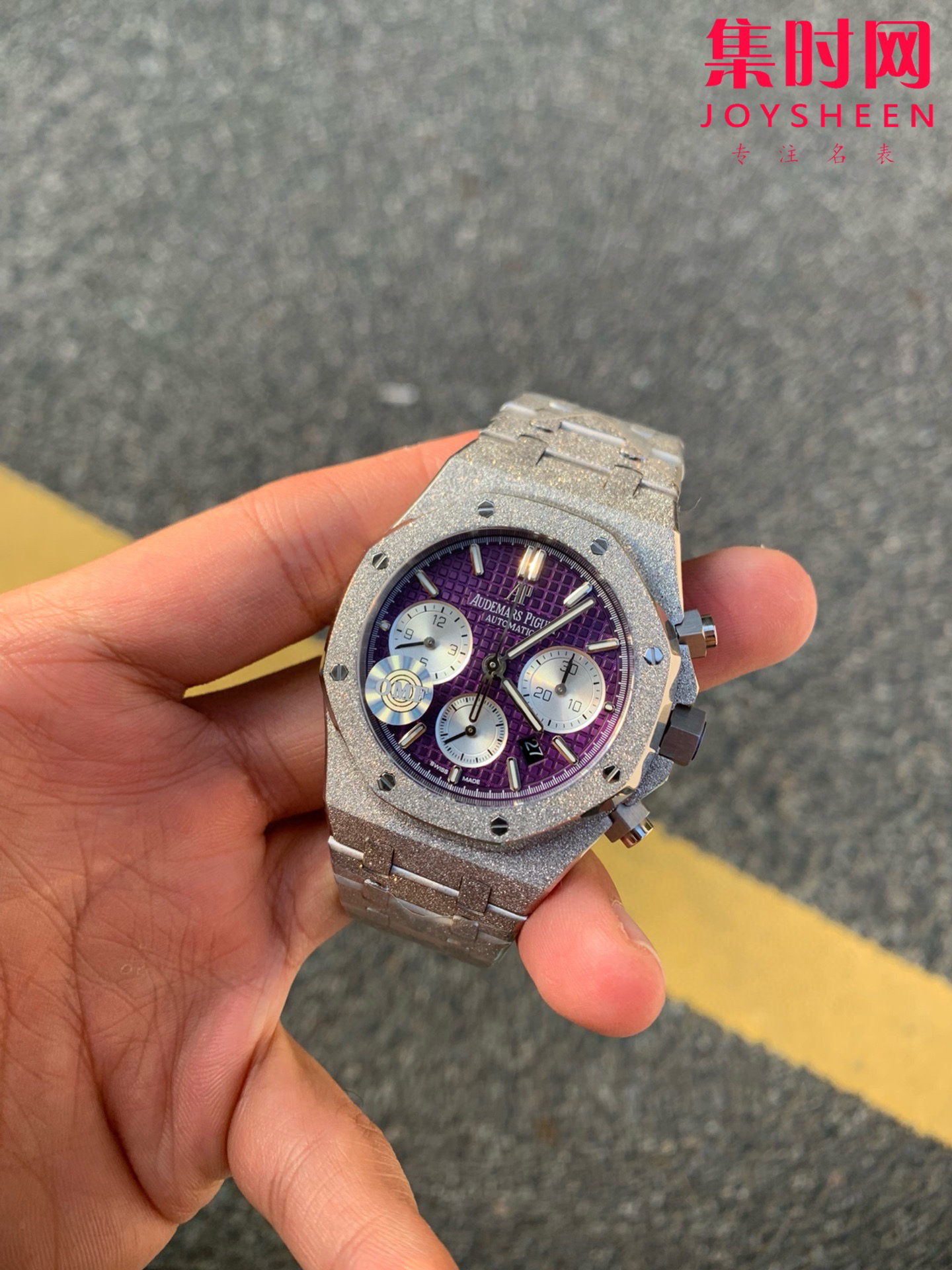爱彼OMF新款皇家橡树26240系列“霜金”腕表 男士计时码表 采用同正品一致(6字位小秒 一体机芯通过后盖可以清晰观看齿轮的转动,搭载7750全自动机械计时机芯,搭配防眩目蓝宝石高透玻璃 指针打磨毫无毛刺,表壳精钢打造精细打磨,纹路质感都接近原装,表带采用原装表带开模表带细腻的拉丝纹不会锋利割手,表扣的开关设计和表扣的雕刻工艺均于正品一致,字面还原原装做工于颜色细节和正品放在一起无破绽,表径41mm 粗犷大气,劲道十足,超强夜光显示,可以在任何环境下读取时间!