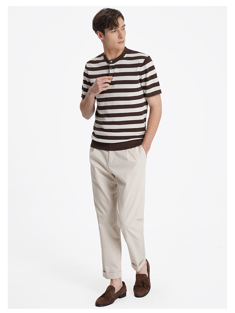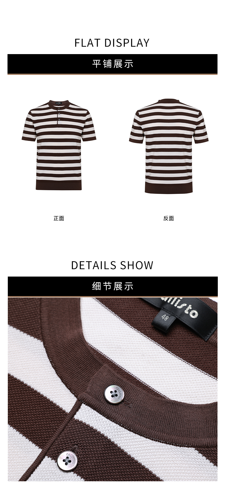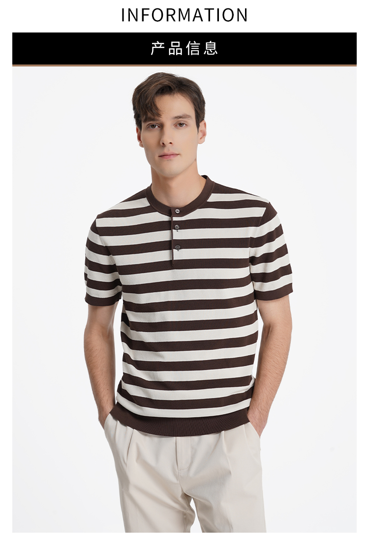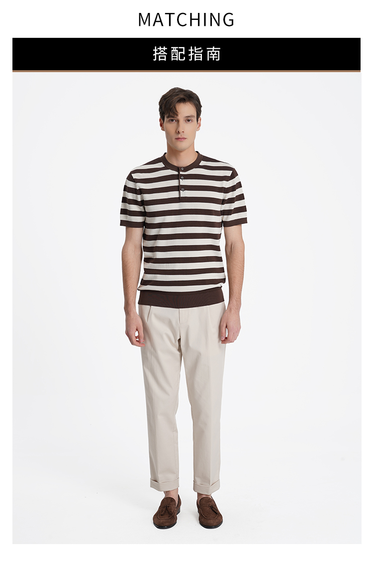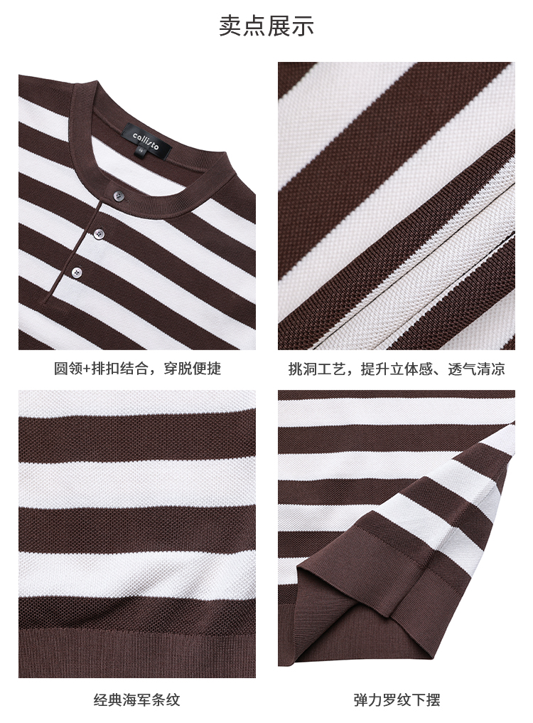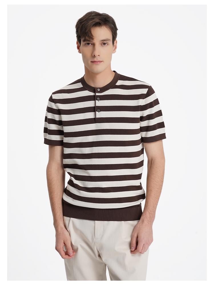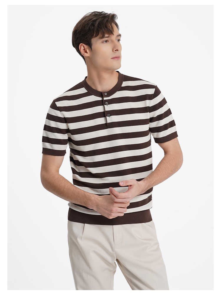 callisto松弛系列咖色条纹棉混纺T恤