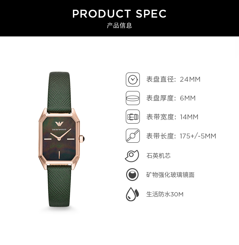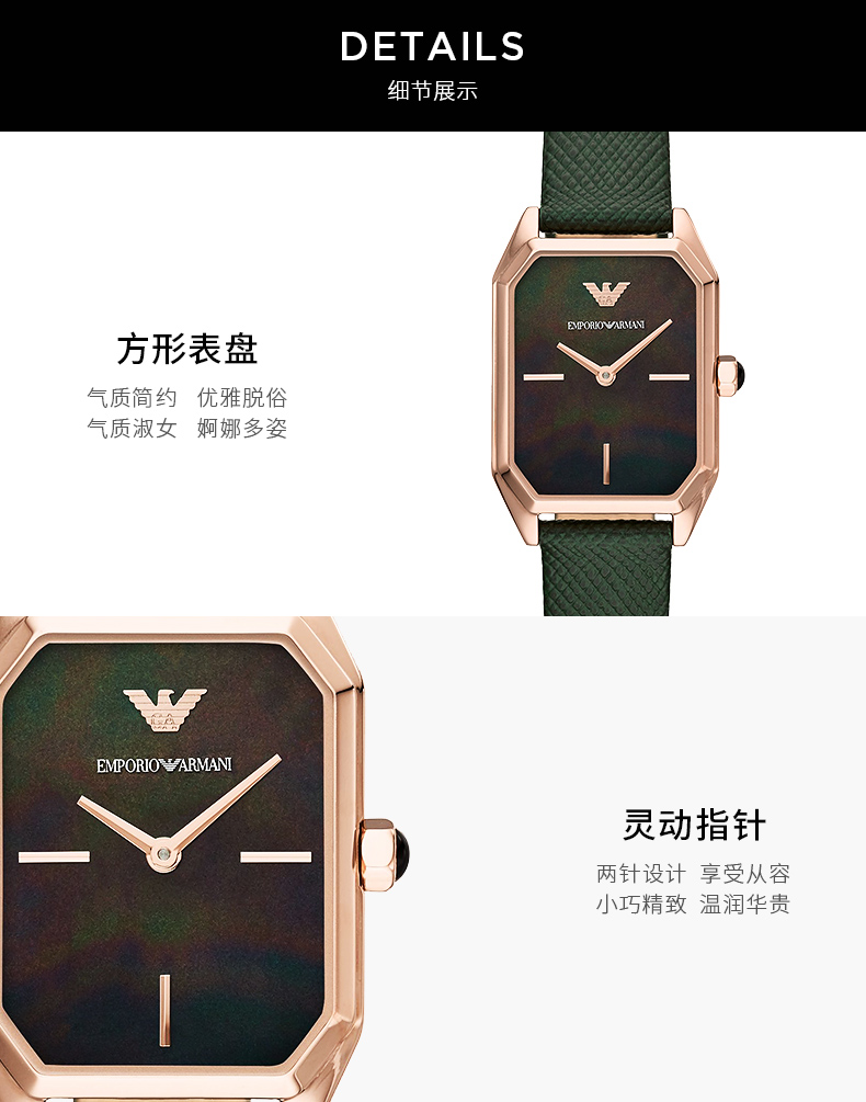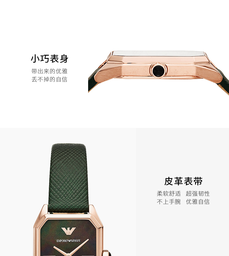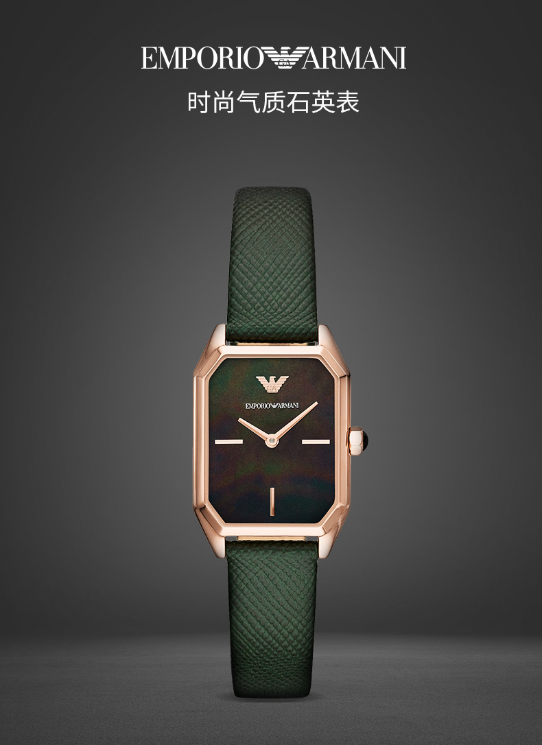 【暖冬特惠 限时6折抢】Armani阿玛尼石英手表 时尚方盘小绿表休闲皮带石英女表AR11149