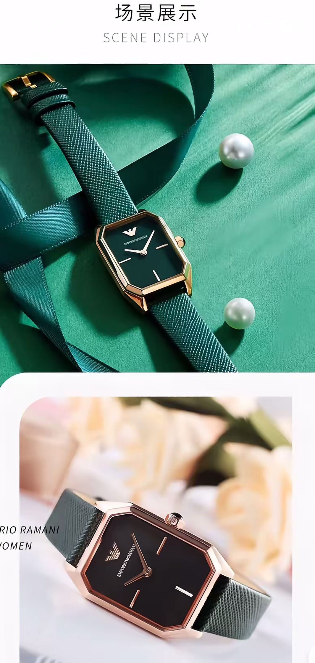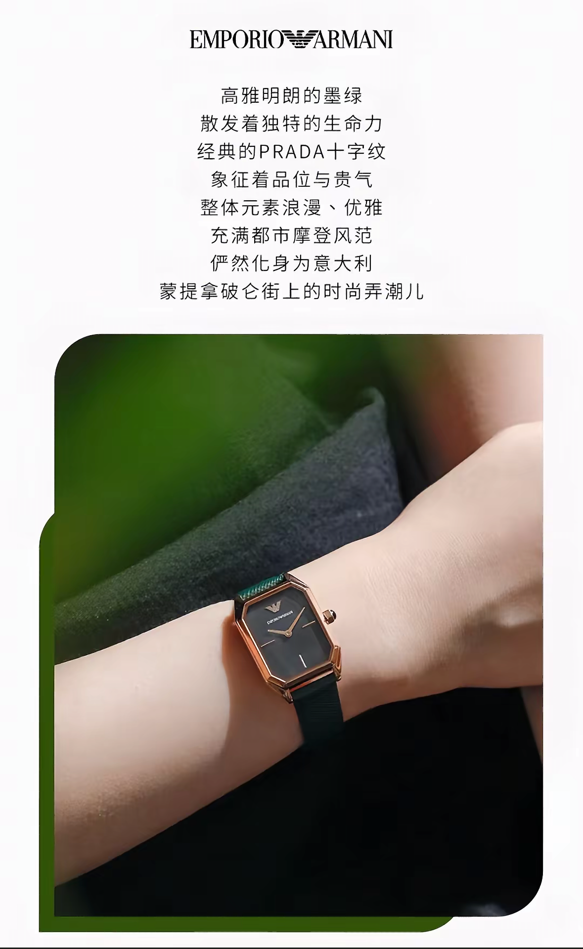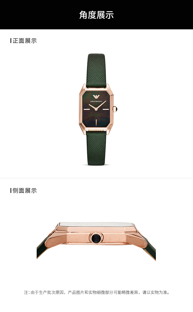 【暖冬特惠 限时6折抢】Armani阿玛尼石英手表 时尚方盘小绿表休闲皮带石英女表AR11149