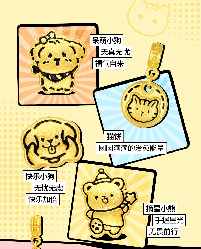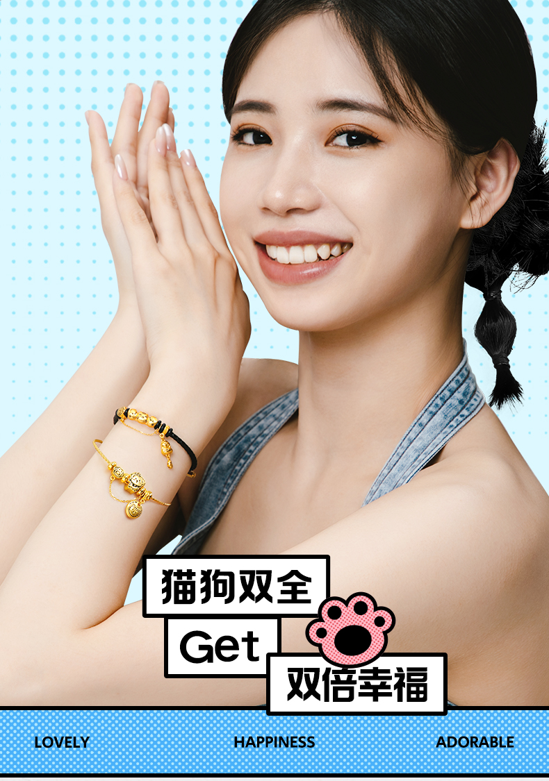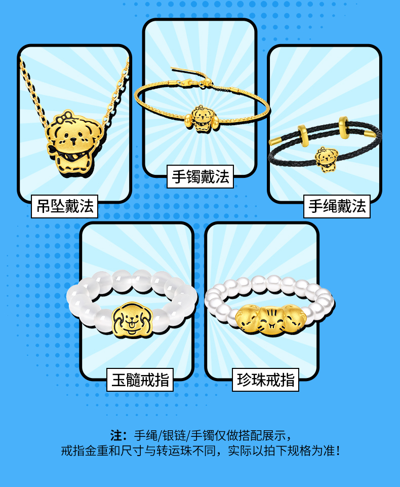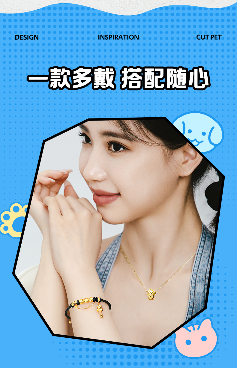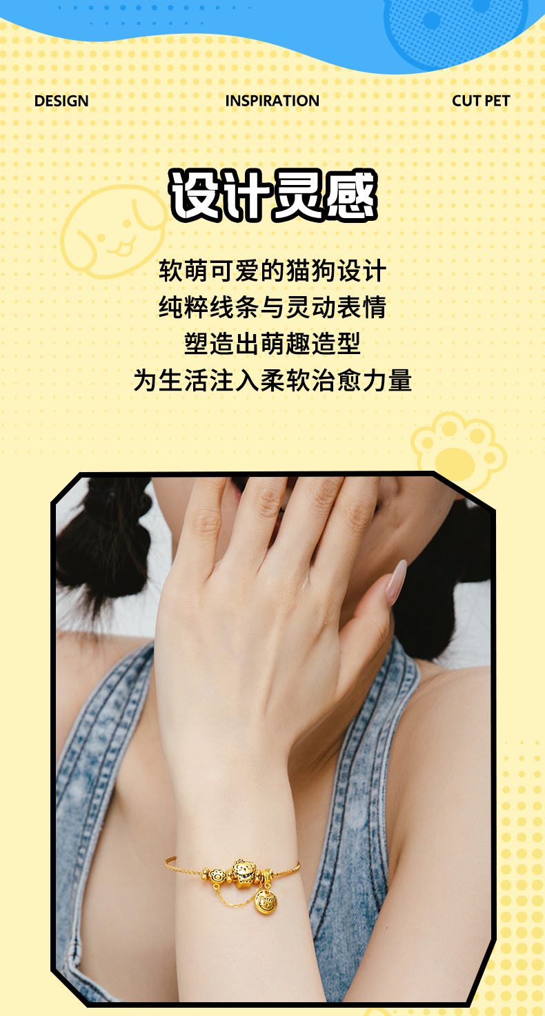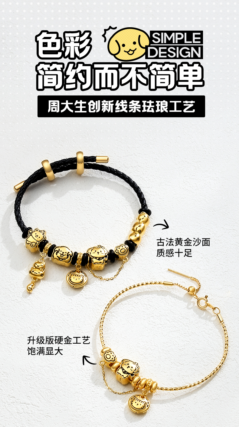 周大生腕美黄金转运珠女足金猫猫狗狗手绳手链情侣送女友礼物