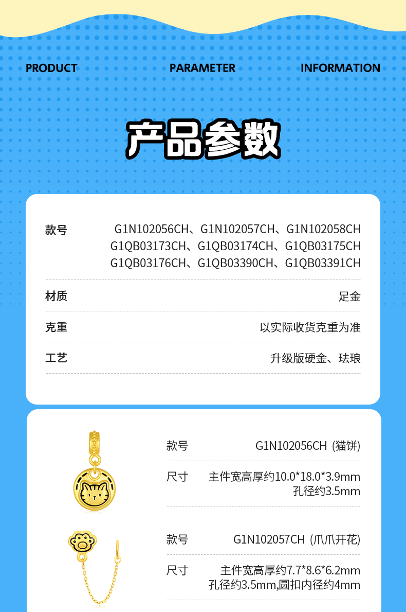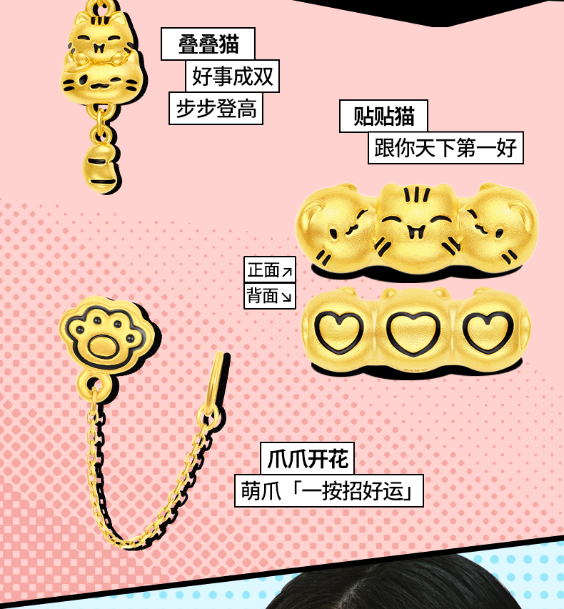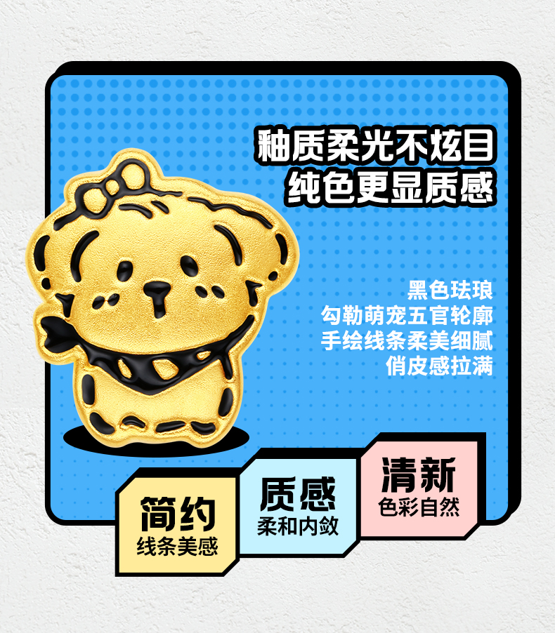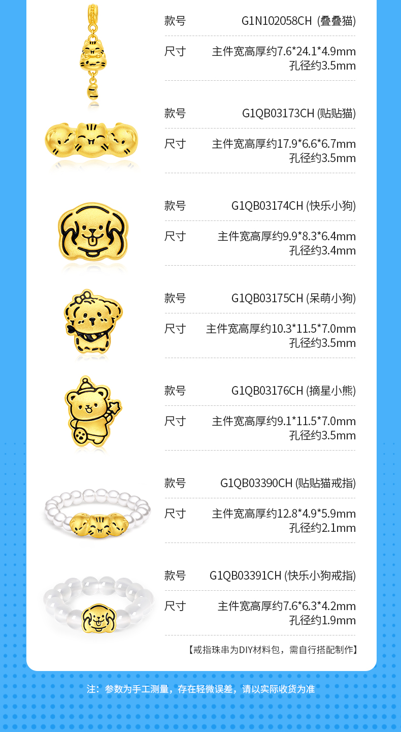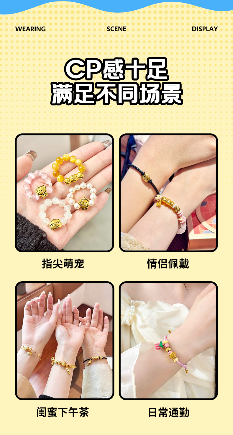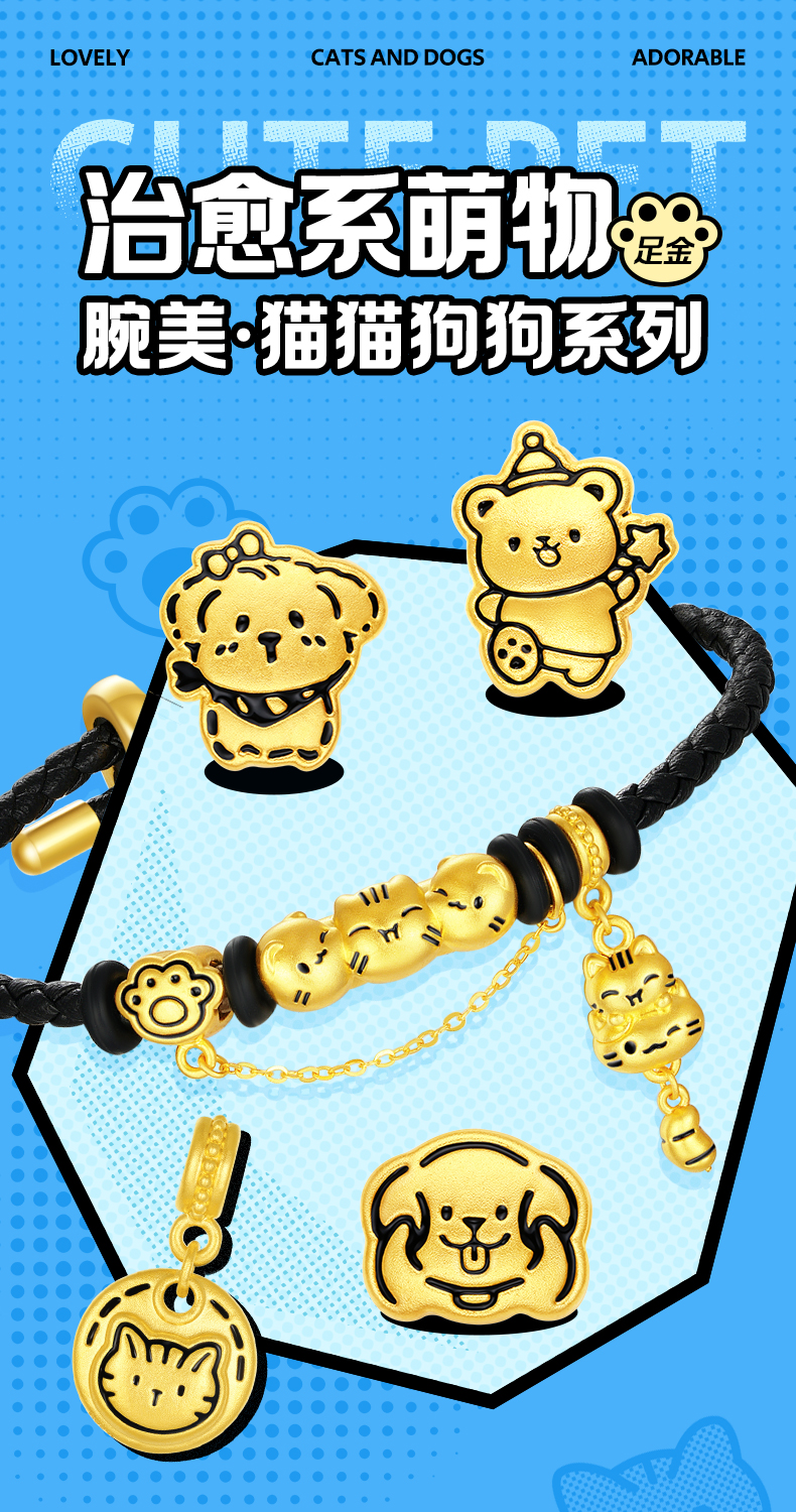 周大生腕美黄金转运珠女足金猫猫狗狗手绳手链情侣送女友礼物