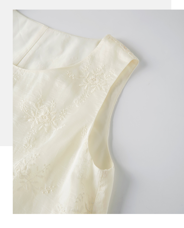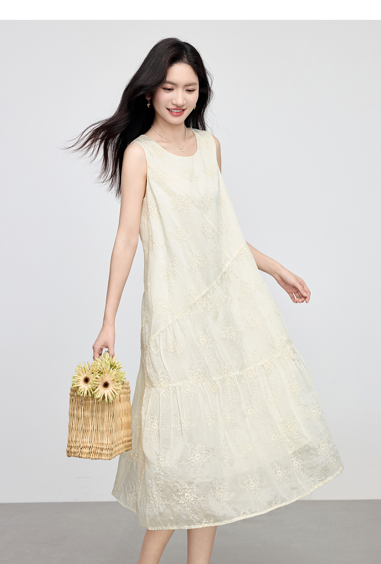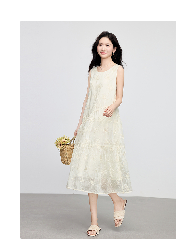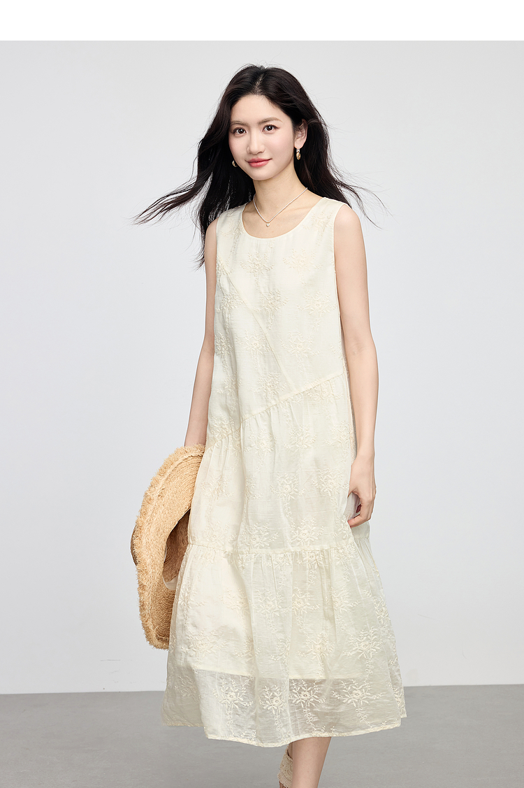 【专属特价】熙世界度假风天丝绣花连衣裙女2025夏新款莱赛尔圆领无袖背心裙子