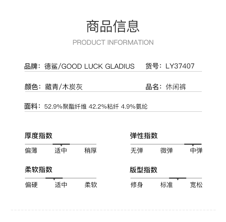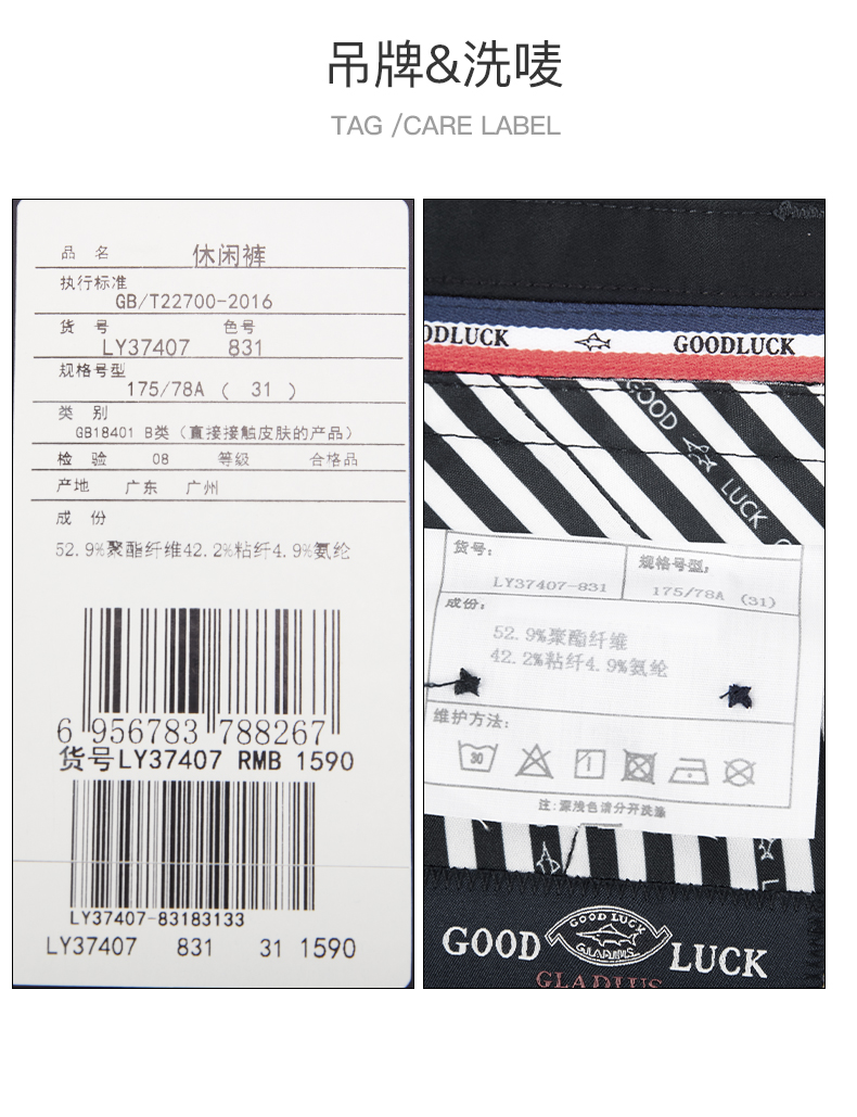 GOOD LUCK/德鲨弹力直筒简约舒适商务休闲裤BY27430-830