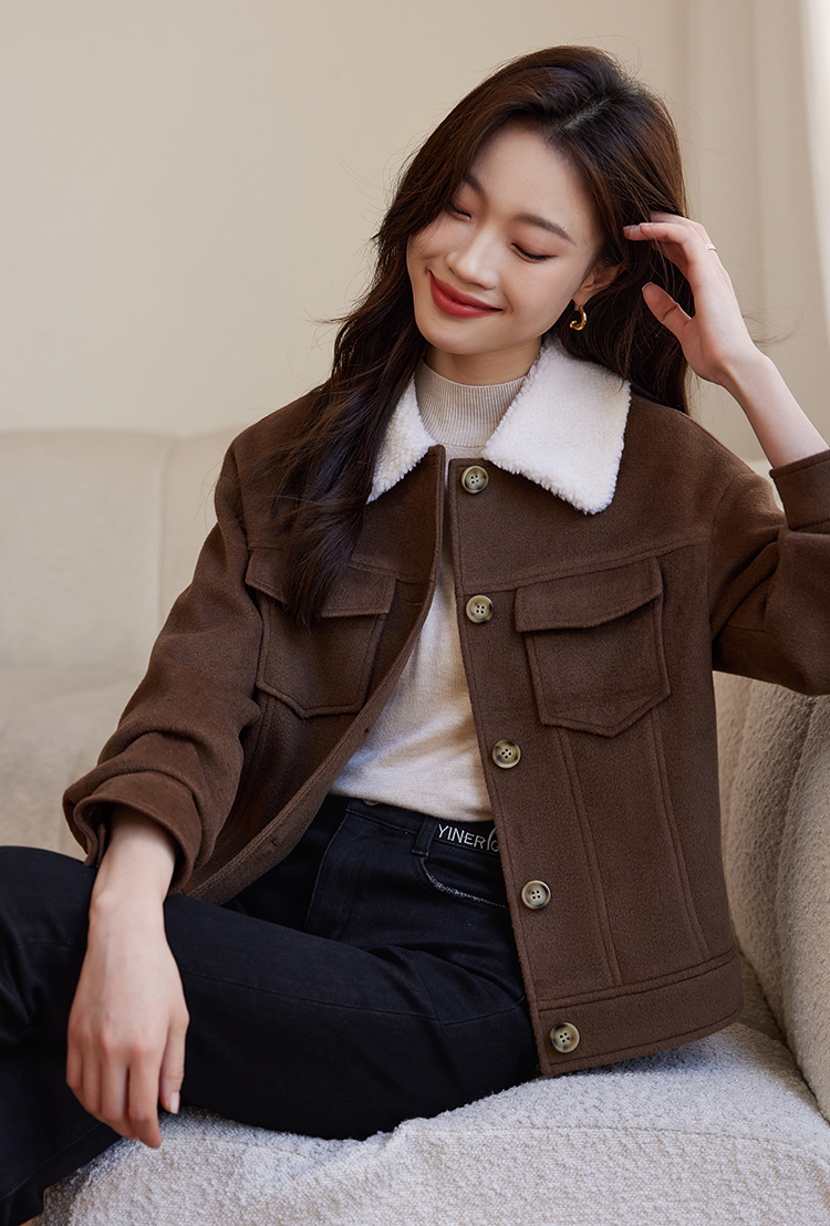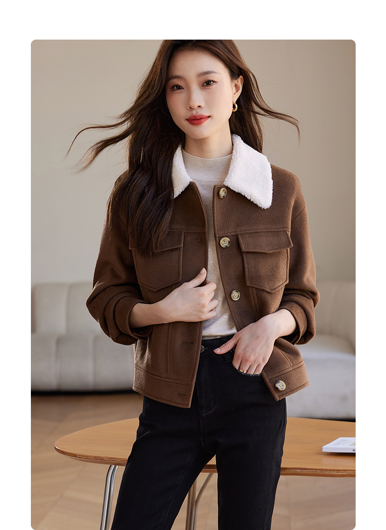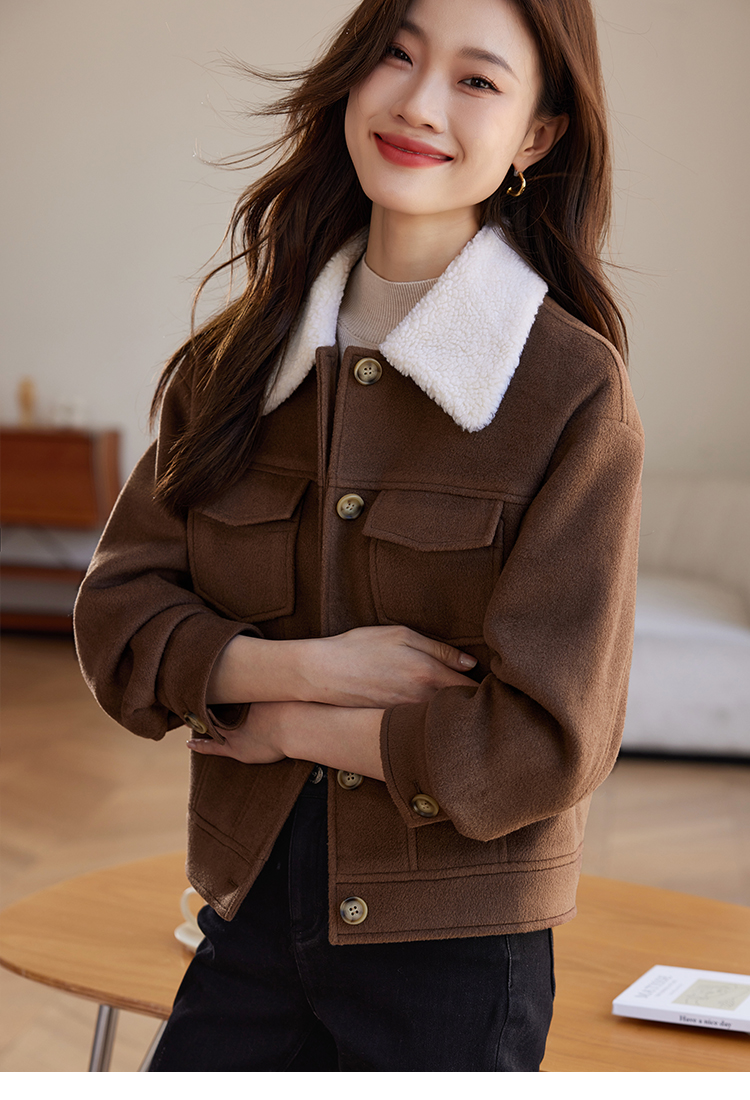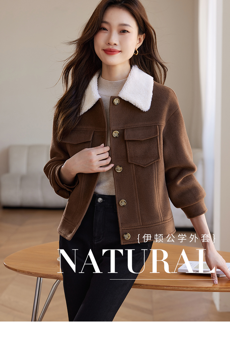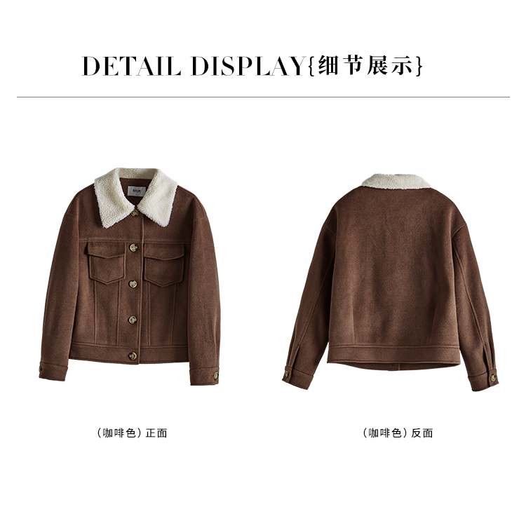 【年货节】熙世界羊羔毛翻领毛呢外套女短款小个子加厚夹棉上衣2025冬季新款