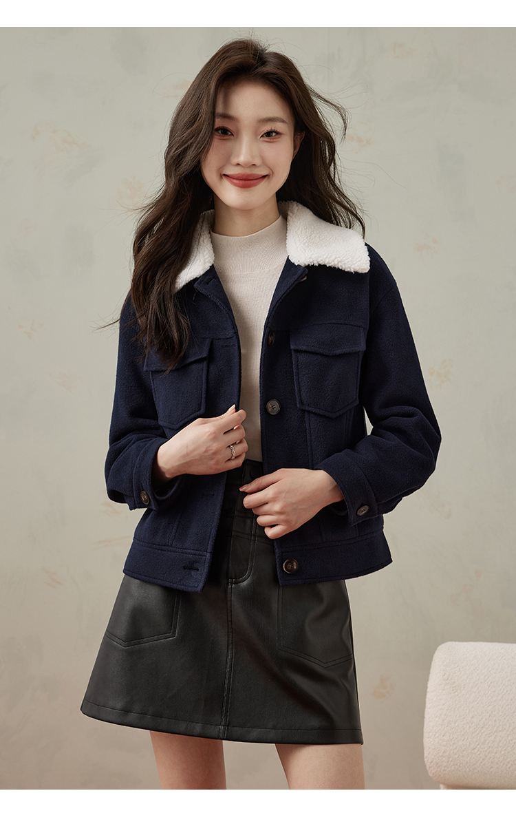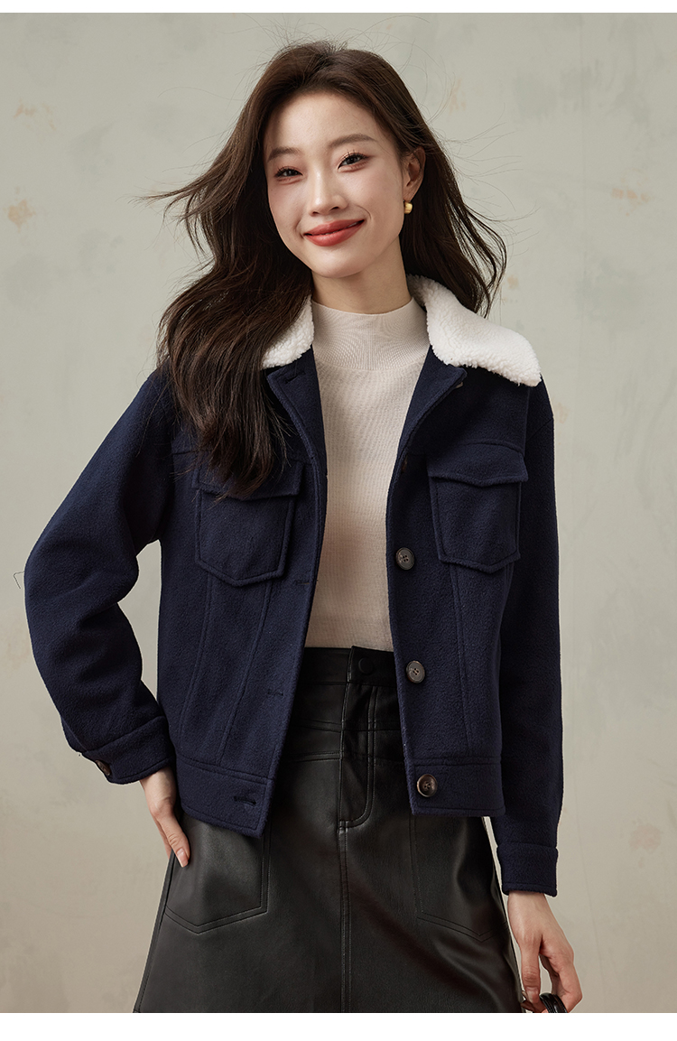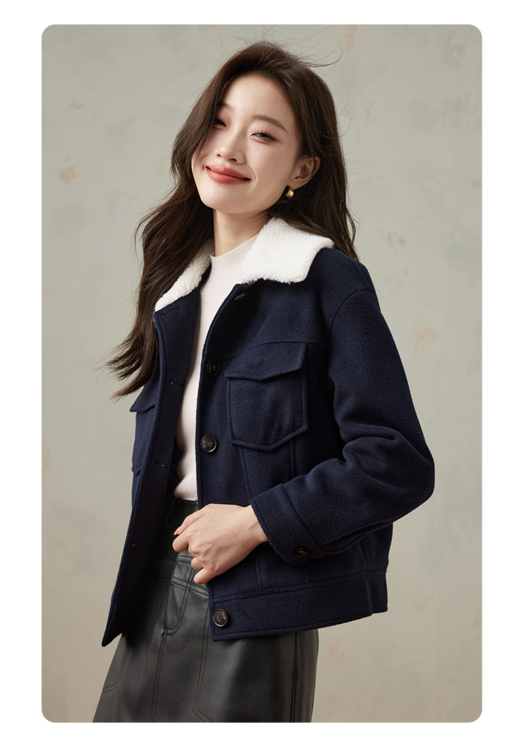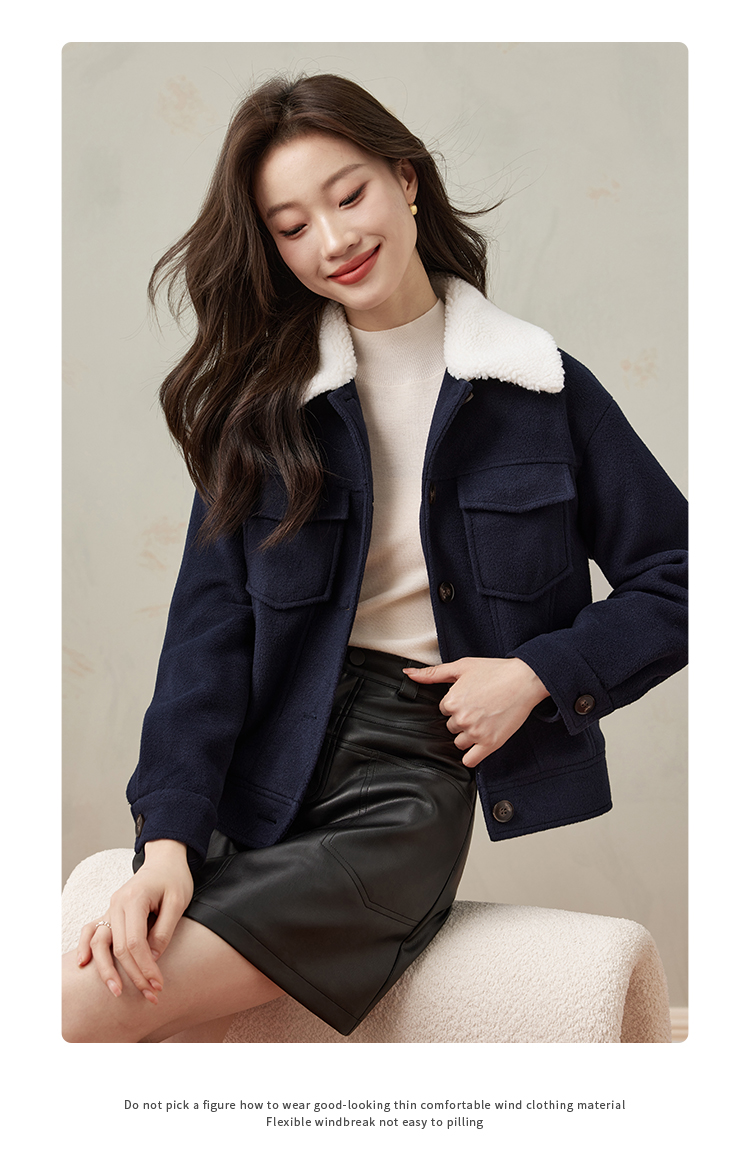 【年货节】熙世界羊羔毛翻领毛呢外套女短款小个子加厚夹棉上衣2025冬季新款
