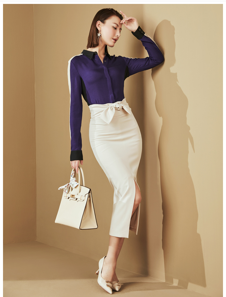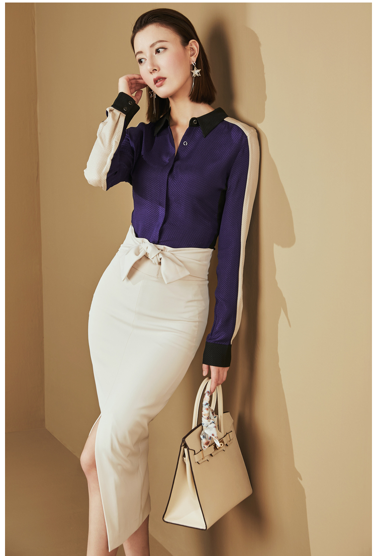 J20334599A 颈袖添香时尚OL新款时尚衬衣桑蚕丝雪纺衫衬衫女上衣 时尚单品OL衬衫(四季可穿)