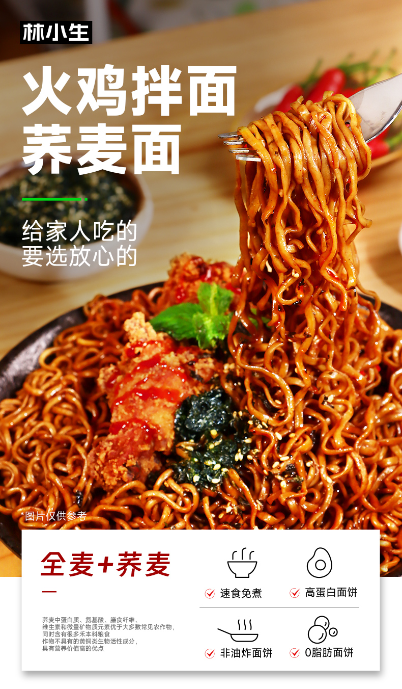 优选 | 林小生荞麦火鸡拌面 65g/袋 14袋装/32袋装 两种规格可选 劲辣过瘾 甜辣交织 Q弹面条 嚼劲十足 免煮冲泡 方便快捷