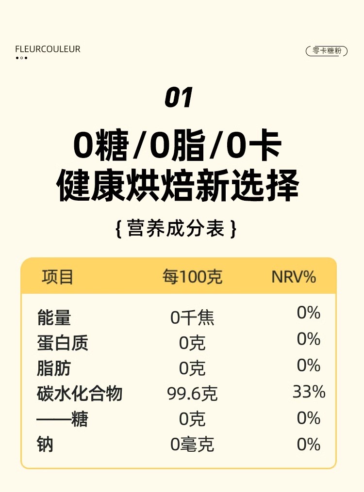 100g 法采 零卡糖粉 代糖零卡糖赤藓糖醇甜菊苷糖罗汉果糖苷烘焙专用