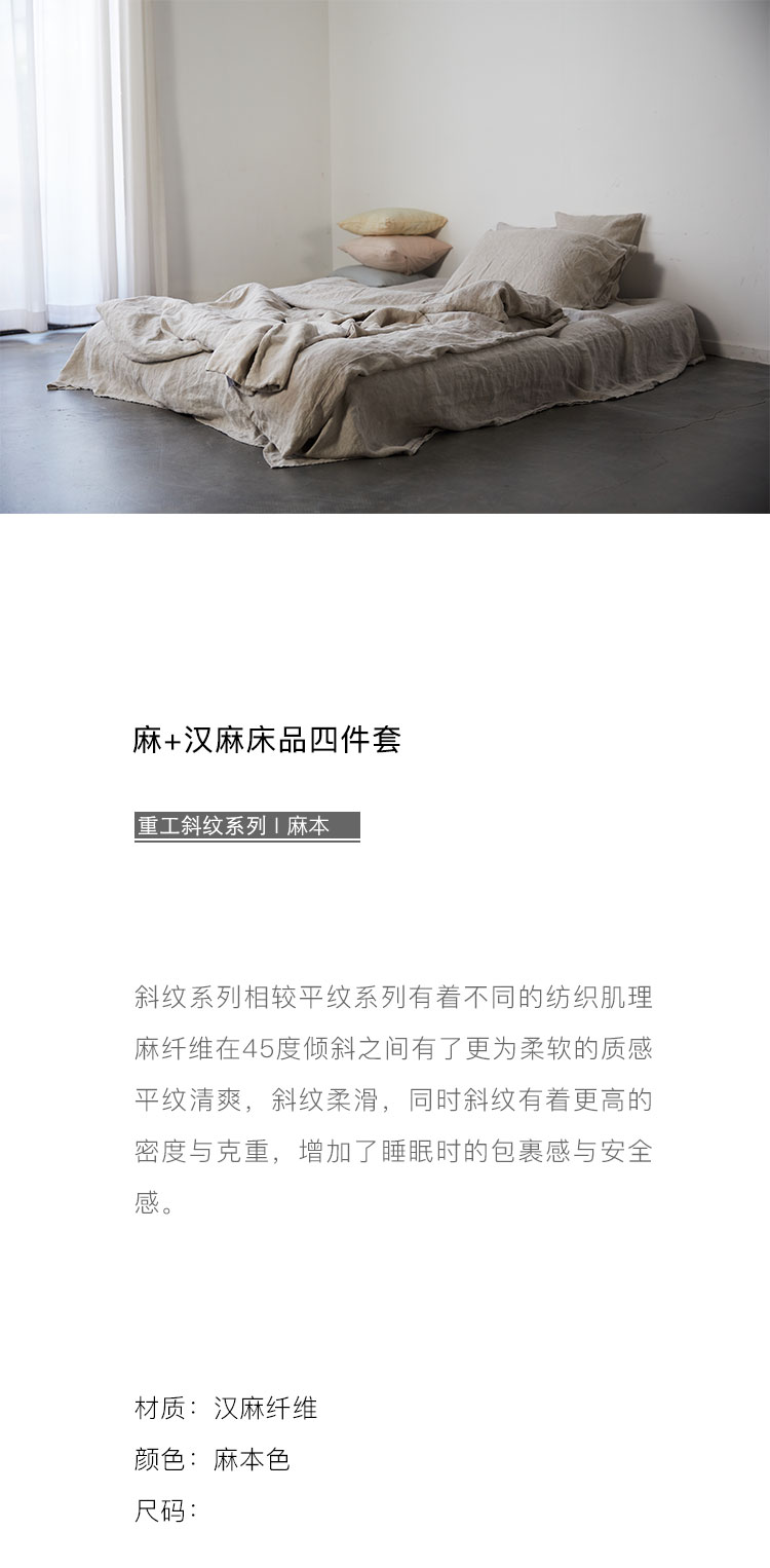 麻+重工斜纹 汉麻床品四件套 麻本色